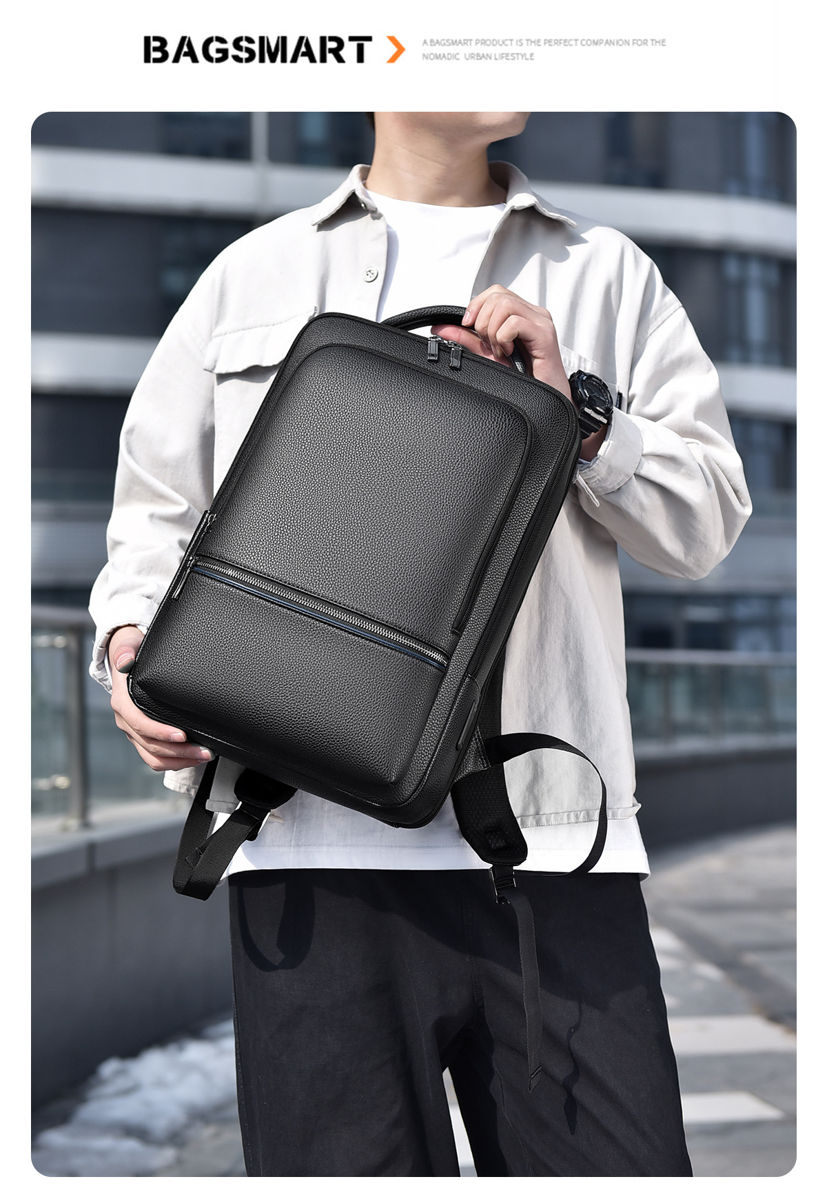 비즈니스 백팩, 고급스러운 남성용 방수 노트북 가방, 휴대용 출퇴근 트렌디 심플 백팩, 가죽 가방스토어 가기
