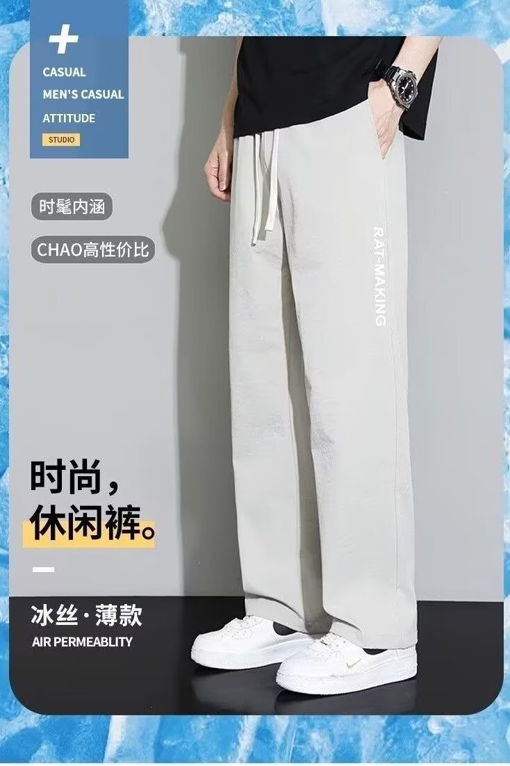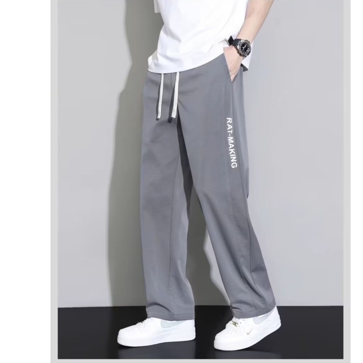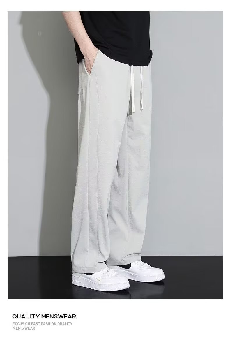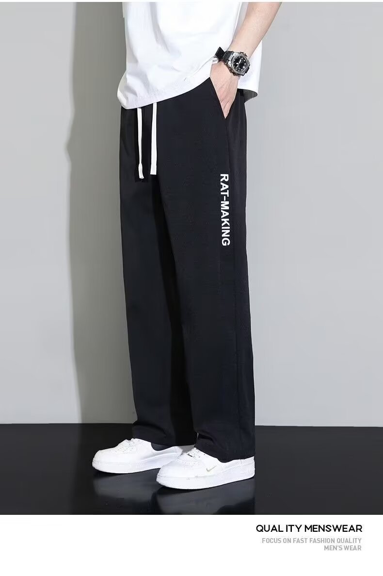 여름 얇은 캐주얼 바지 느슨한 직선 넓은 다리 소년 아이스 실크 슬라이딩 빠른 건조 스포츠 남성 바지 여름 바지스토어 가기