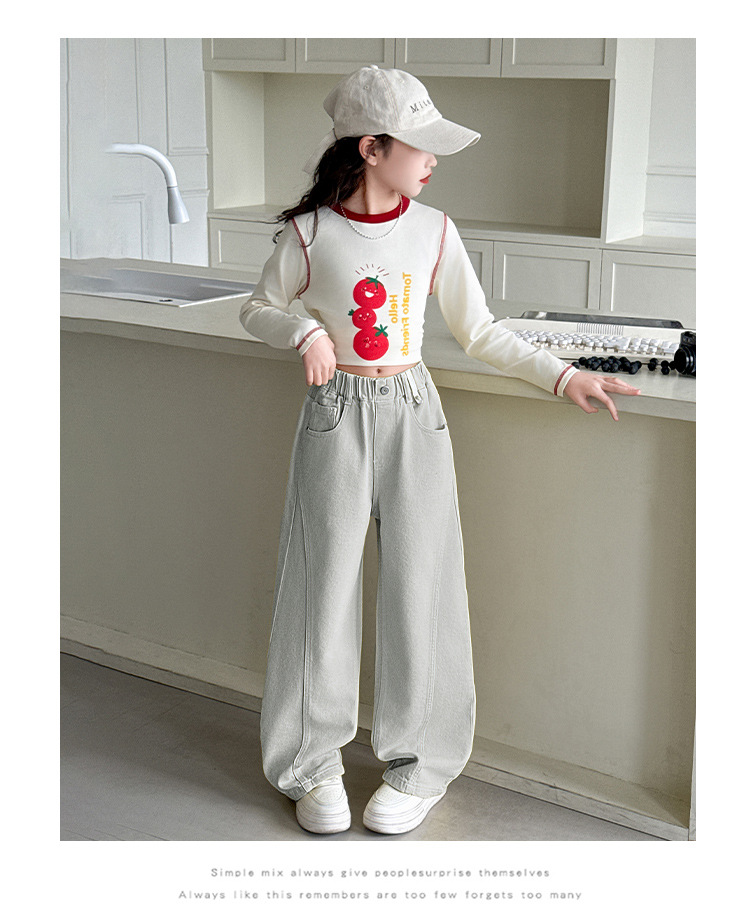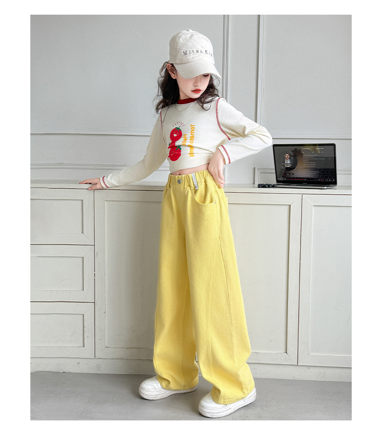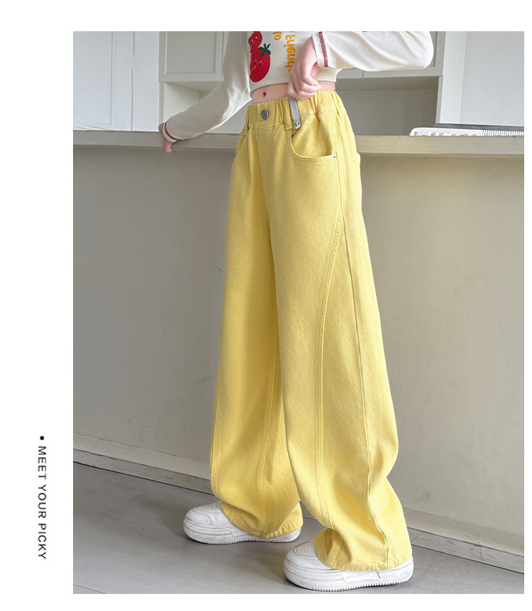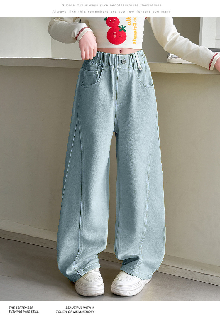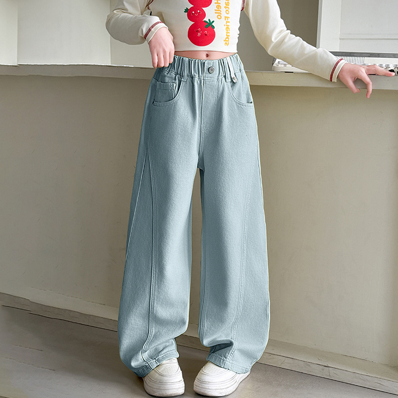 소녀 데님 마체 테 바지 2025 봄 새로운 유행 서양 스타일 올 매치 와이드 레그 바지 큰 어린이 도파민 청바지