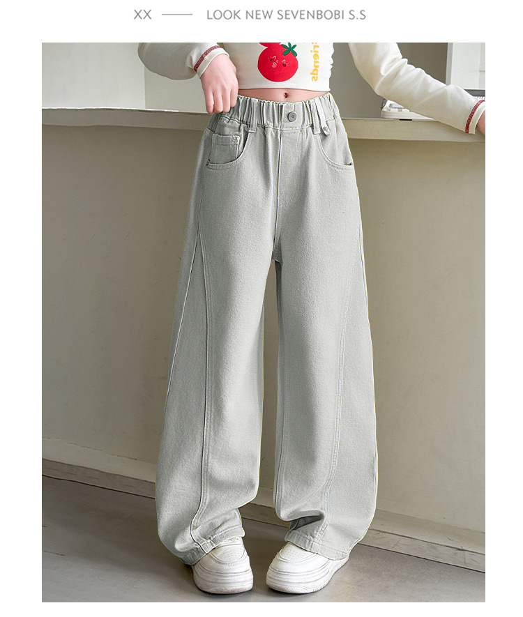 소녀 데님 마체 테 바지 2025 봄 새로운 유행 서양 스타일 올 매치 와이드 레그 바지 큰 어린이 도파민 청바지스토어 가기