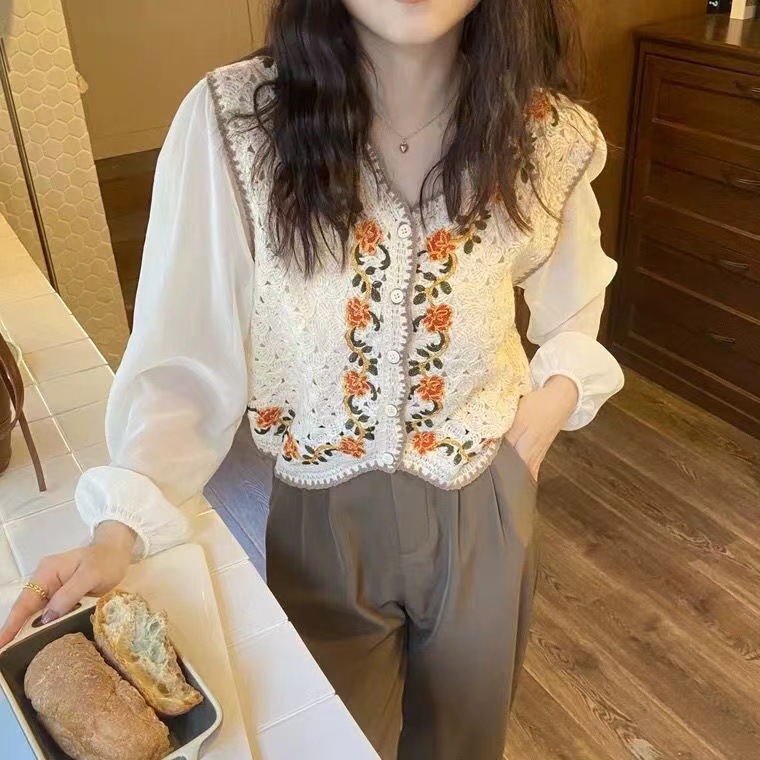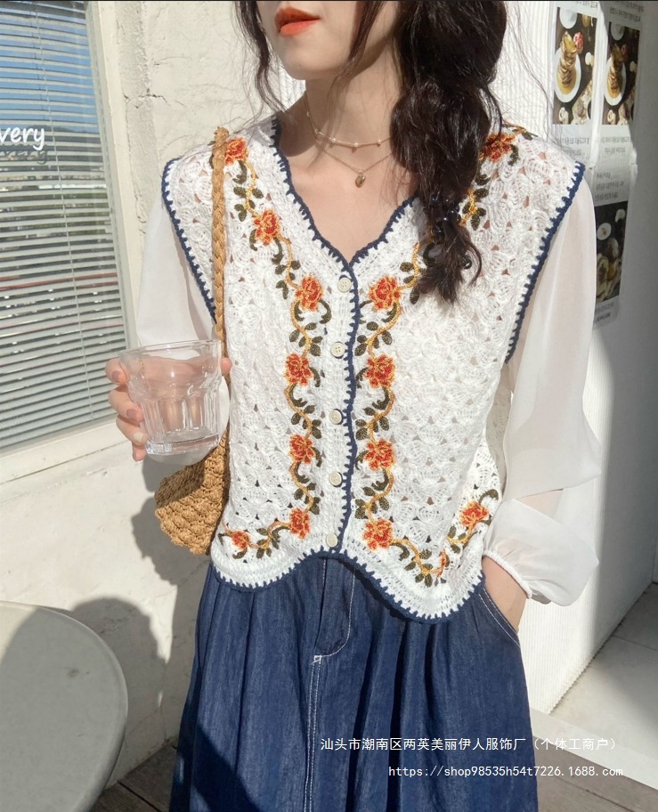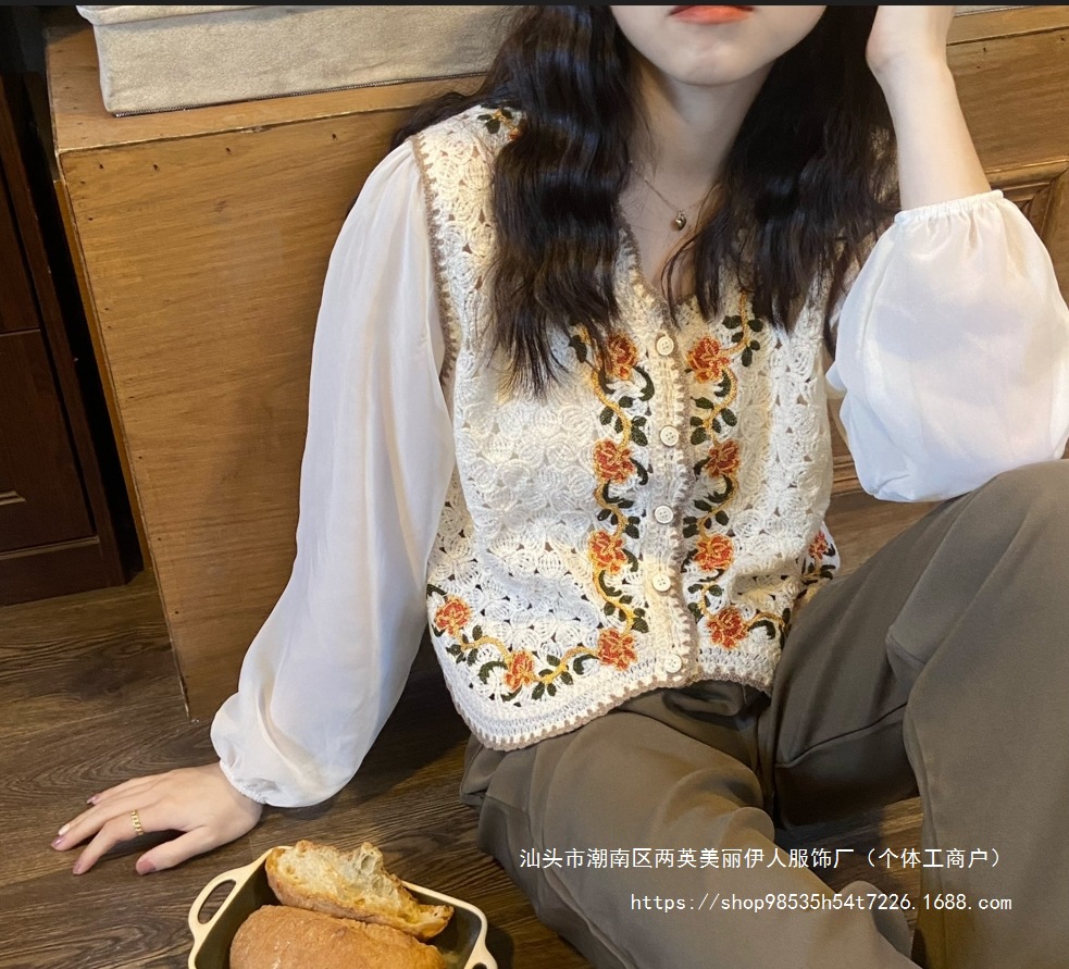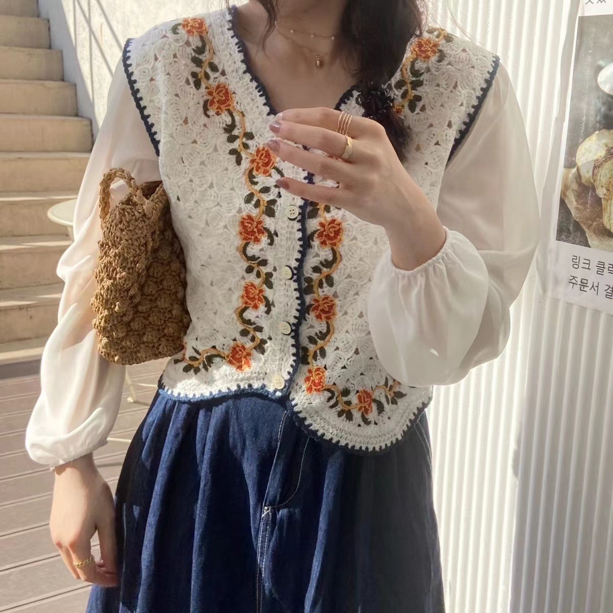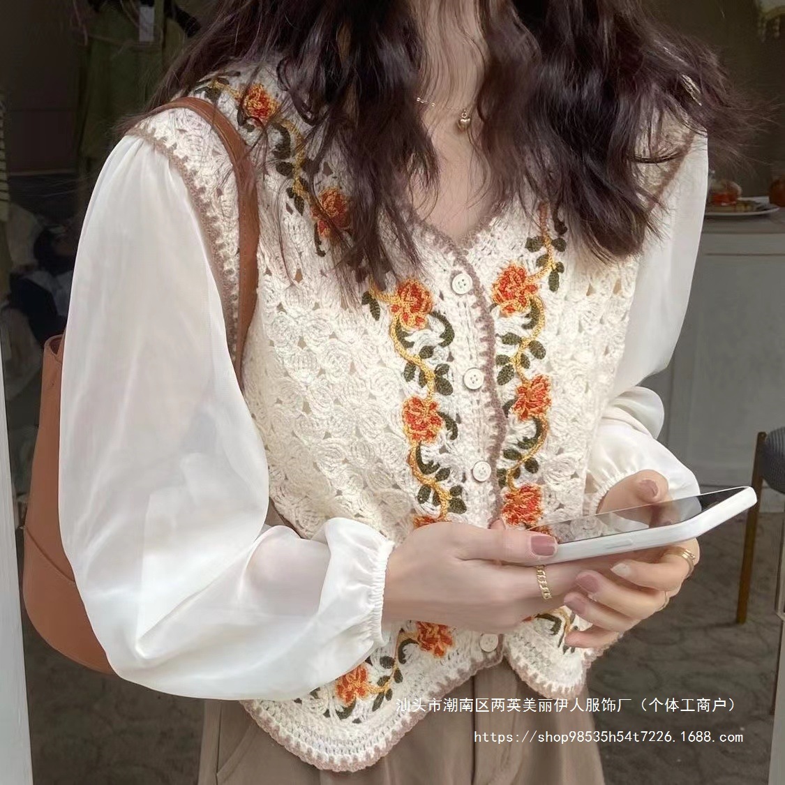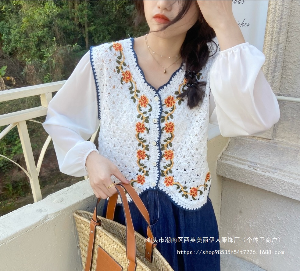 쉬폰 셔츠 샤넬 스타일 여름 레이스 셔츠 바느질 스퀘어 칼라 탑 달콤한 니트 셔츠 할로우 새로운 중국 스타일스토어 가기