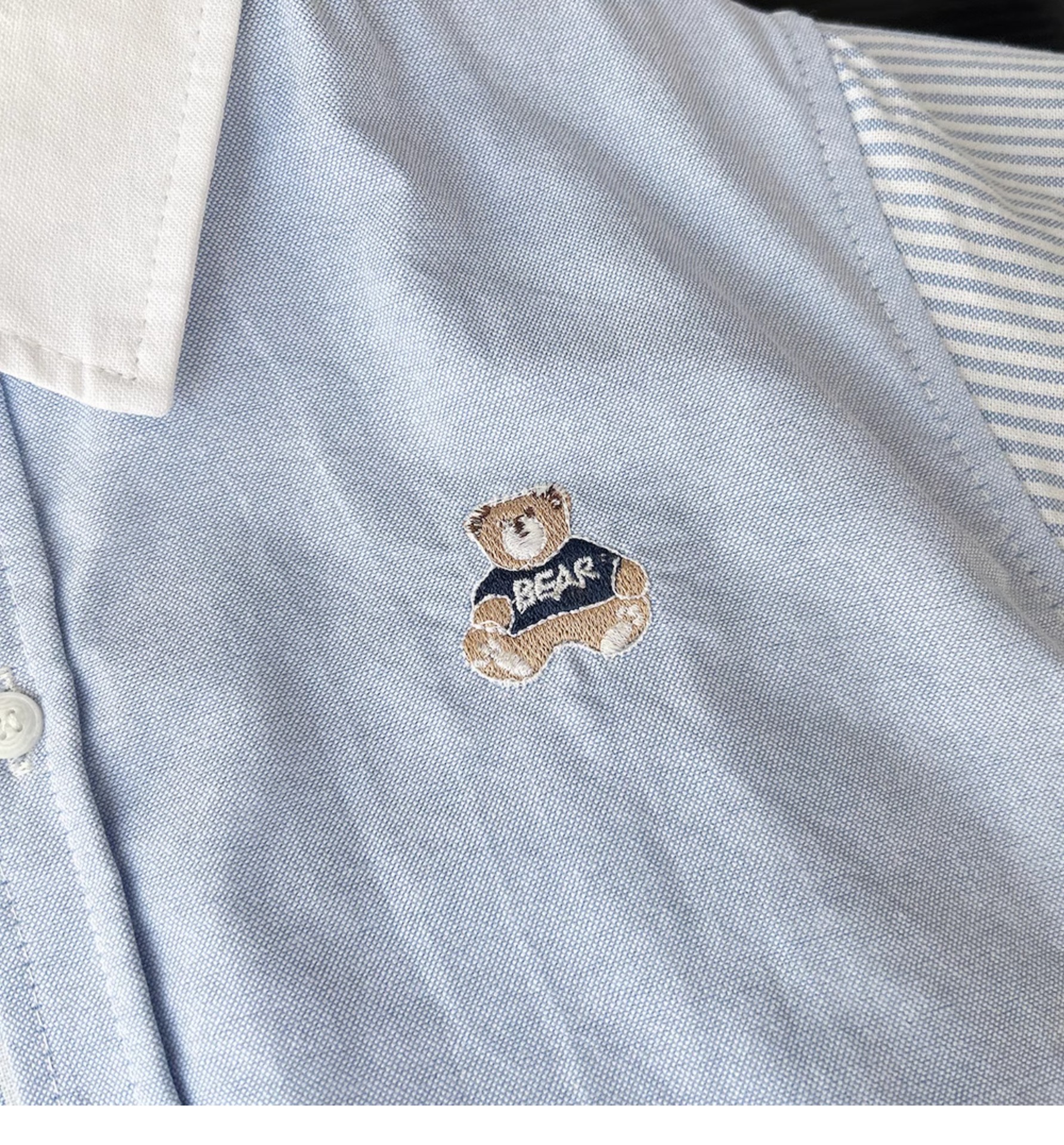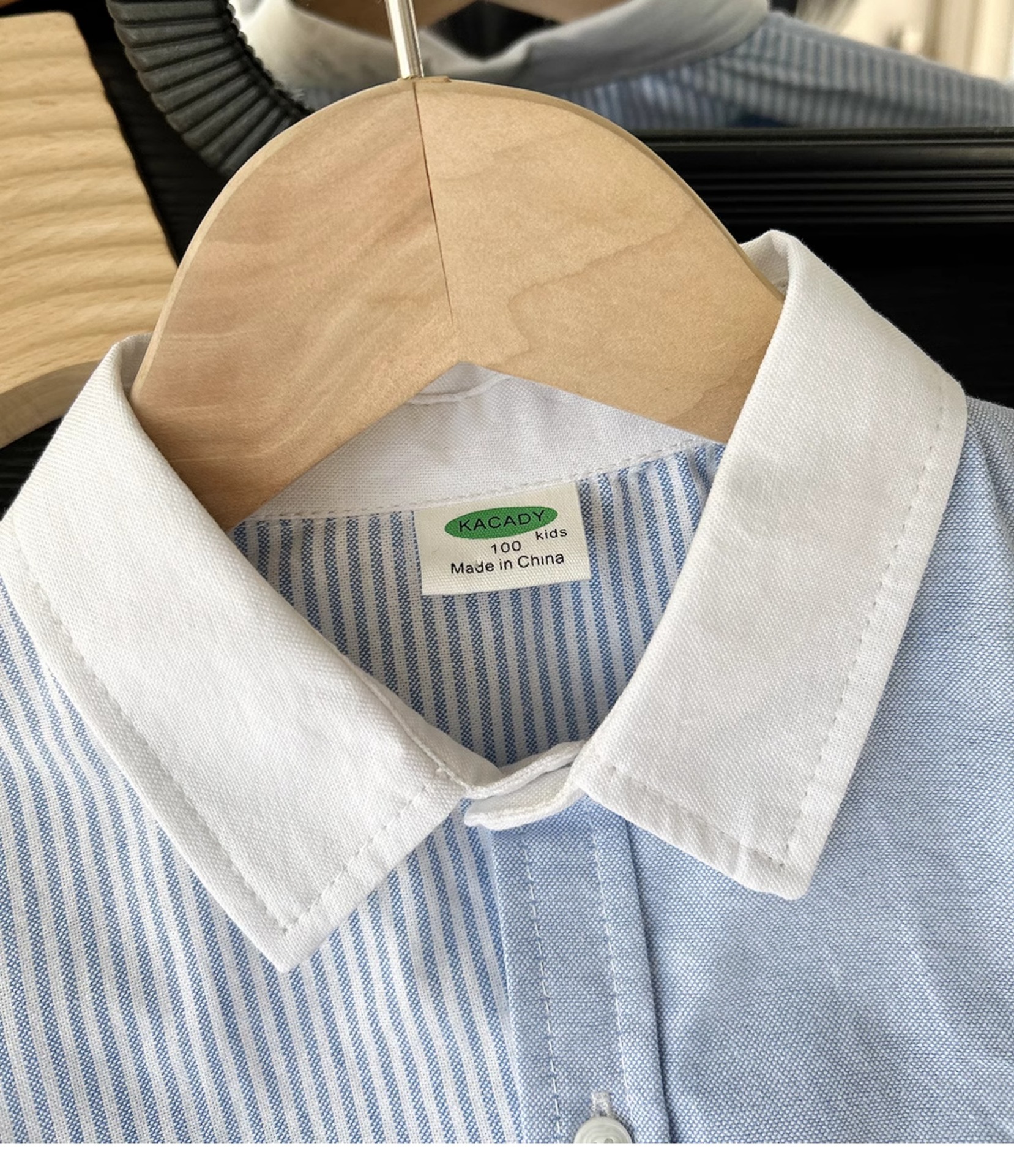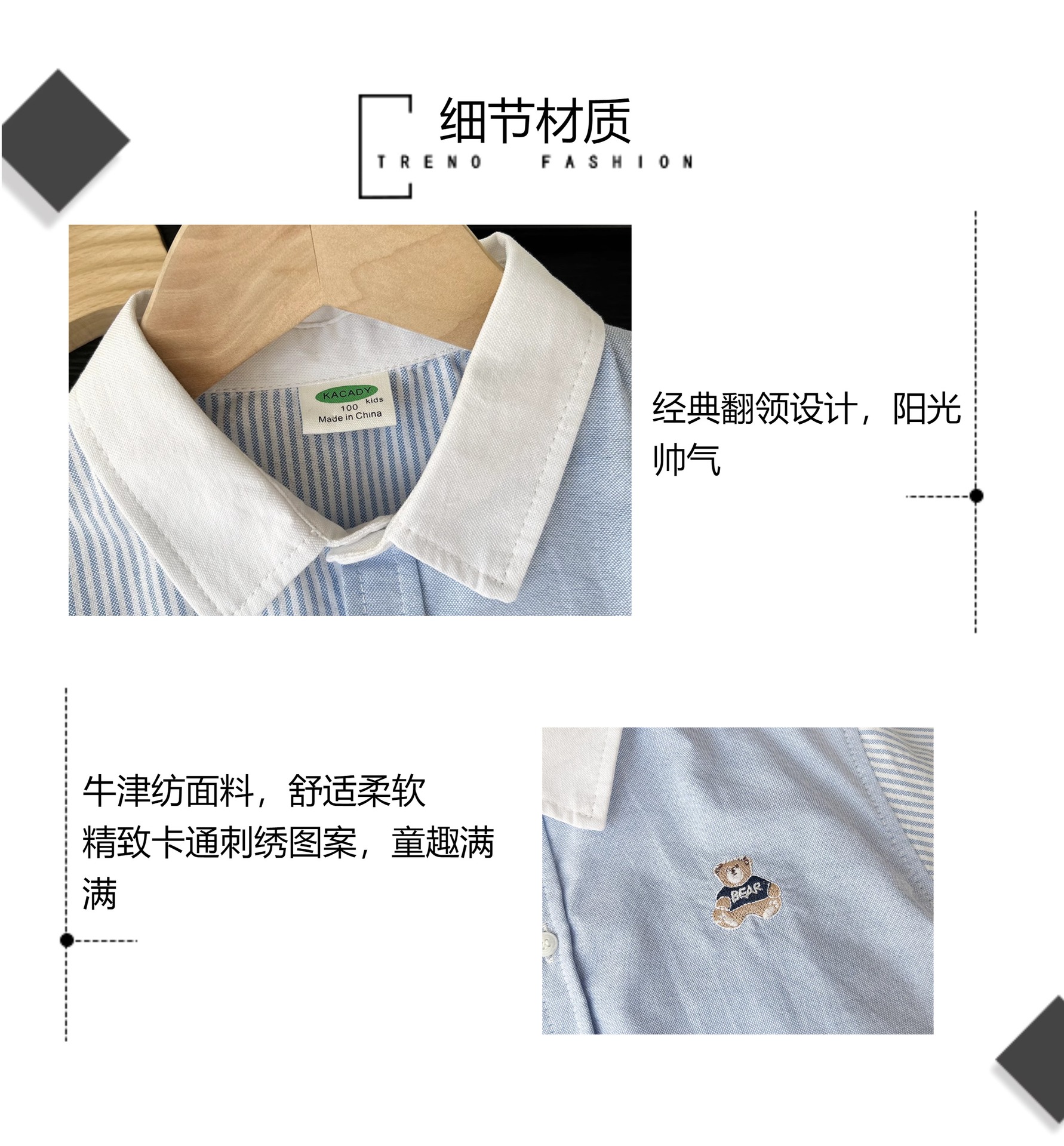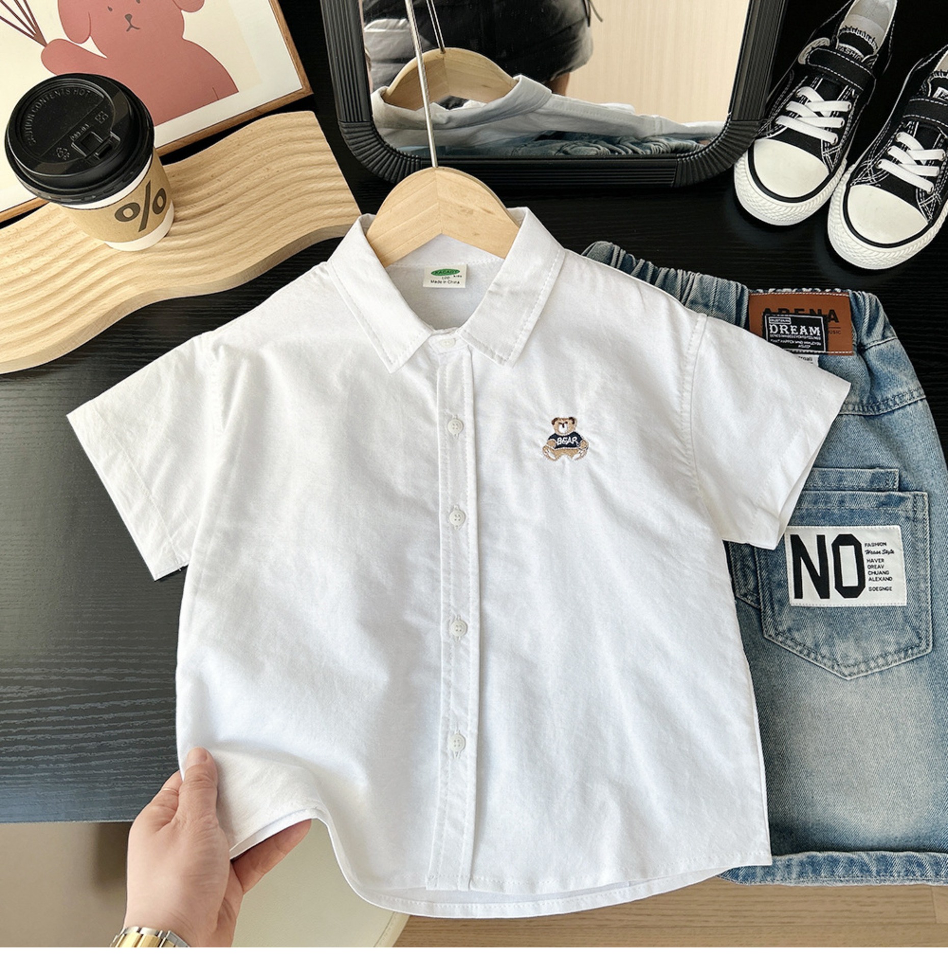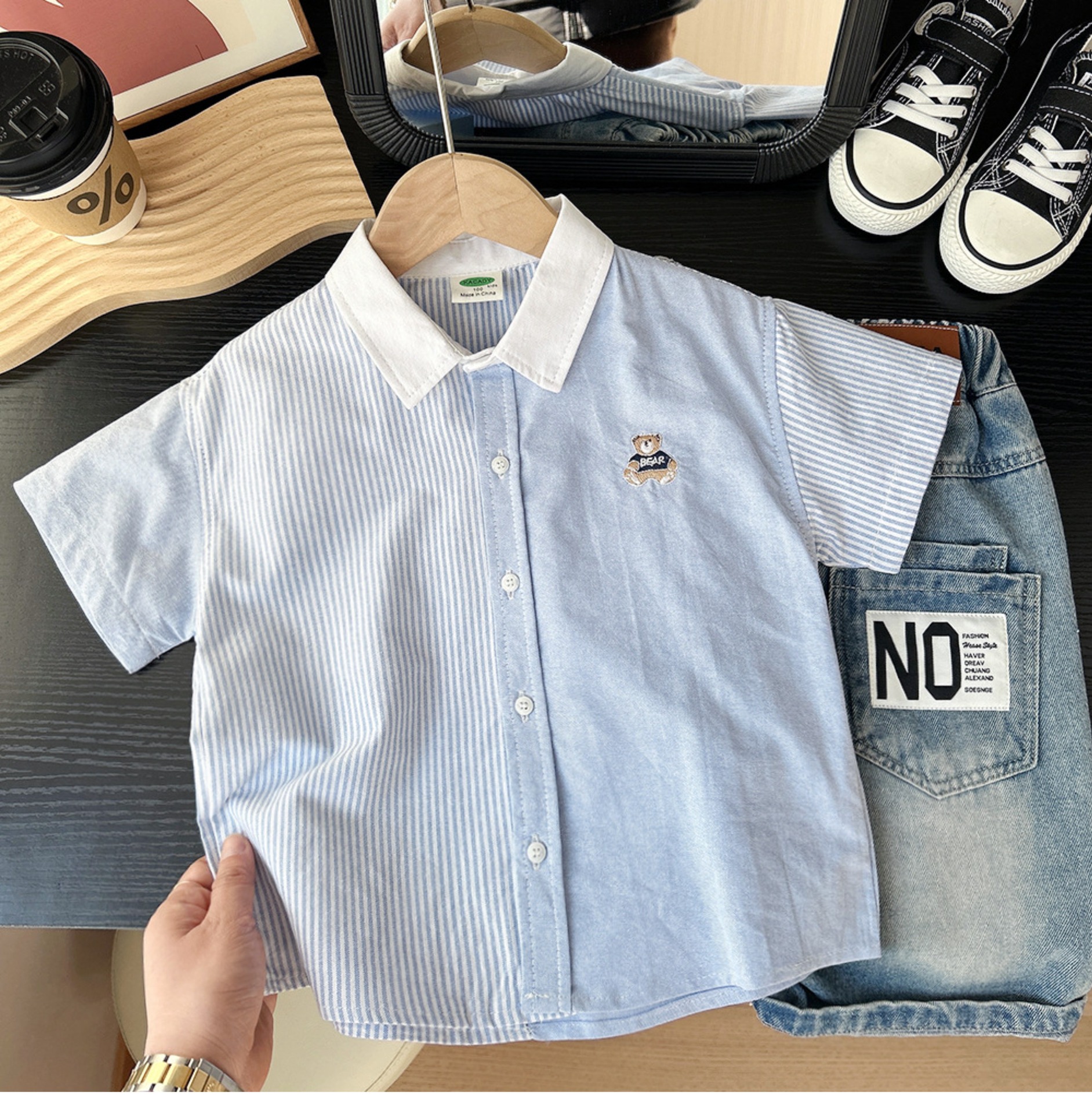 어린이 반팔 셔츠 2025 여름 새 도착 한국 스타일 면 옥스포드 만화 탑 큰 소년과 아기