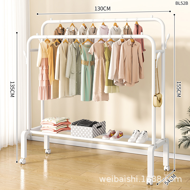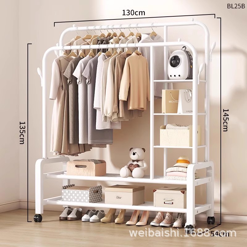 • 130cm 흰색 [이중 극⭐2단 수납선반】바퀴 포함