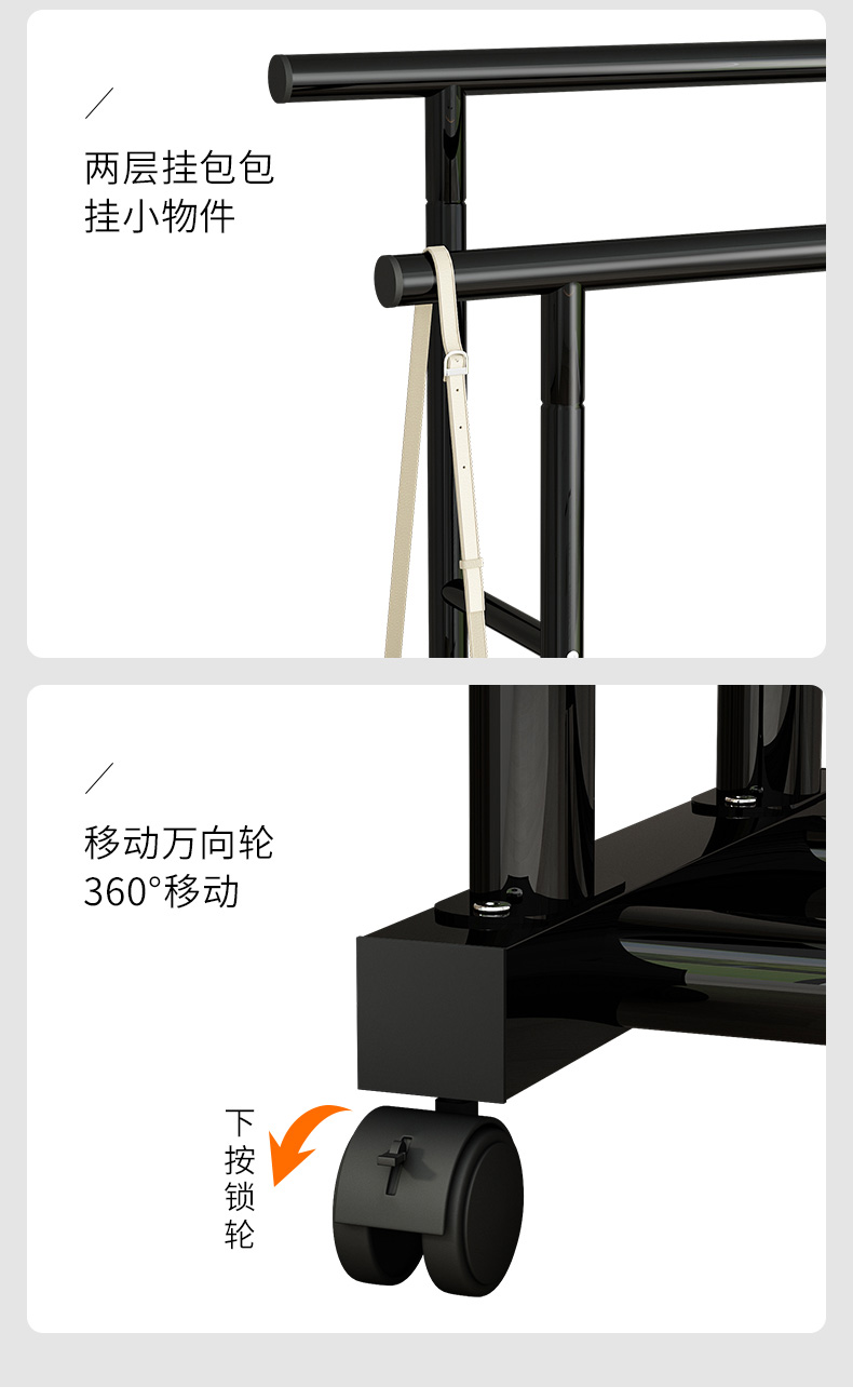 • 대담한⭐150cm 블랙[더블폴]⭐수납 선반】바퀴 포함
