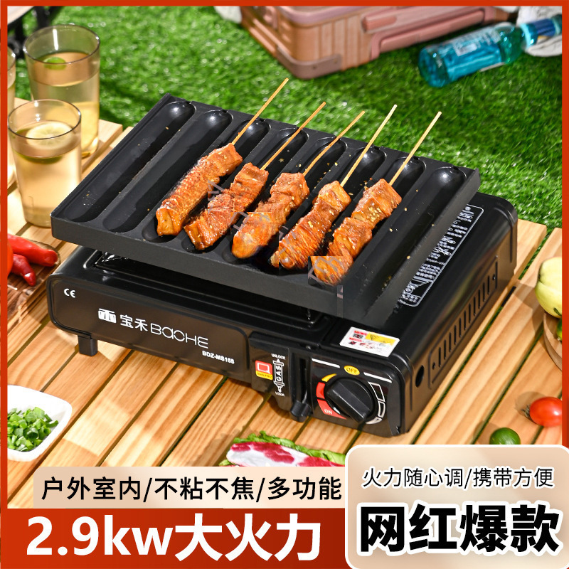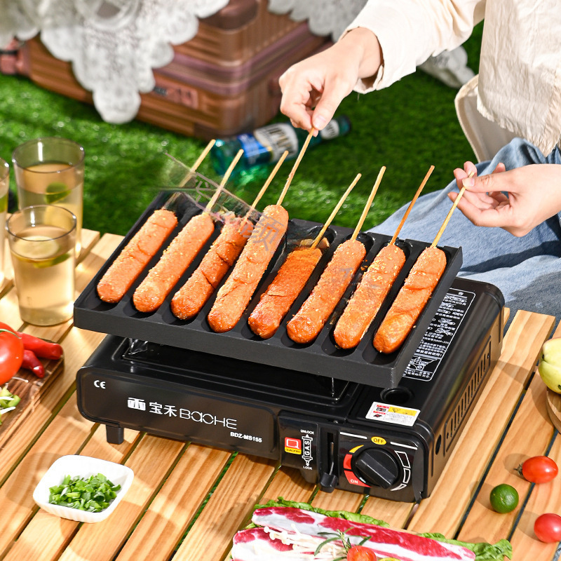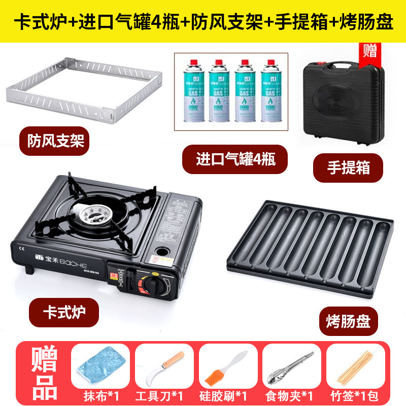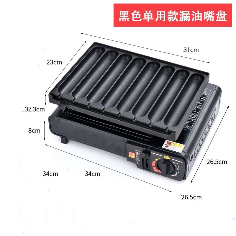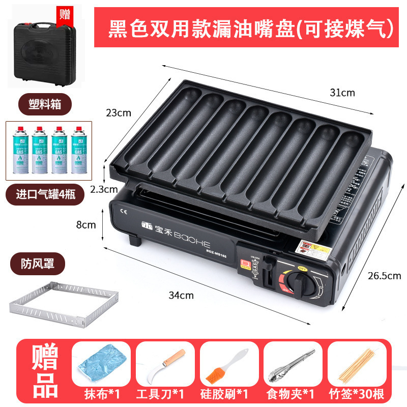• 오일 탱크가 있는 두꺼운 소시지 트레이 + 검정색 이중 목적 스토브 + 선물 + 가스 탱크 4개