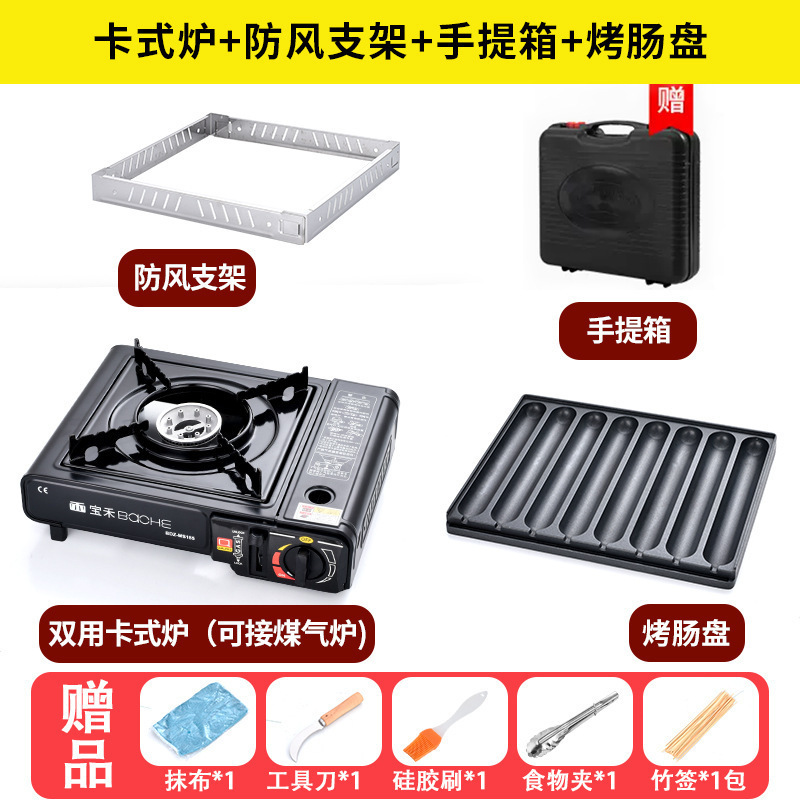 • 오일 탱크가 있는 두꺼운 소시지 트레이 + 검정색 이중 목적 스토브 + 선물 + 방풍 브래킷