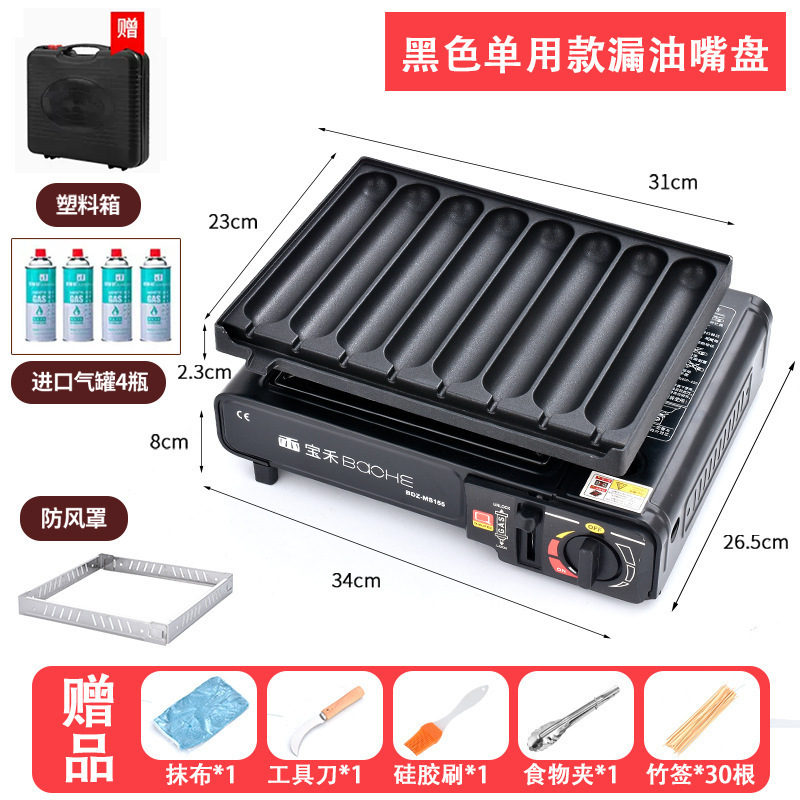 • 오일 탱크와 그리스 노즐이 있는 두꺼운 소시지 트레이 + 검정색 이중 목적 스토브 + 선물 + 가스 탱크 4개