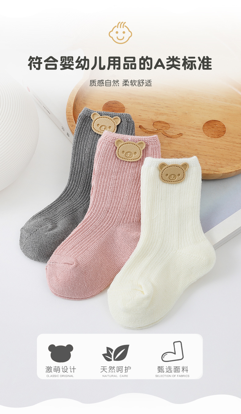 아기 양말 봄과 가을 여름 얇은 어린이 빗 코튼 아기 중간 길이 양말 신생아 어린이 스타킹 곰 여성스토어 가기