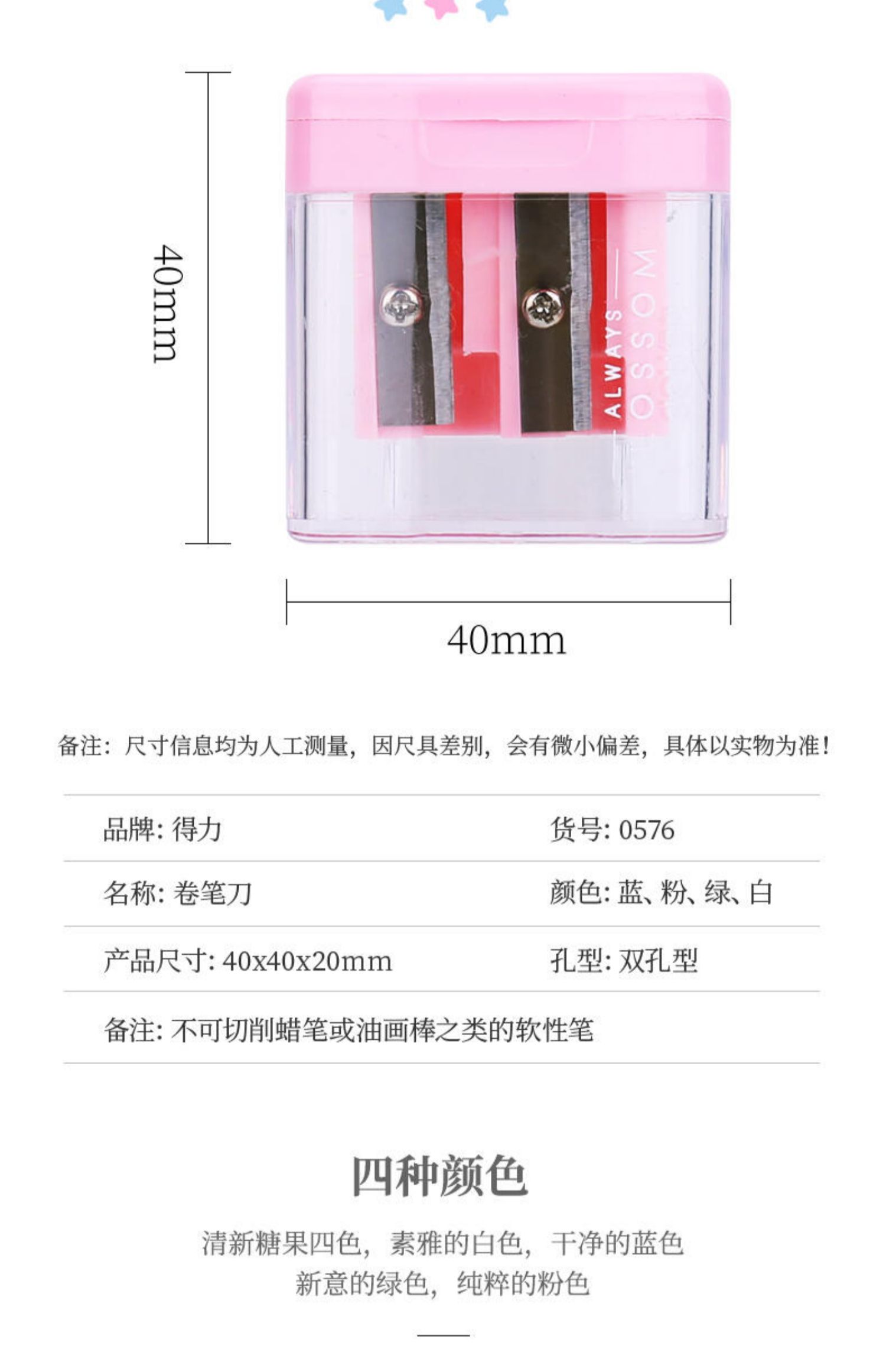 • 이중 구멍 연필깎이 1개/색상 랜덤