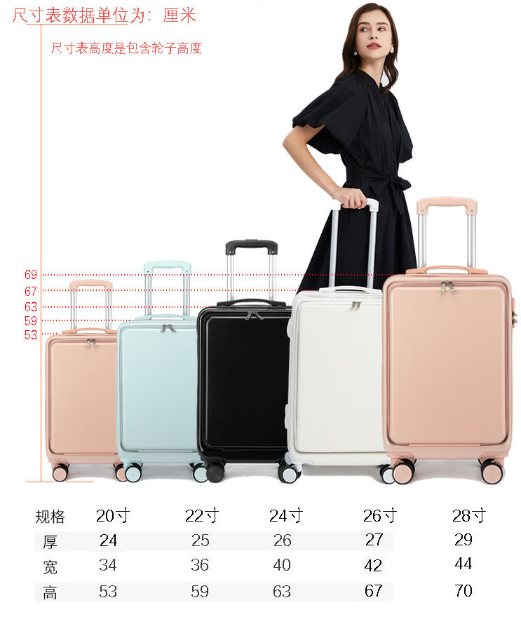 엄선된 공장/전면 개방형 20inch 여행가방 여성용 회전식 바퀴가 달린 트롤리 가방 26inch 비밀번호 기내 여행가방스토어 가기