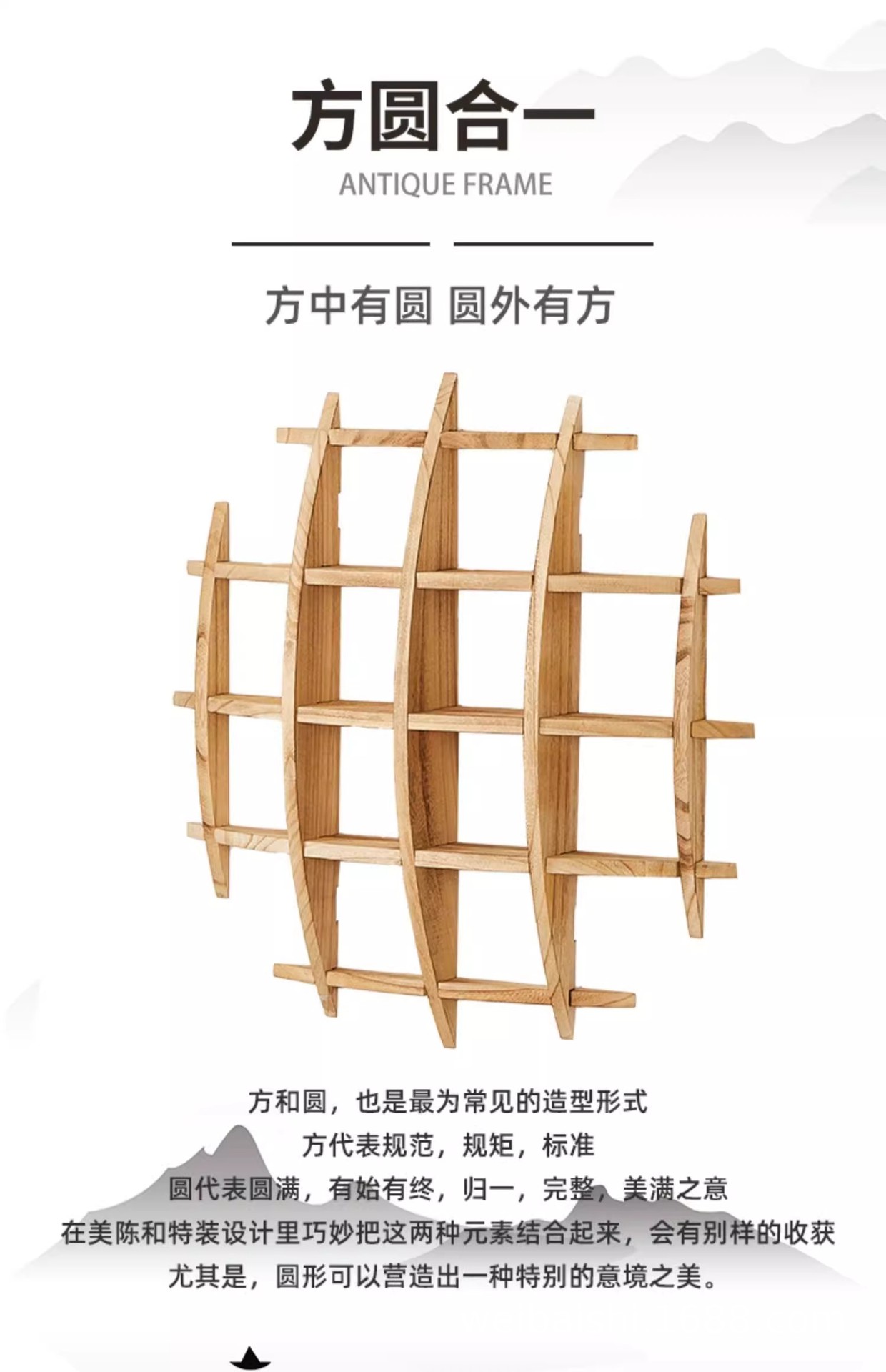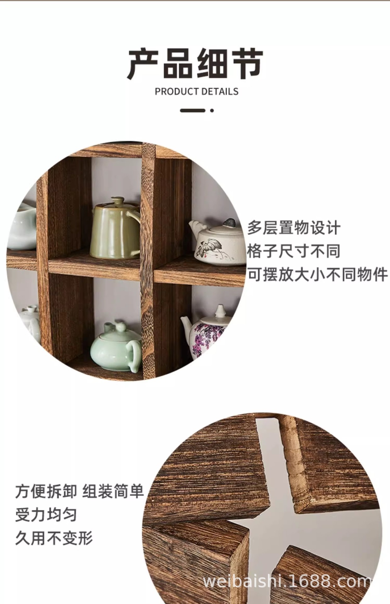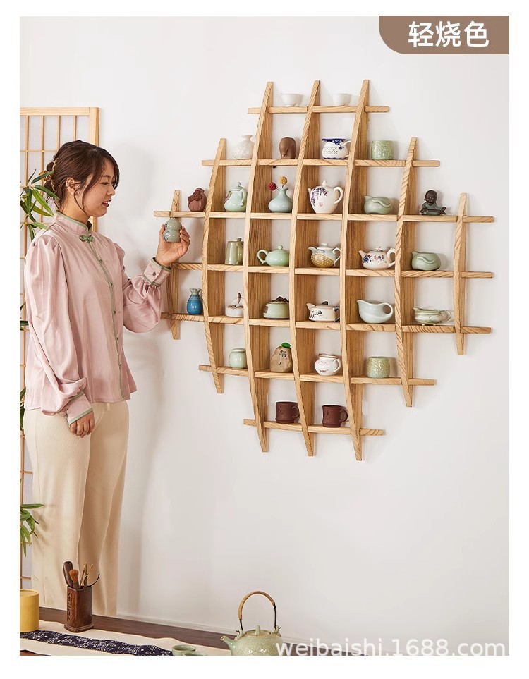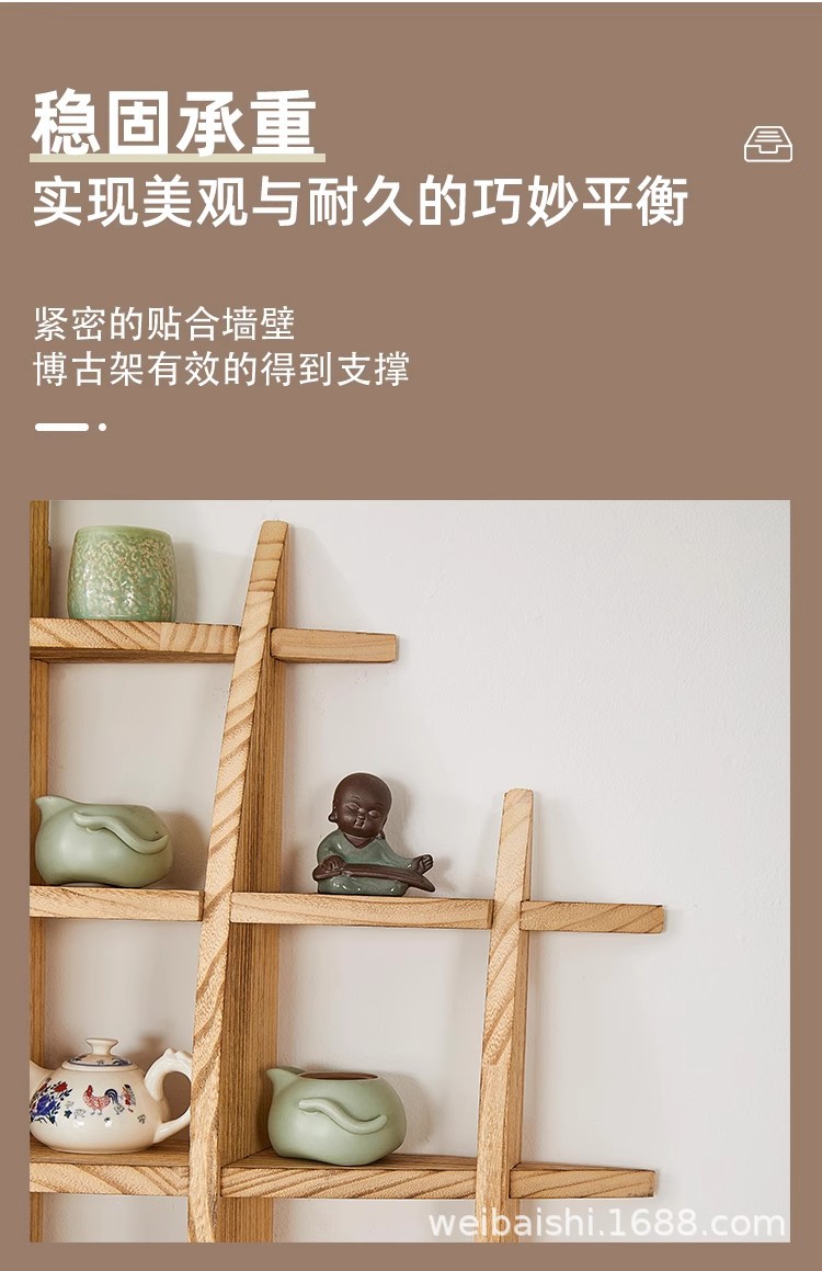 새로운 중국 스타일의 벽에 장착 된 티 컵 랙 벽걸이 형 골동품 랙 솔리드 우드 벽 Duobao Pavilion Prellis 랙 스토리지 랙 배경 전시회