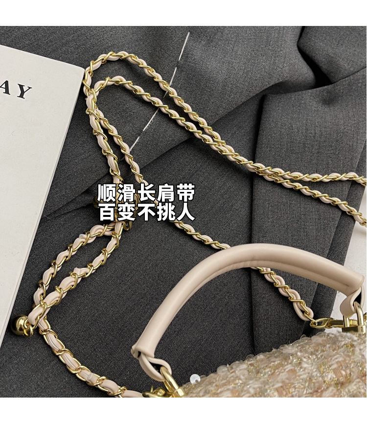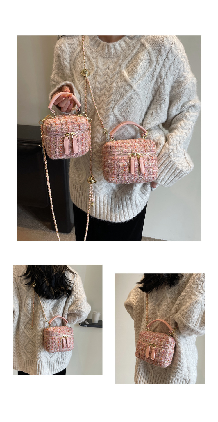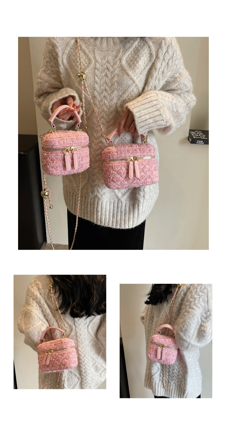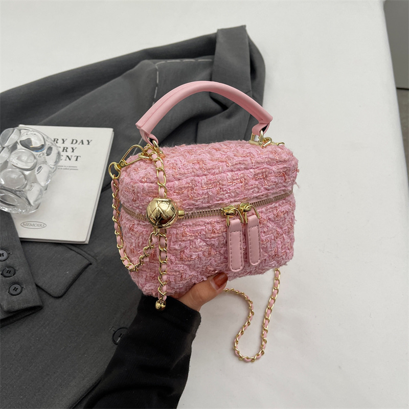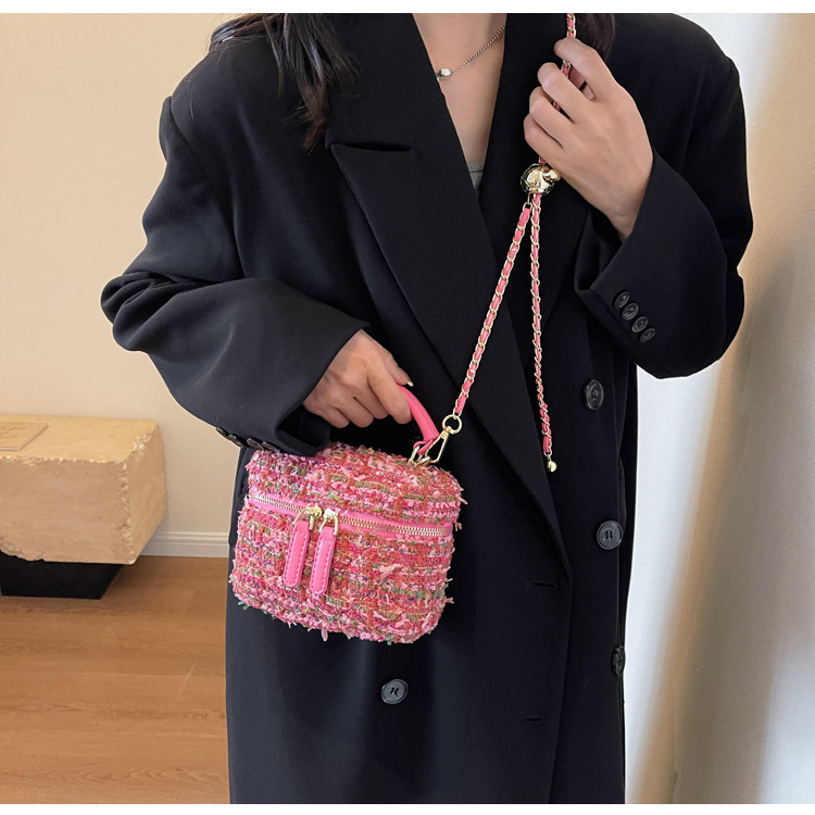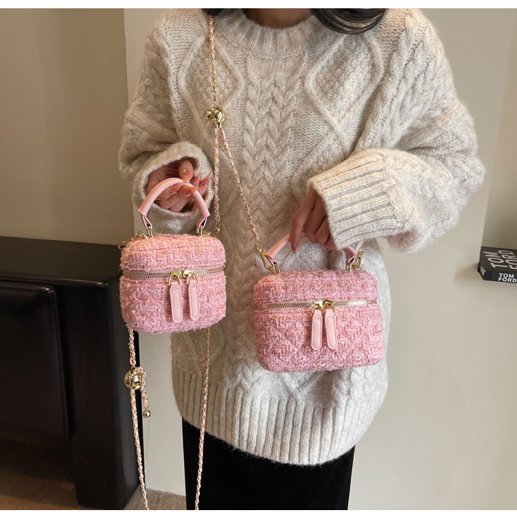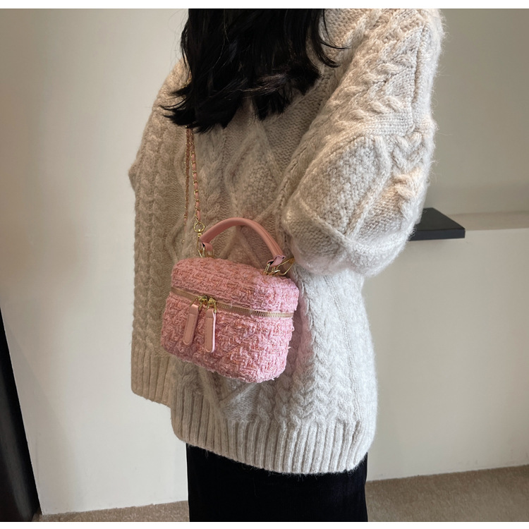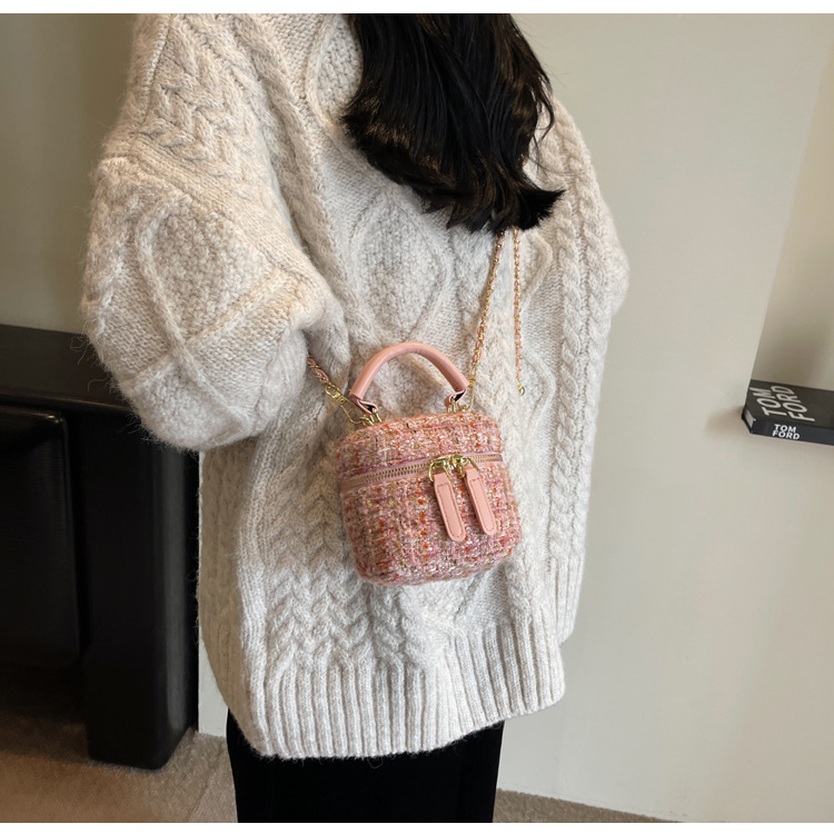 모직 작은 가방 여성의 2024 가을과 겨울 새로운 온라인 인기있는 서양식 체인 크로스 바디 작은 사각형 가방 미니 핸드 버킷 가방