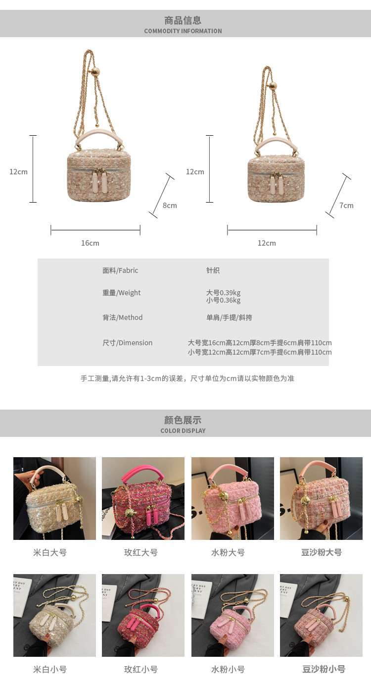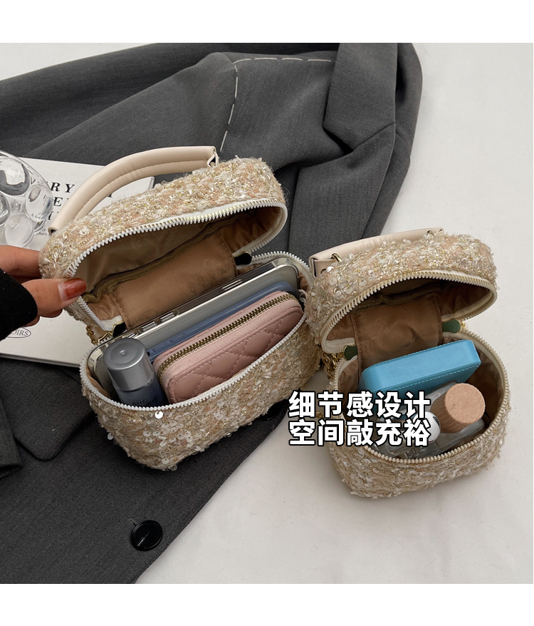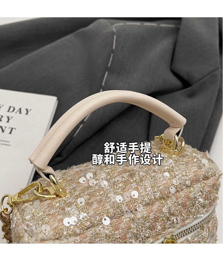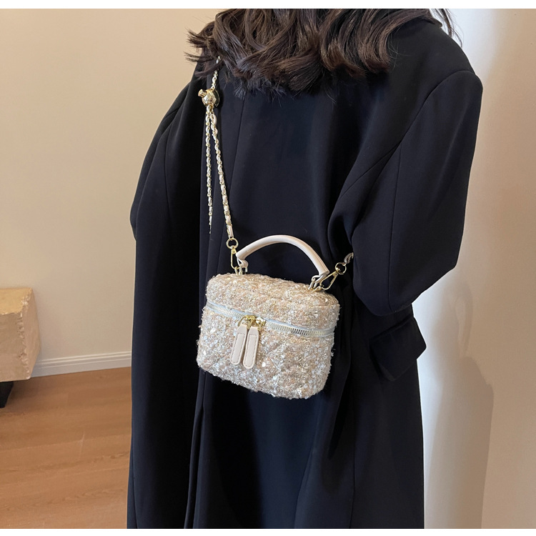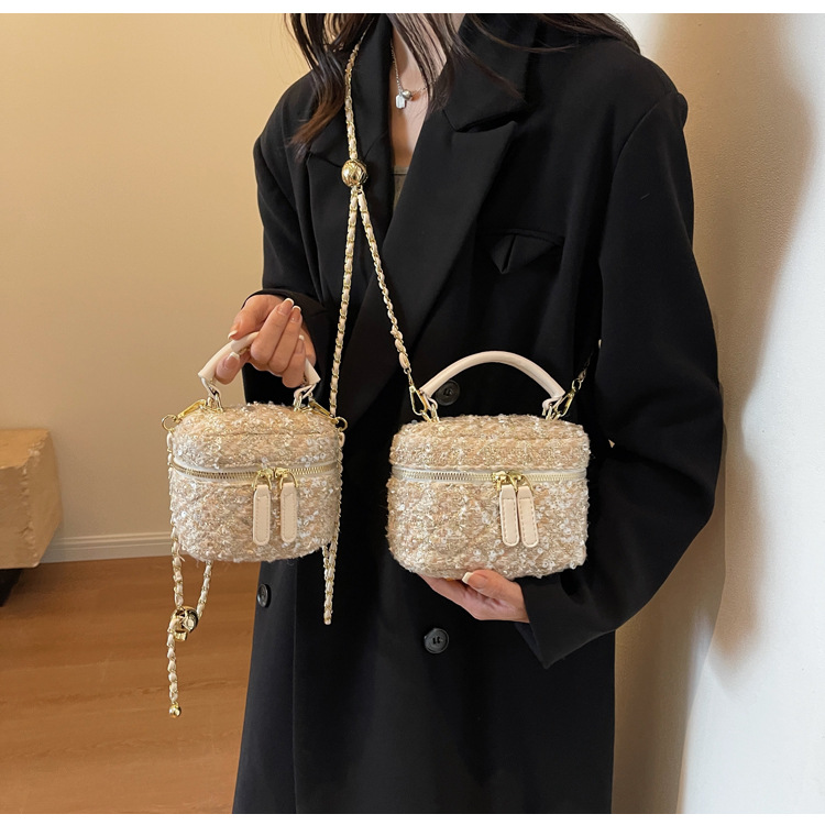 모직 작은 가방 여성의 2024 가을과 겨울 새로운 온라인 인기있는 서양식 체인 크로스 바디 작은 사각형 가방 미니 핸드 버킷 가방스토어 가기