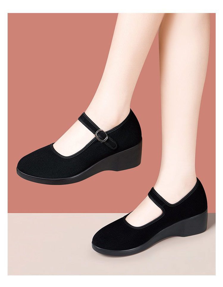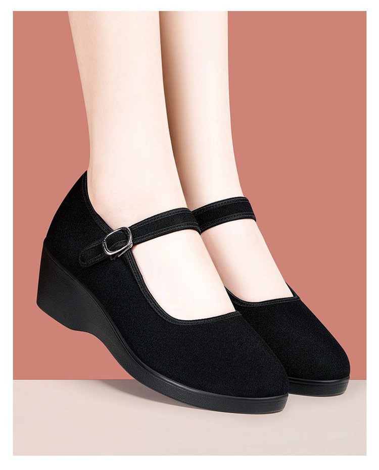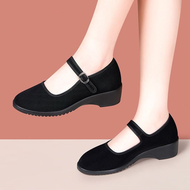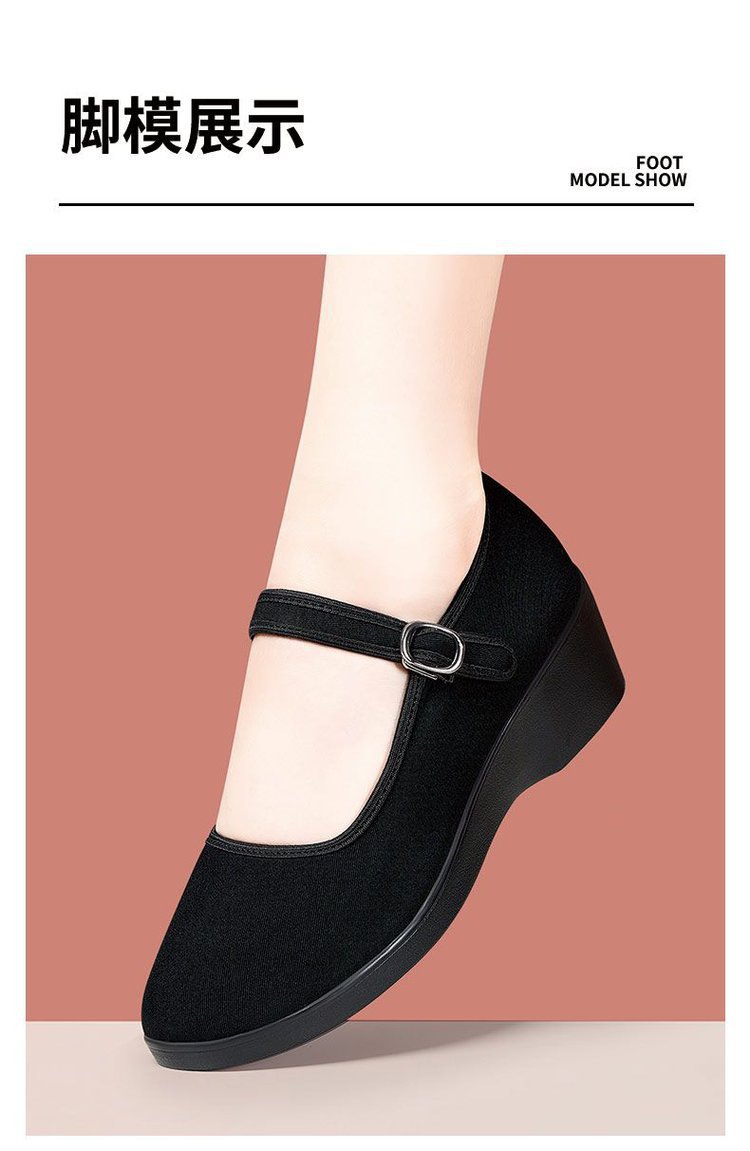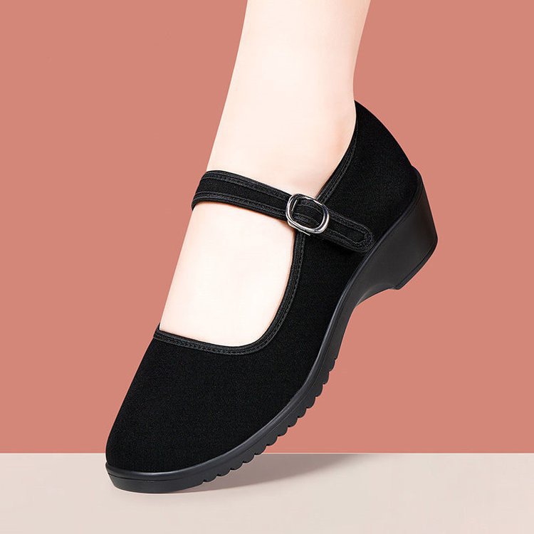 웨지 천 신발 여성 싱글 신발 봄 호텔 블랙 워크 슈즈 여성 댄스 슈즈 비 슬립 플랫 슈즈 소프트 단독 마더 슈즈스토어 가기