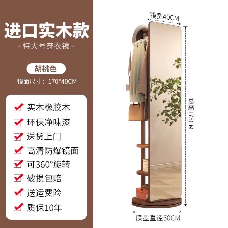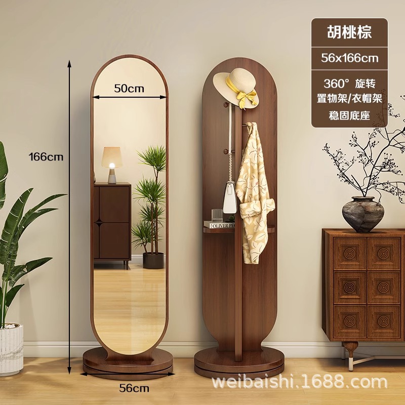 단단한 나무 전체 길이 거울 바닥 거울 가정용 침실 옷걸이 통합 드레싱 거울과 회전 가능한 모바일 피팅 거울스토어 가기