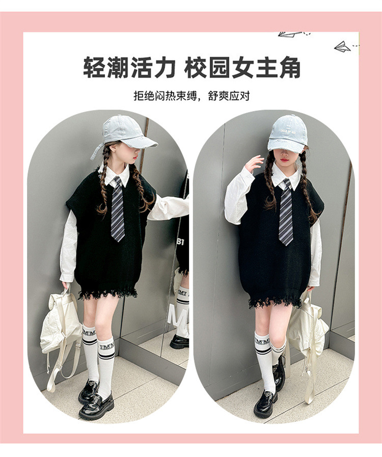 소녀 2025 세트 새로운 소녀 세련된 봄과 가을 옷 어린이 니트 조끼 셔츠 투피스 세트스토어 가기