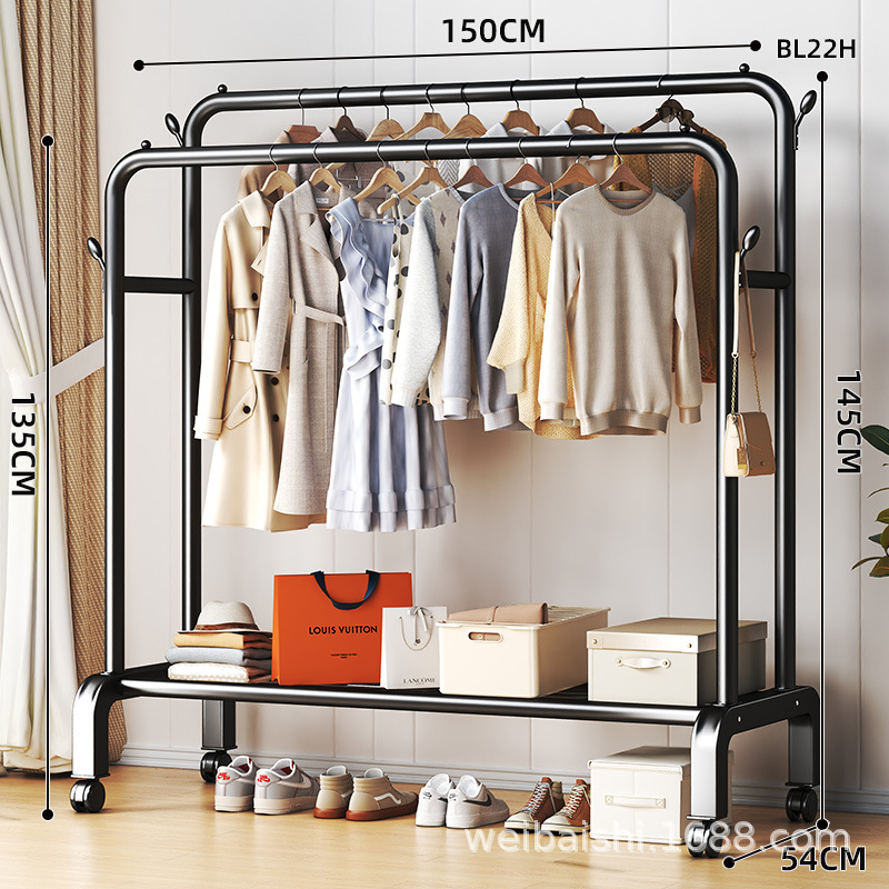 • 150cm 블랙|나뭇가지 후크 4개 + 이중 극 이중층 + 범용 휠❤(옷걸이 2배) [대담하고 두꺼우며 내하중이 매우 강함]