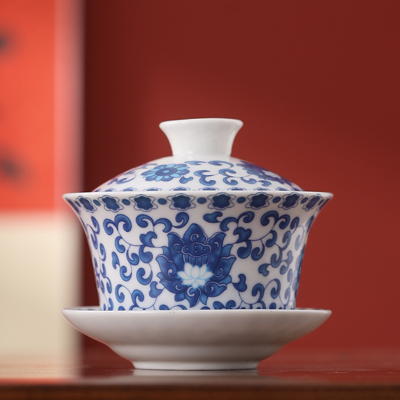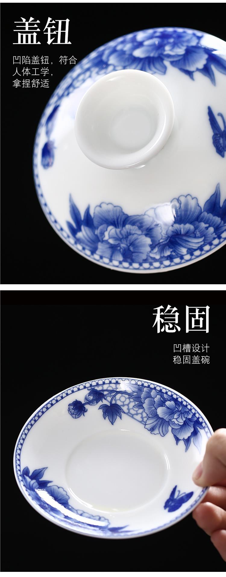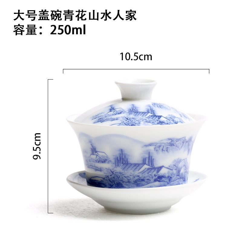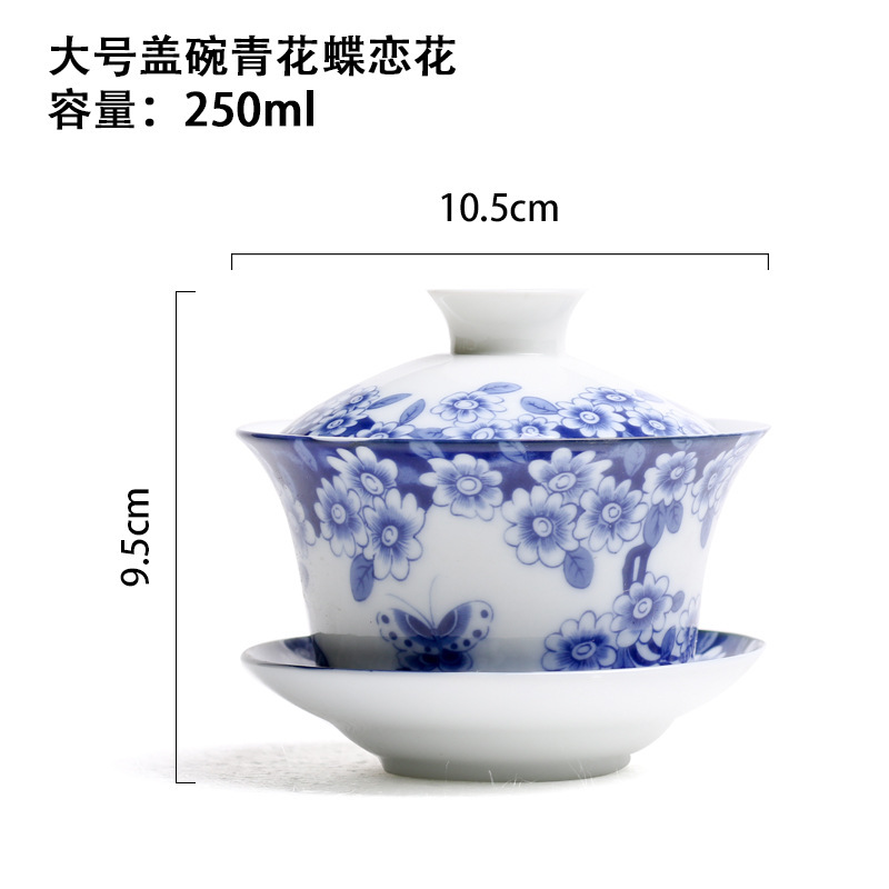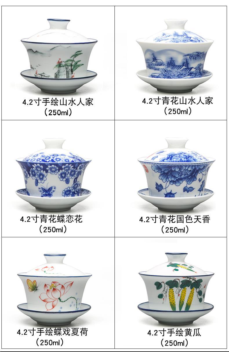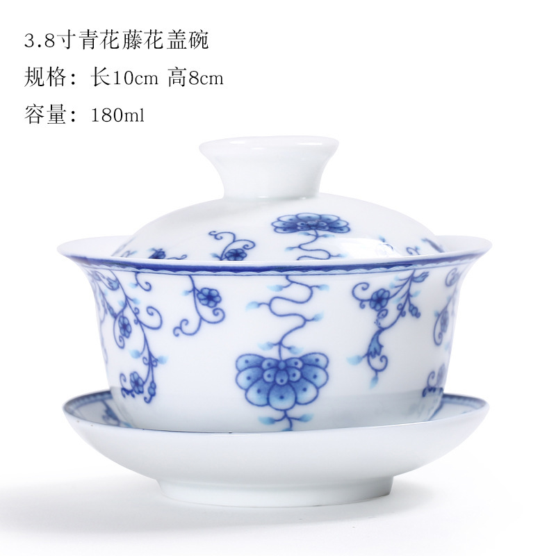 Gaiwan Tea Cup Dehua 흰색 도자기 차 세트 큰 차 그릇 파란색과 흰색 도자기 세라믹 손으로 그린 쿵푸 싱글 3 인재 그릇스토어 가기