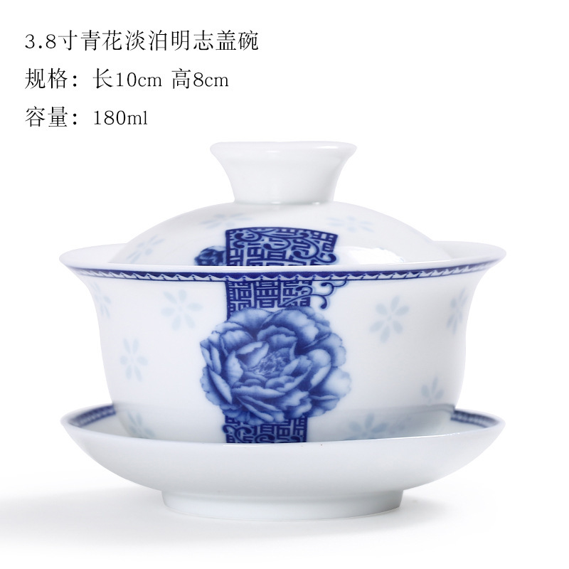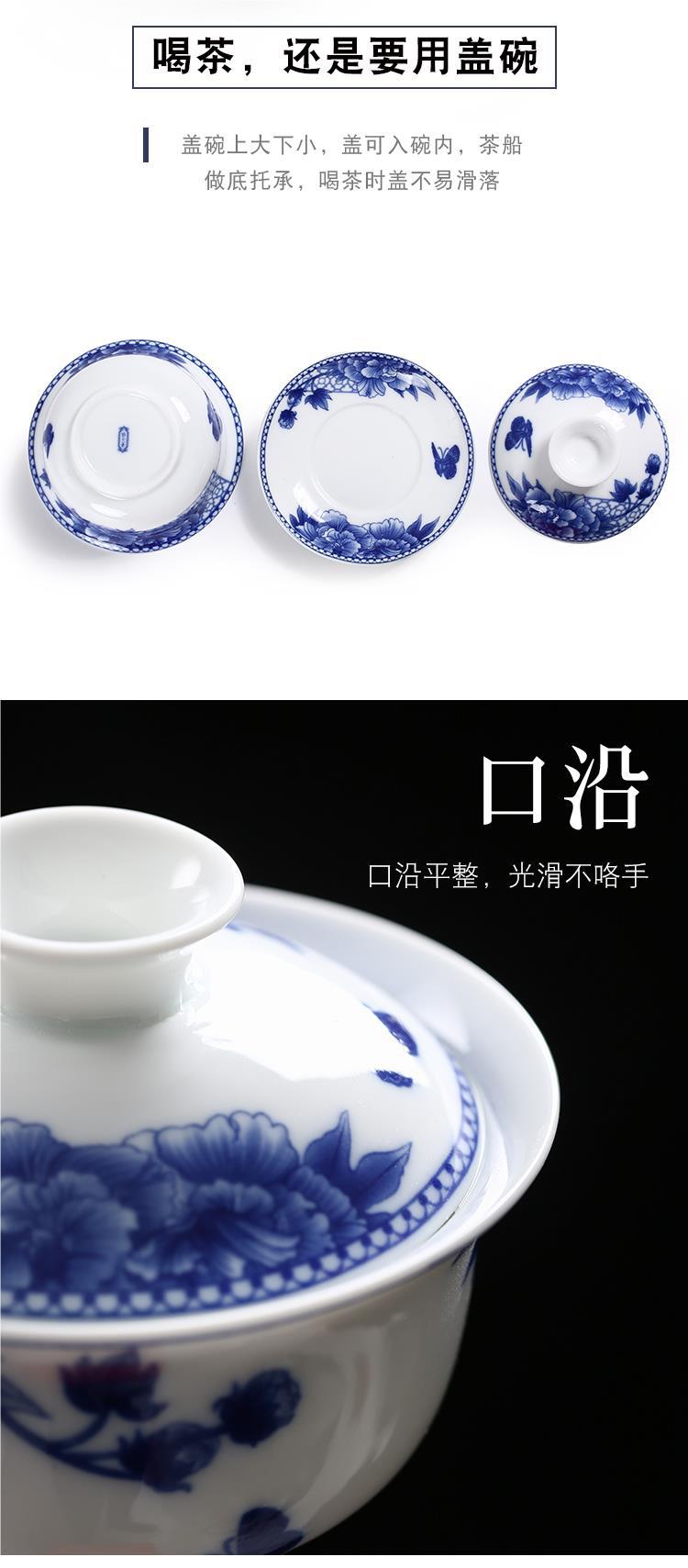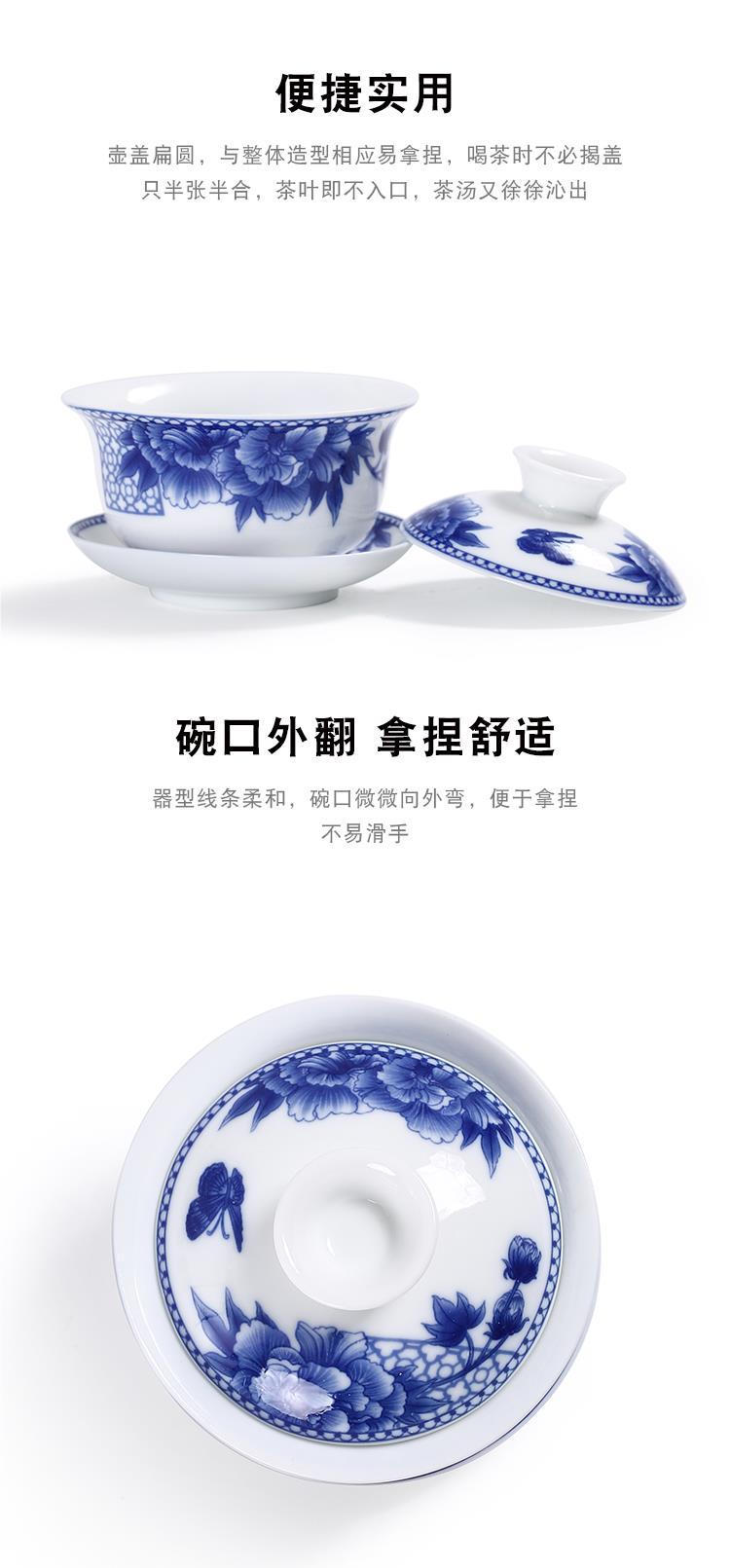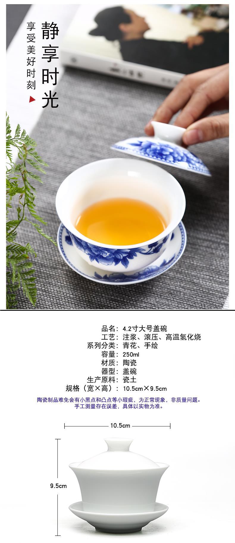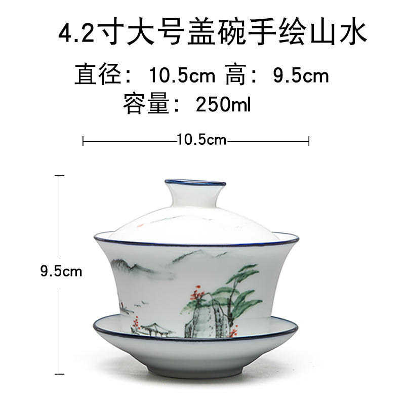 Gaiwan Tea Cup Dehua 흰색 도자기 차 세트 큰 차 그릇 파란색과 흰색 도자기 세라믹 손으로 그린 쿵푸 싱글 3 인재 그릇스토어 가기