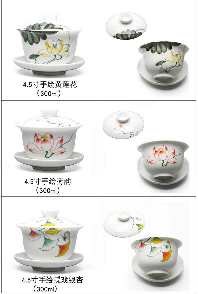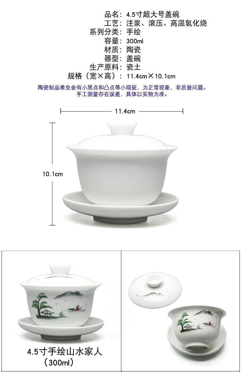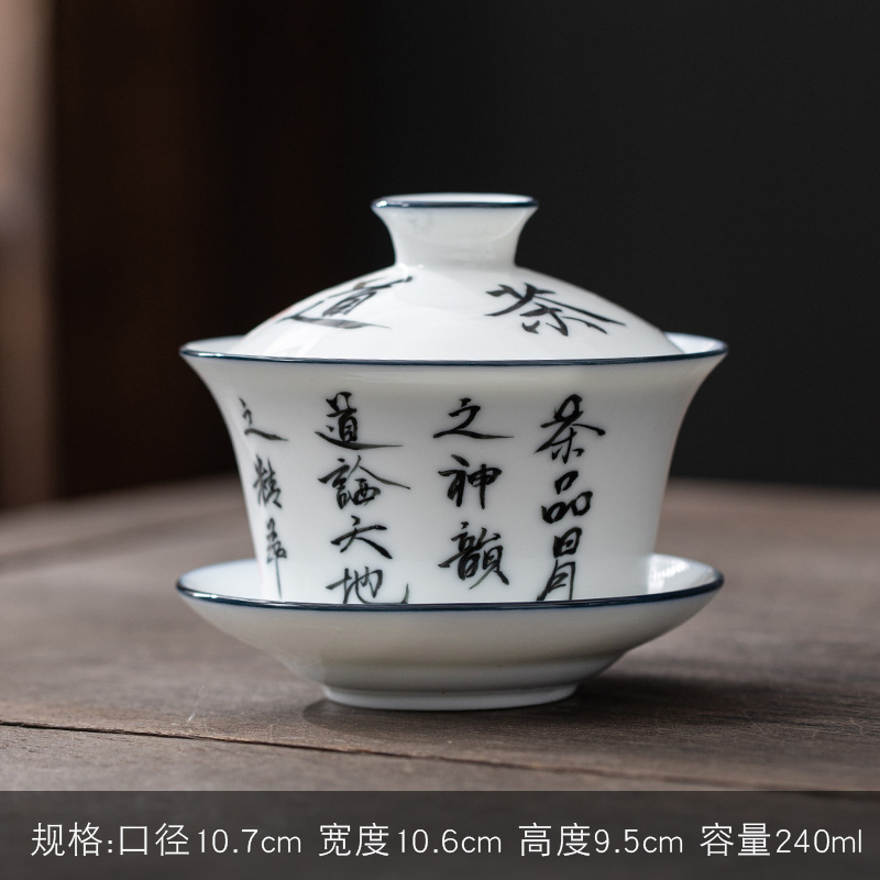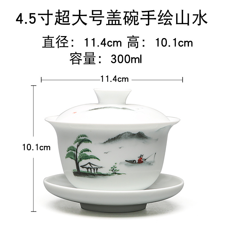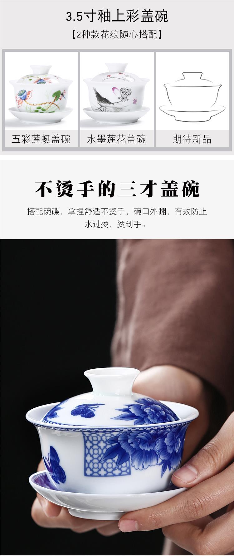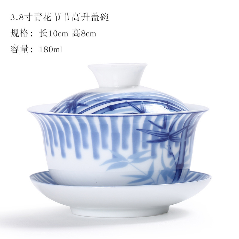 Gaiwan Tea Cup Dehua 흰색 도자기 차 세트 큰 차 그릇 파란색과 흰색 도자기 세라믹 손으로 그린 쿵푸 싱글 3 인재 그릇스토어 가기