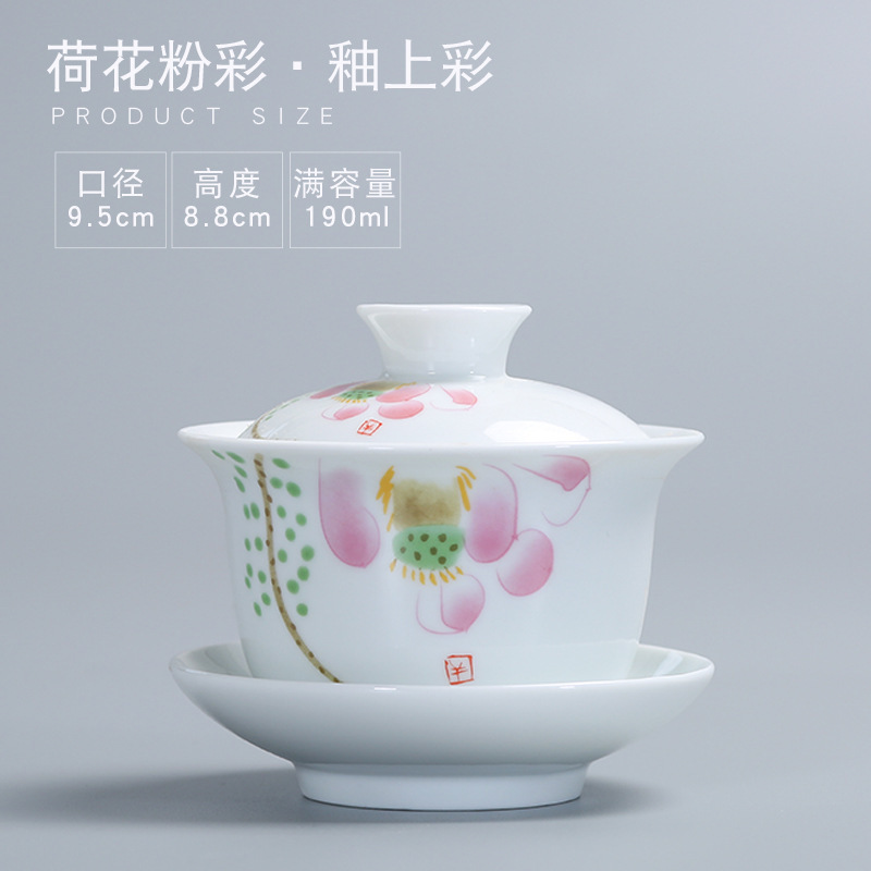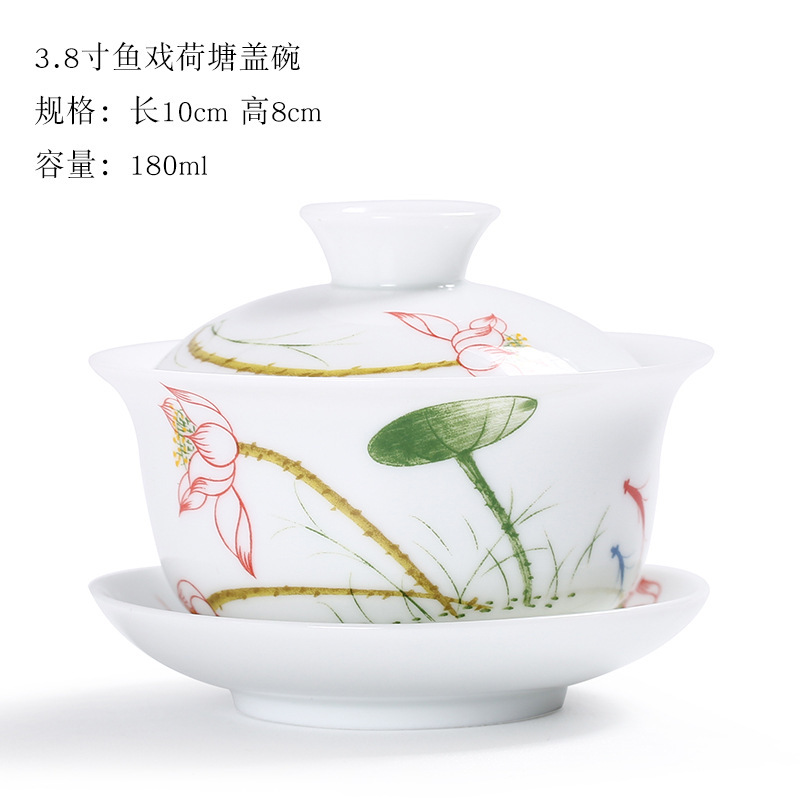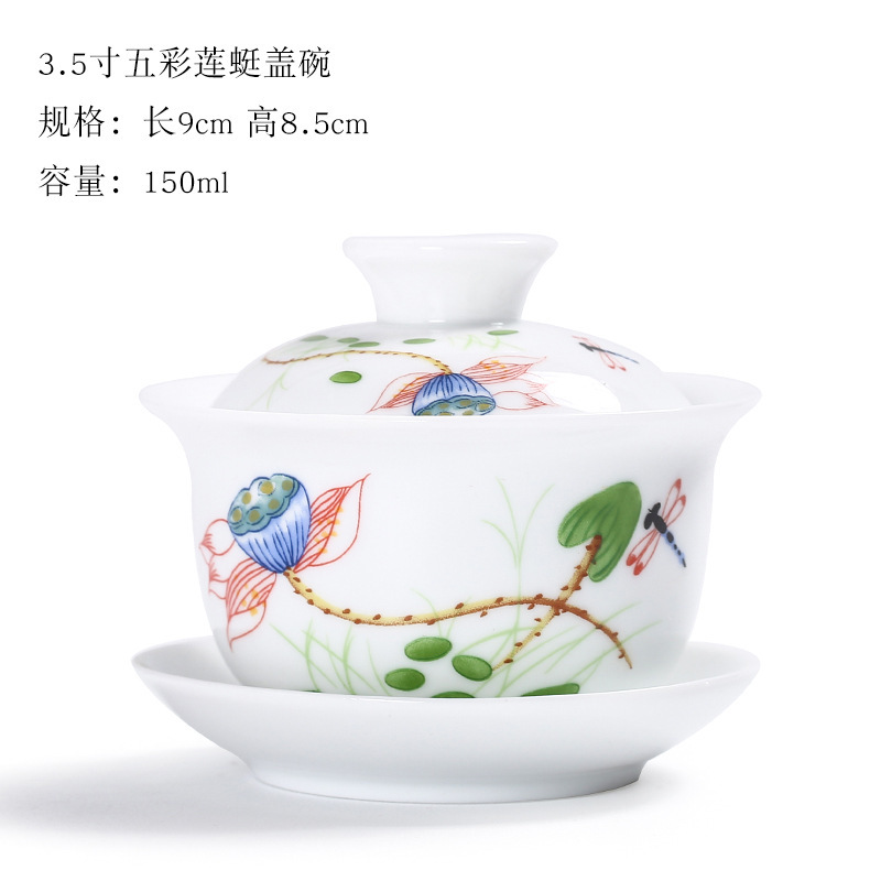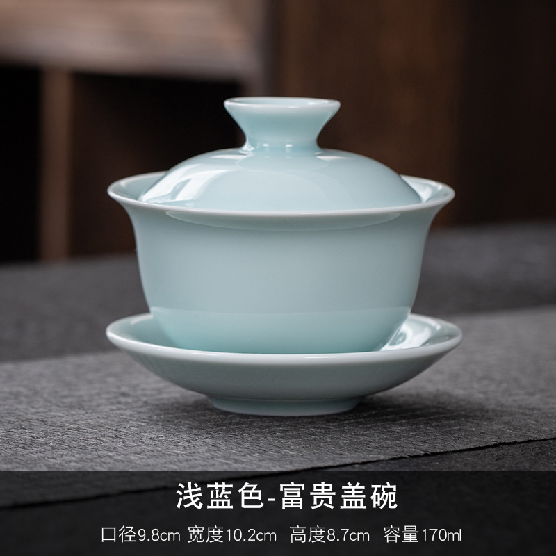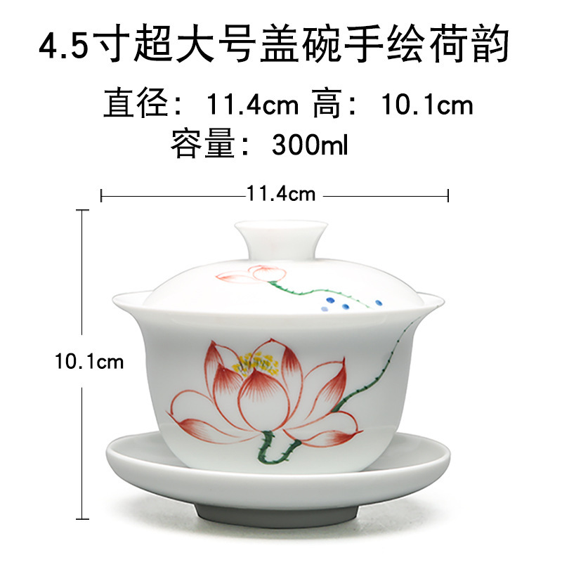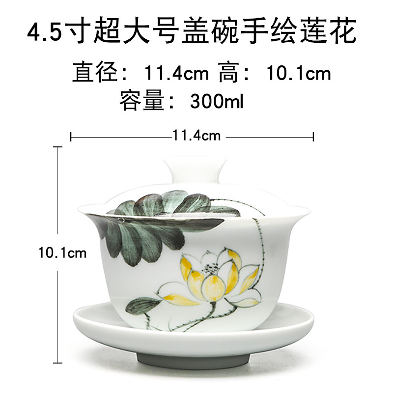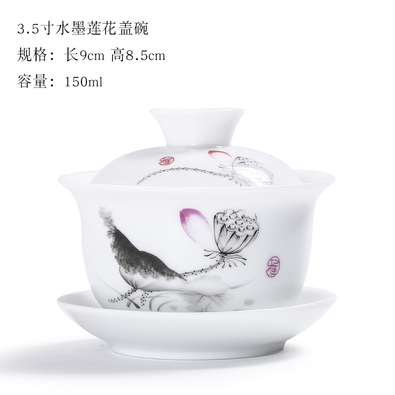 Gaiwan Tea Cup Dehua 흰색 도자기 차 세트 큰 차 그릇 파란색과 흰색 도자기 세라믹 손으로 그린 쿵푸 싱글 3 인재 그릇스토어 가기
