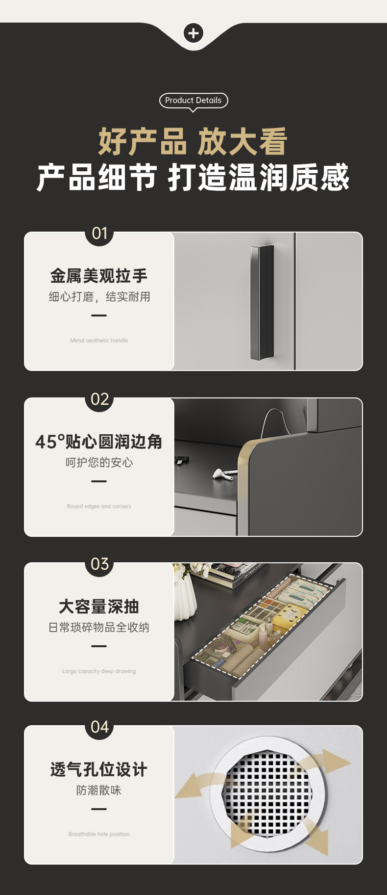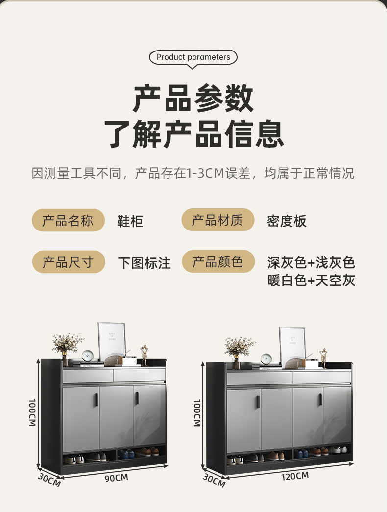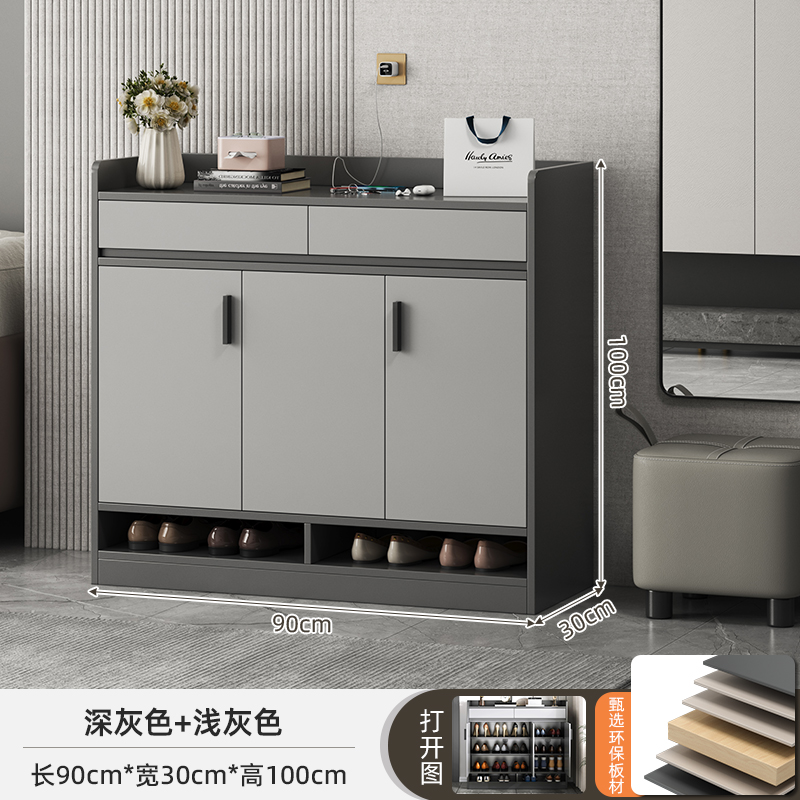 • [원목 생태보드 모델! 적극 추천하는 신제품❤️문 3개와 서랍 1개] 천진회색 + 윤희백색 80*32*100cm