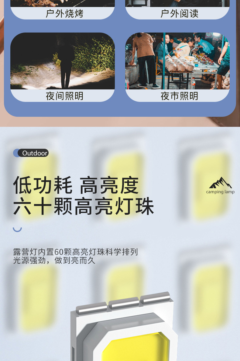 캠핑 조명 텐트 조명 야외 야외 긴 내구성 태양 슈퍼 밝은 야시장 스톨 정전 비상 조명