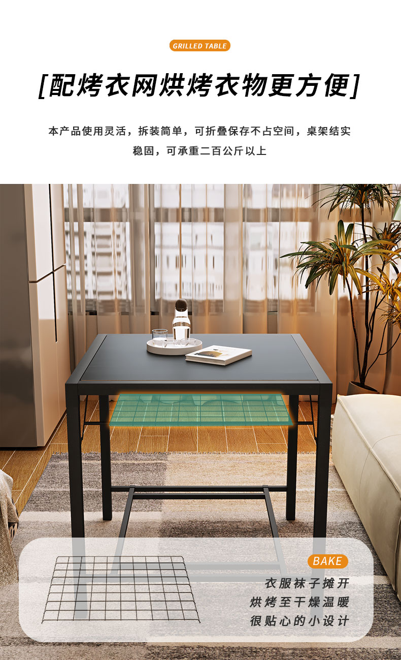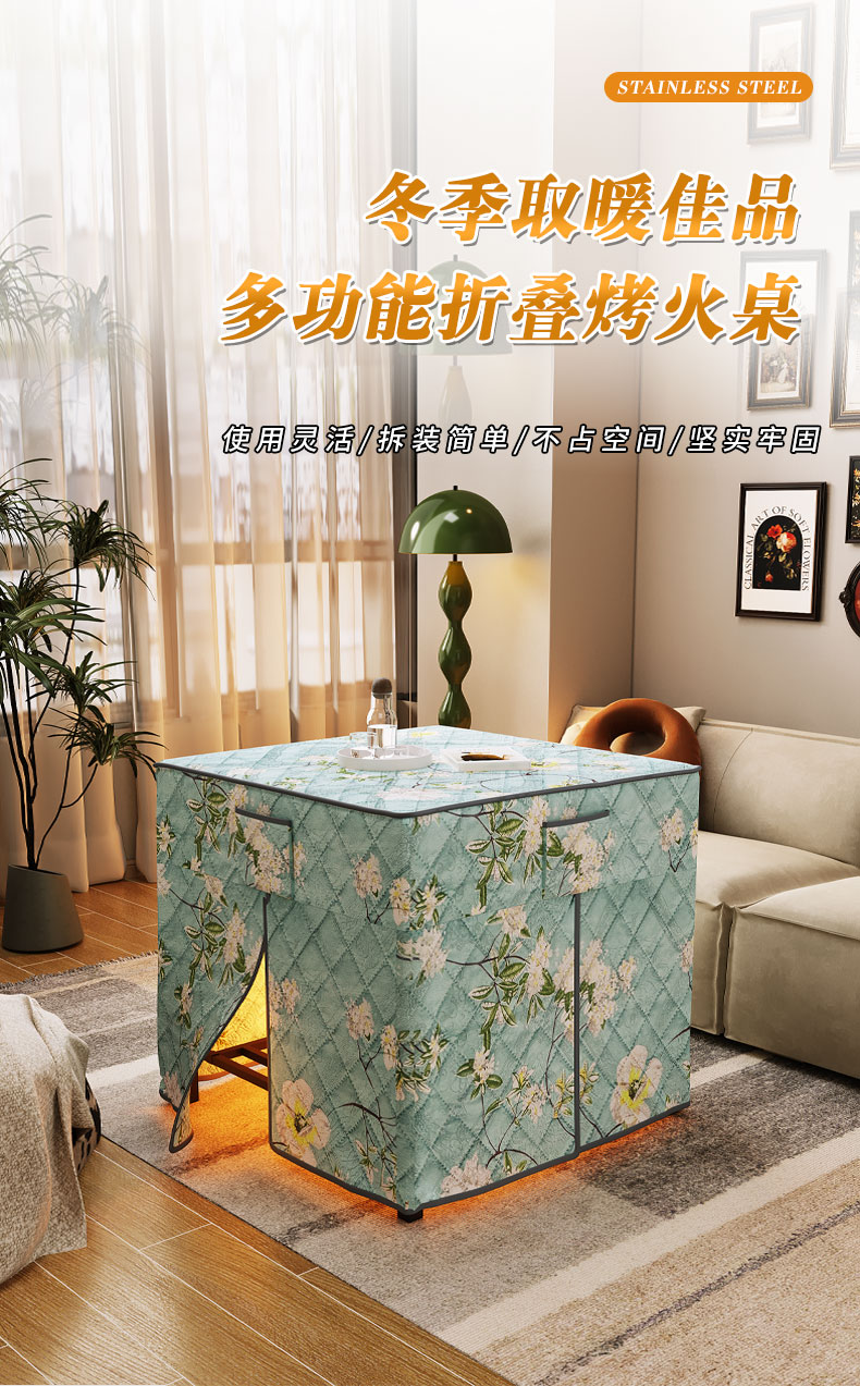 핫 테이블 가정용 2024 새로운 접이식 베이킹 파이어 랙 스퀘어 커피 테이블 겨울 다기능 난방 테이블