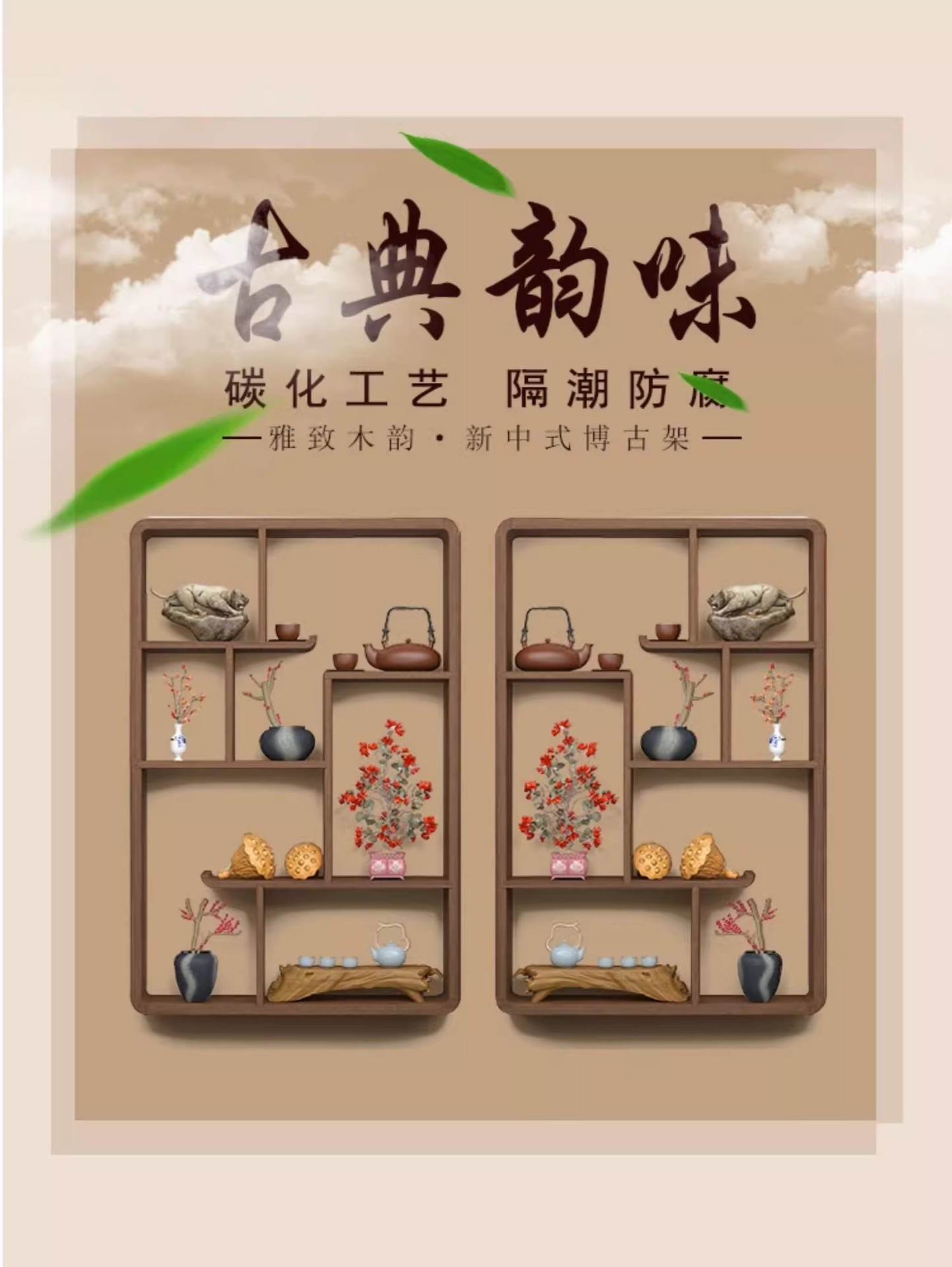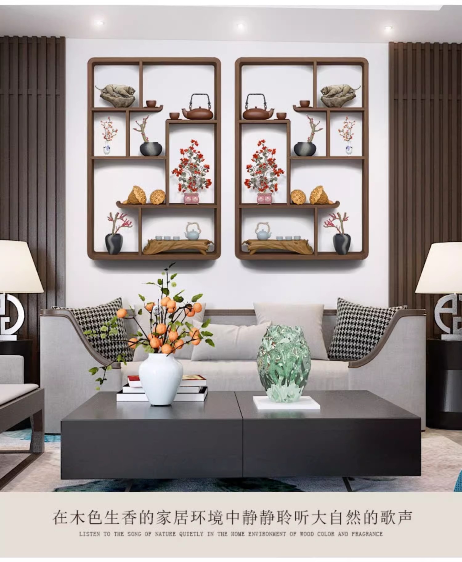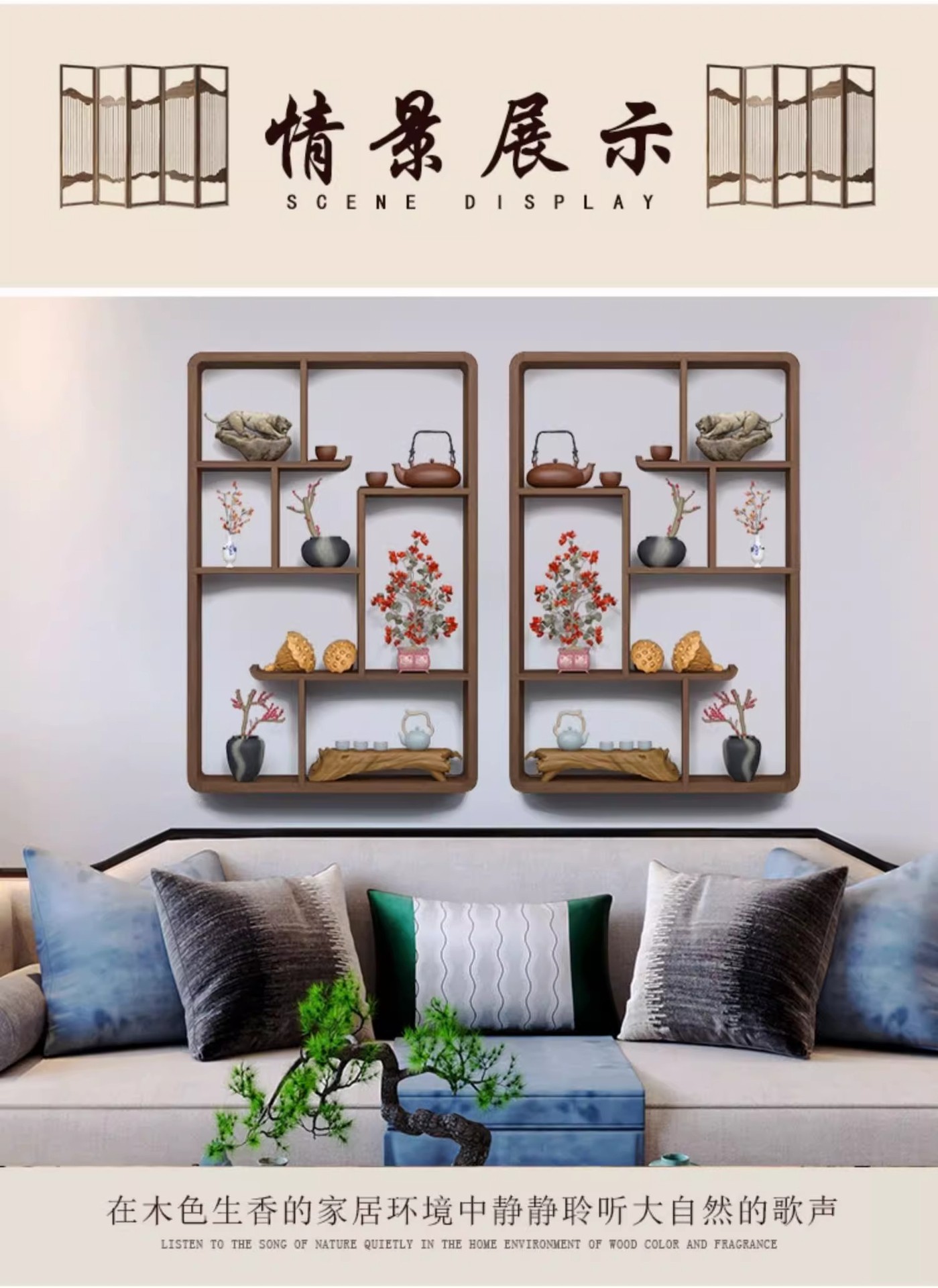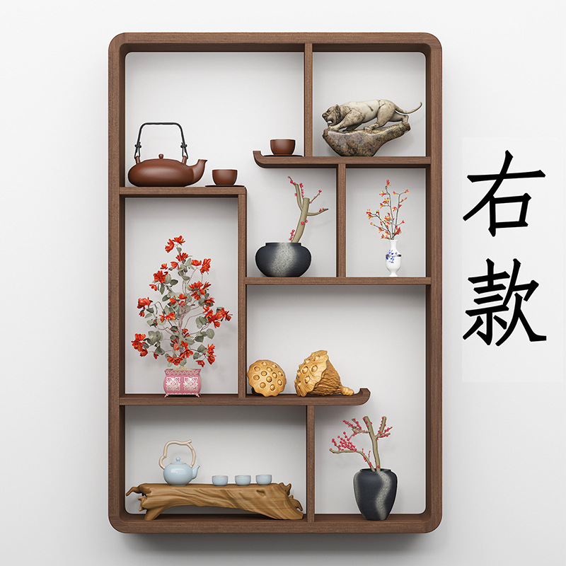 벽에 장착 된 작은 장식품 차 케이크 랙 책꽂이 선 스타일 솔리드 우드 새로운 중국 스타일의 골동품 랙 벽걸이 형 스토리지 랙스토어 가기