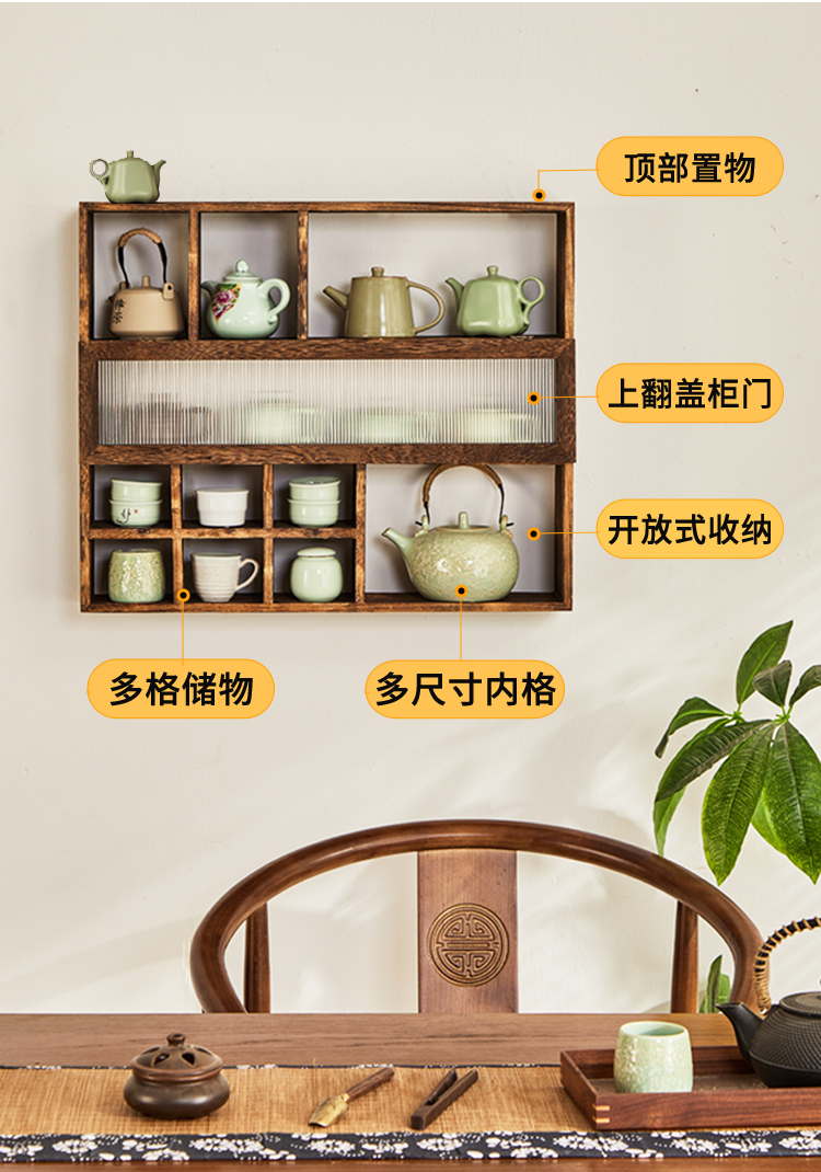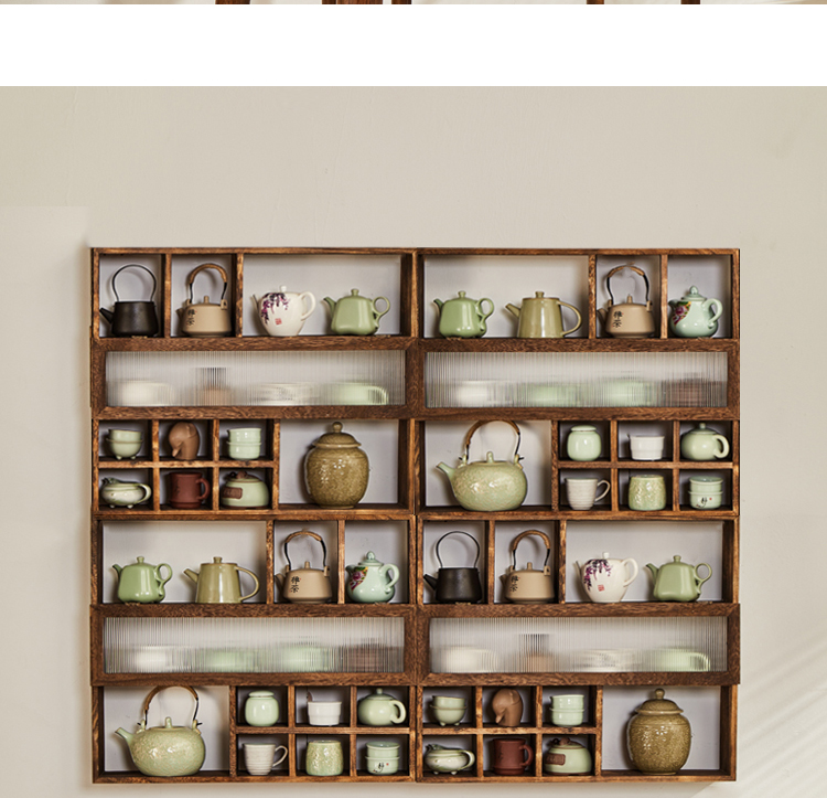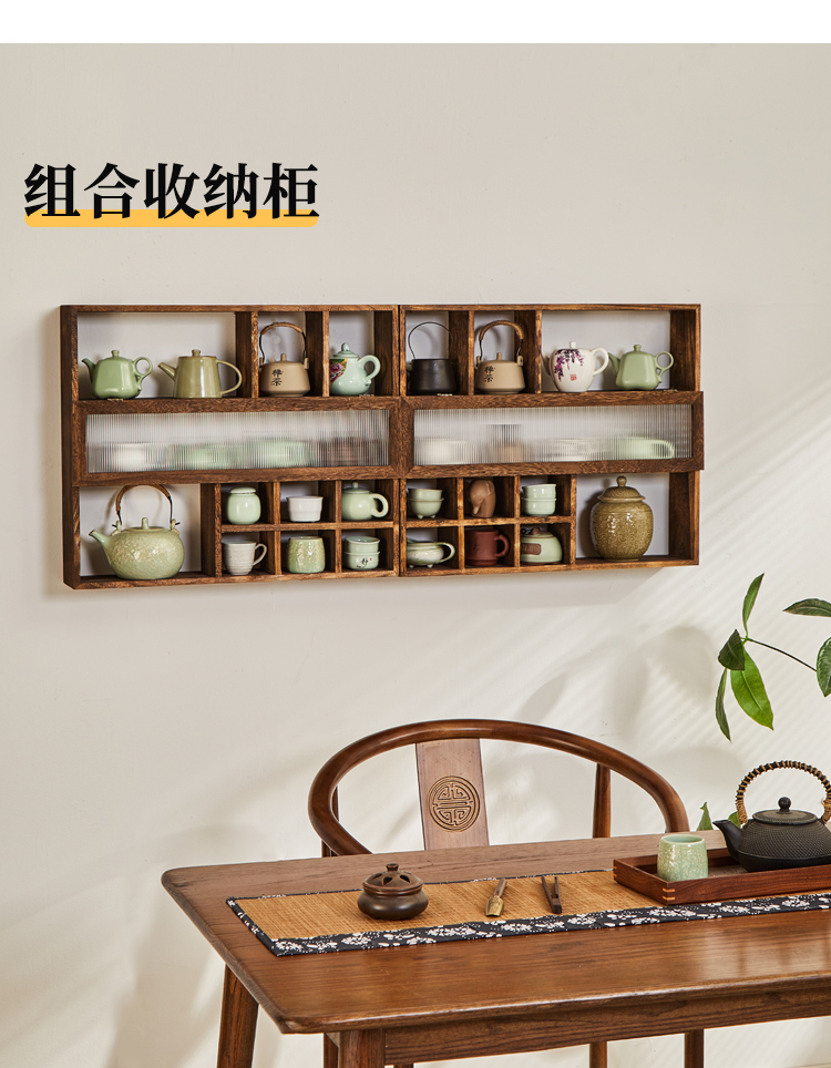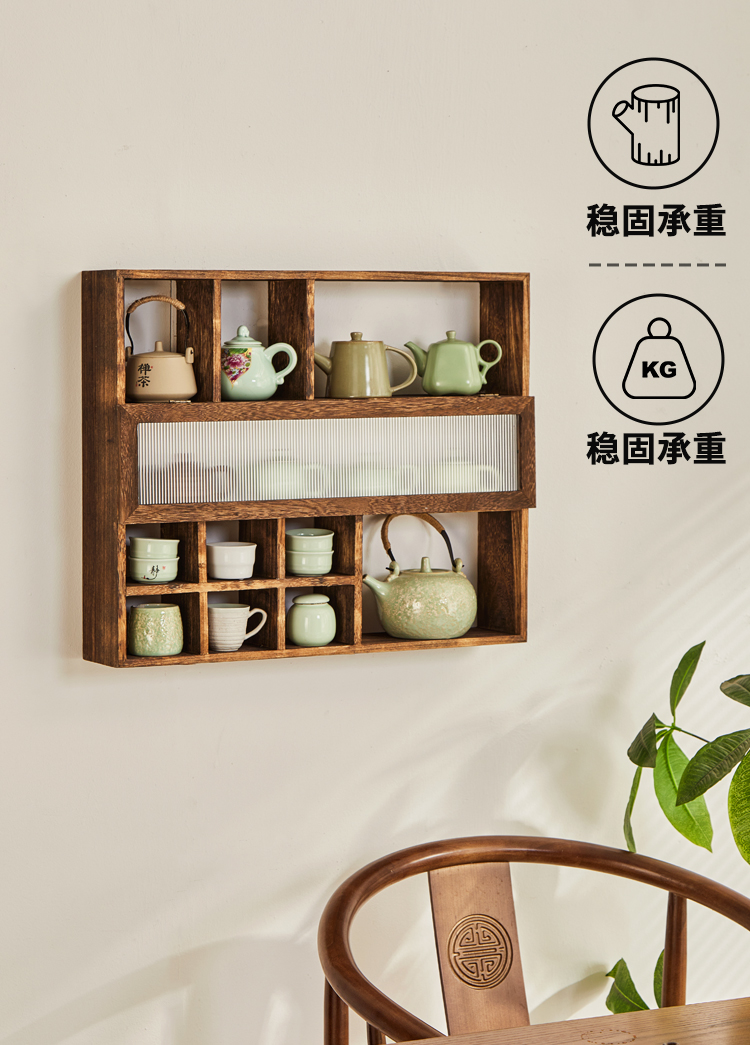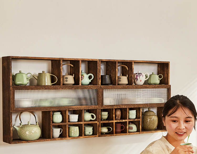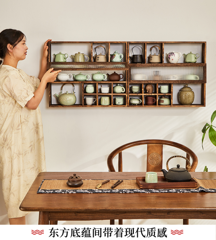 새로운 중국 스타일의 솔리드 우드 골동품 랙 벽걸이 Duobao Pavilion 티룸 마스터 컵 랙 티 세트 티 컵 스토리지 랙 티 캐비닛