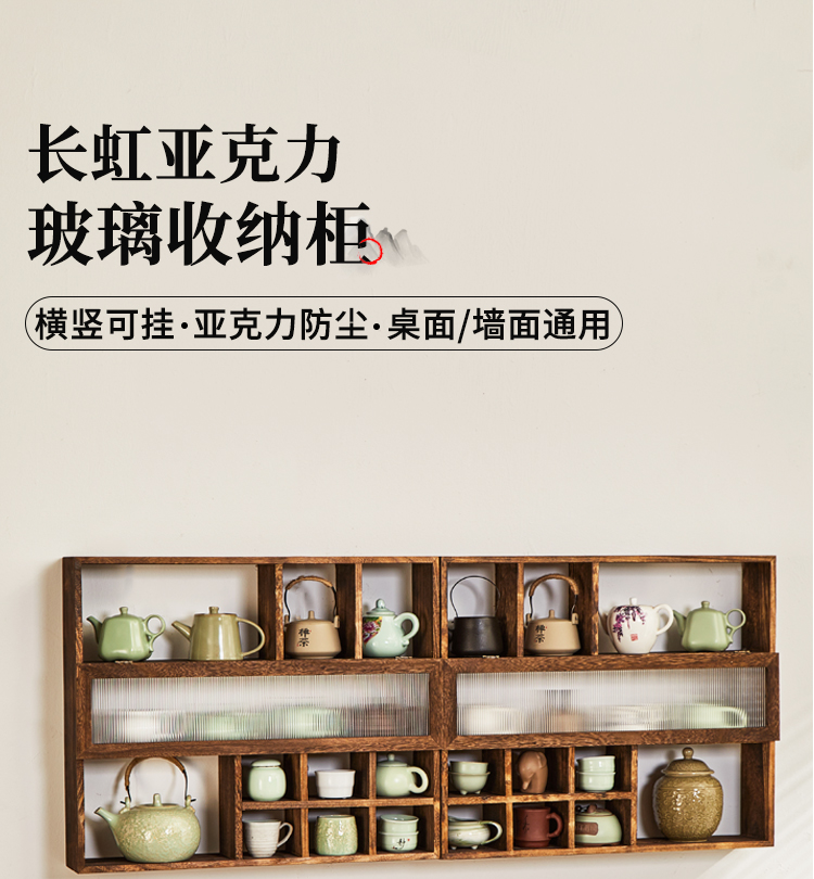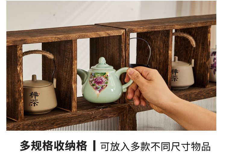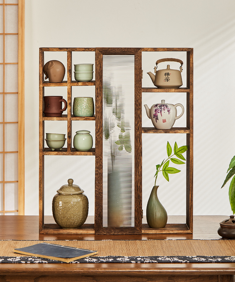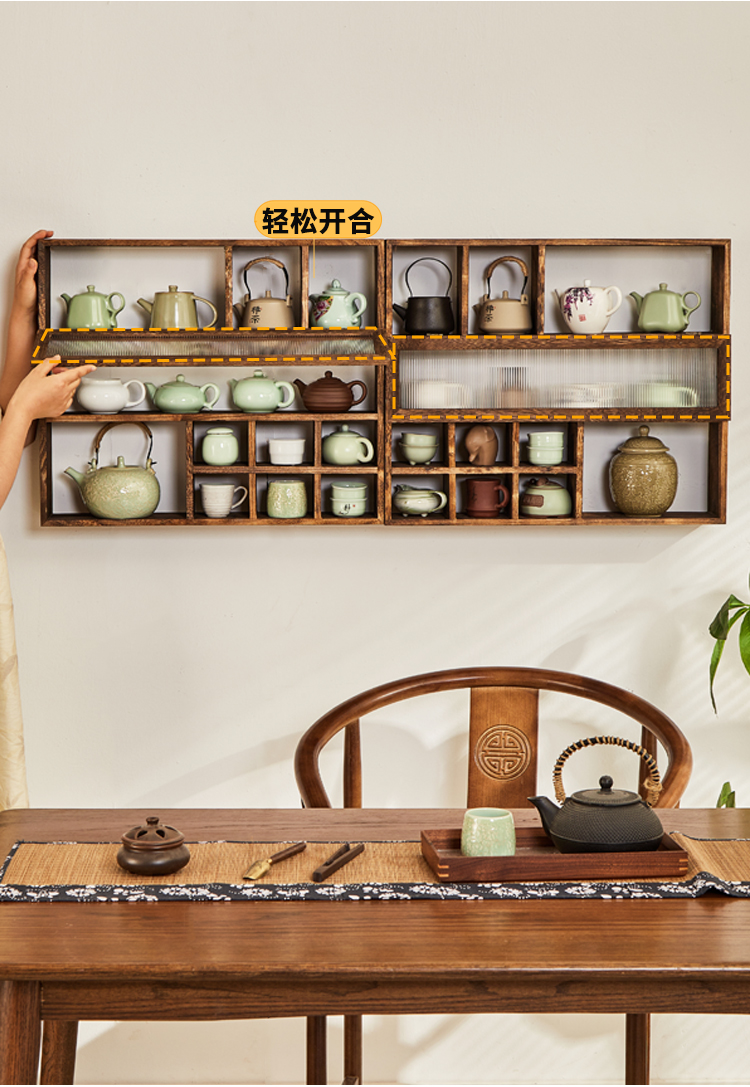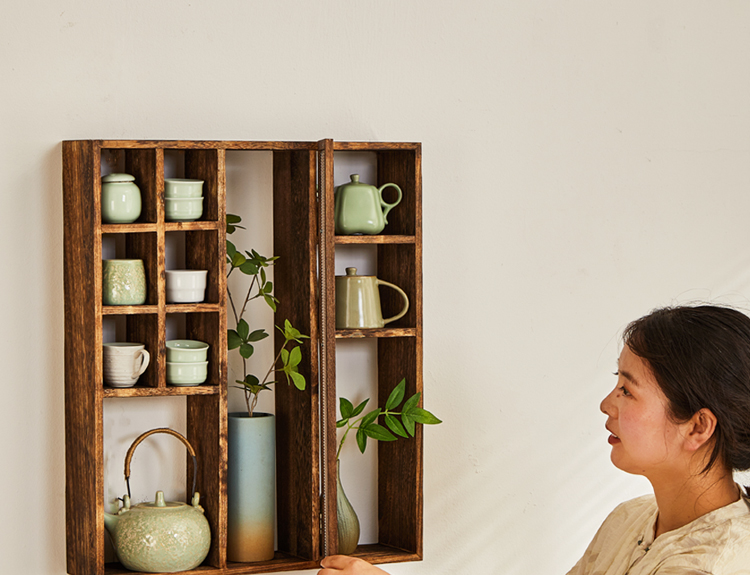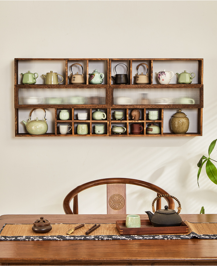새로운 중국 스타일의 솔리드 우드 골동품 랙 벽걸이 Duobao Pavilion 티룸 마스터 컵 랙 티 세트 티 컵 스토리지 랙 티 캐비닛