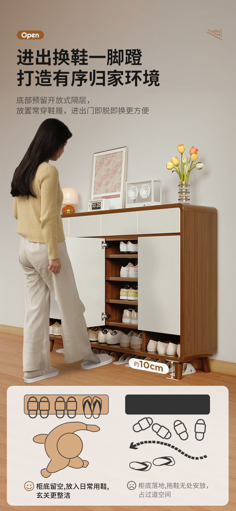 단단한 내각 저장 내각 통합 신발 랙 단단한 나무 문 입구 신발 내각 새로운 나무 색깔 실내 2024 가정 폭발