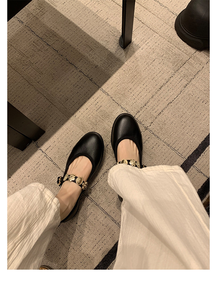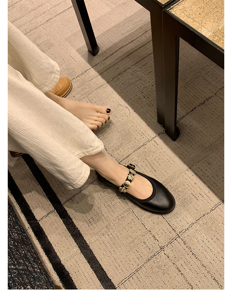 양가죽 버전 ~ 작은 금 버클 가죽 부드러운 바닥 메리 제인 신발 여성의 새로운 발레 스타일 평면 신발 작은 가죽 신발