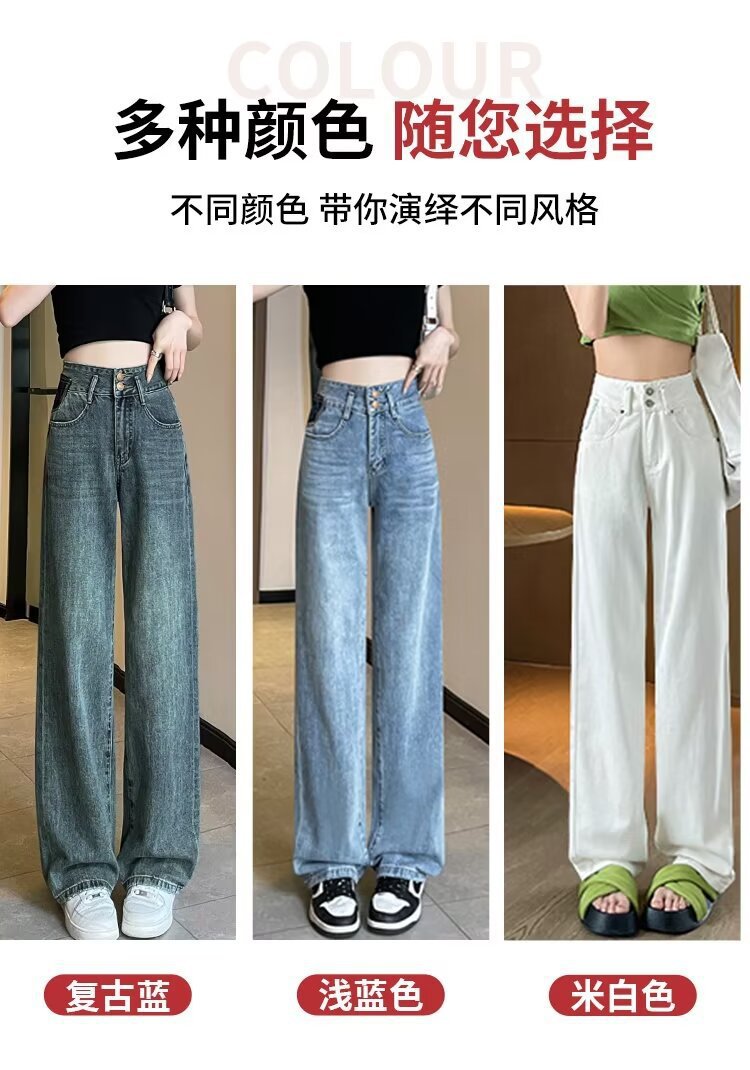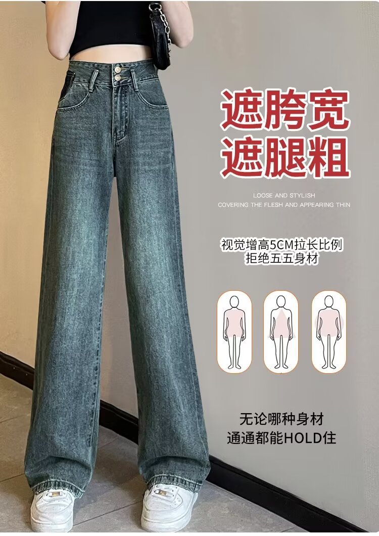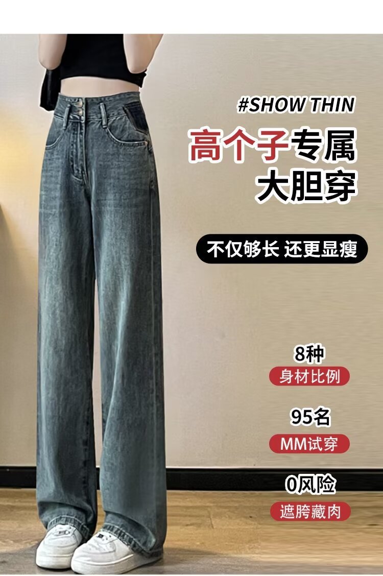 2024 새로운 좁은 넓은 다리 청바지 여성의 봄과 여름 새로운 대비 컬러 높은 허리 디자인 감각 느슨한 스트레이트 바지