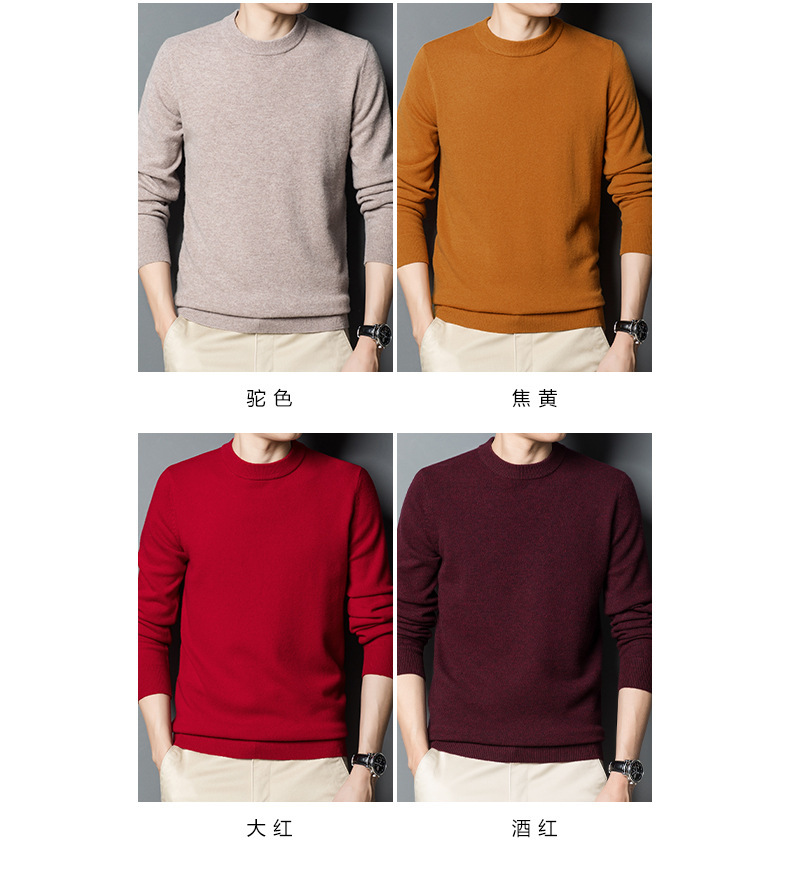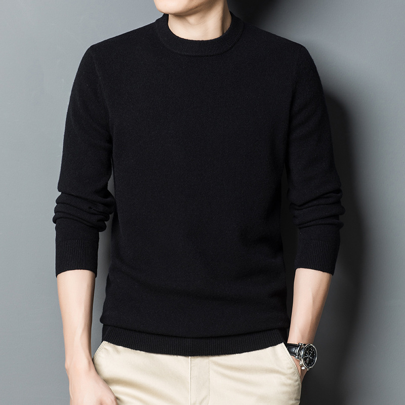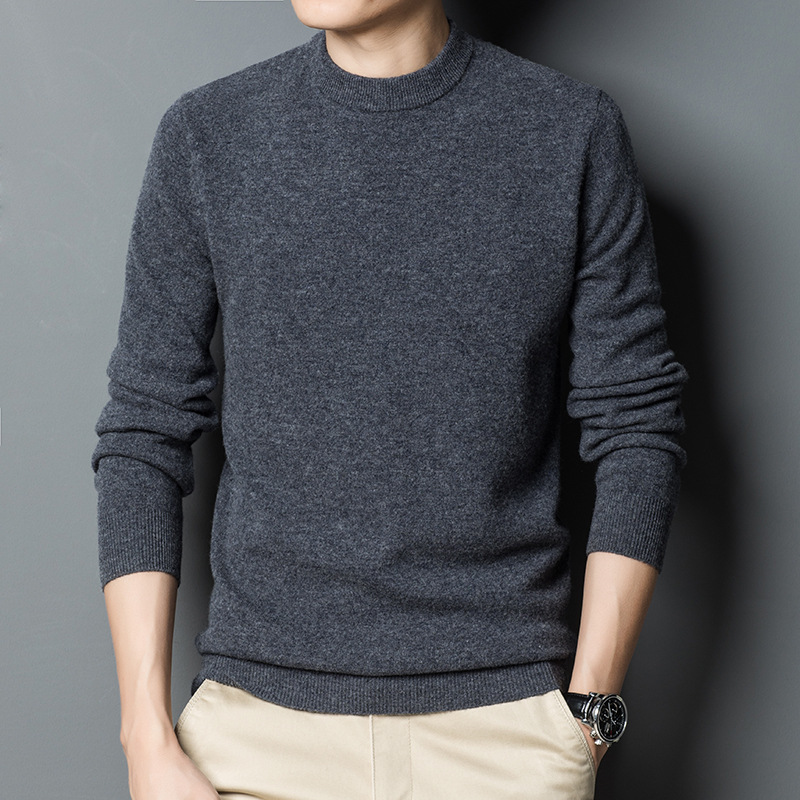 가을과 겨울을위한 남자의 단색 두꺼운 중년 및 젊은 남자의 둥근 목 따뜻한 캐주얼 베이스 스웨터스토어 가기