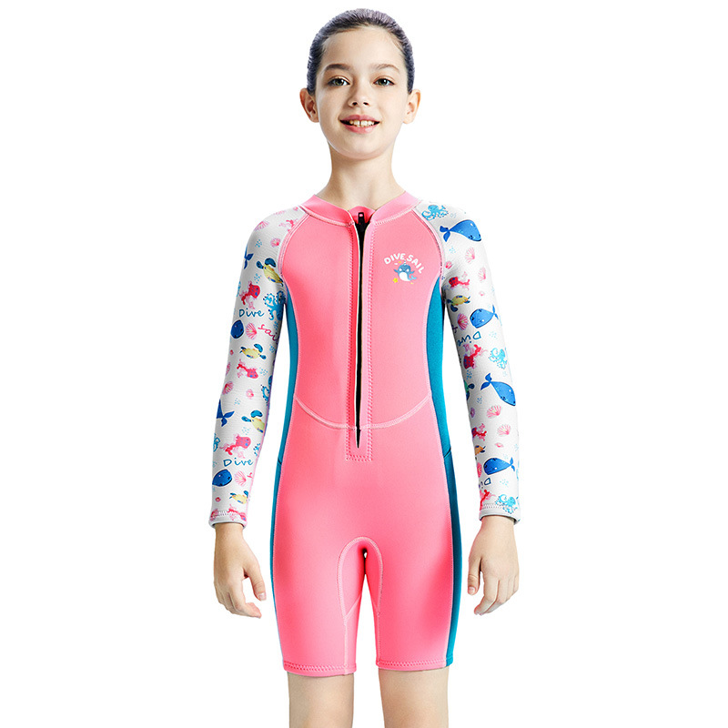 새로운 어린이 다이빙 세트 2.5MM 긴 소매 반바지 여자 수영복 방한 따뜻한 서핑 다이빙 어머니 세트