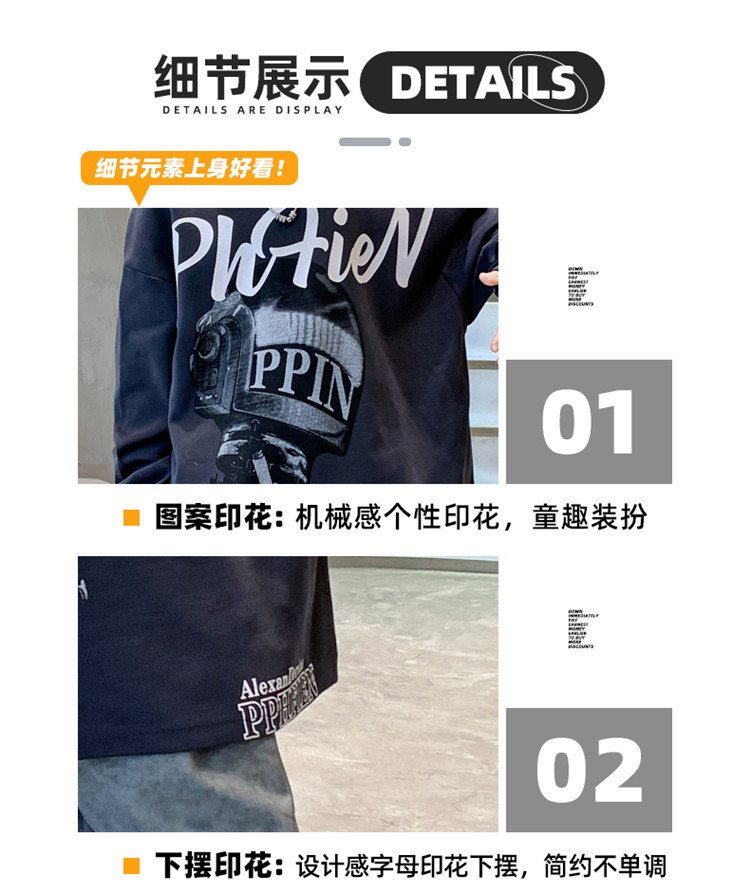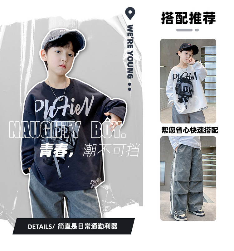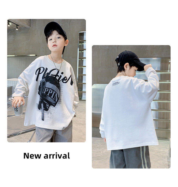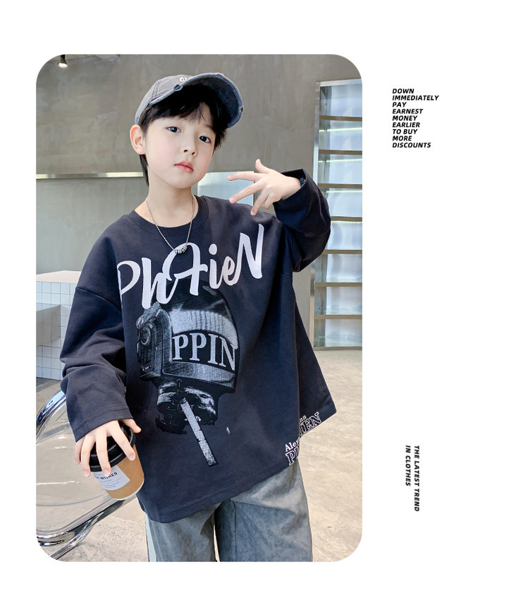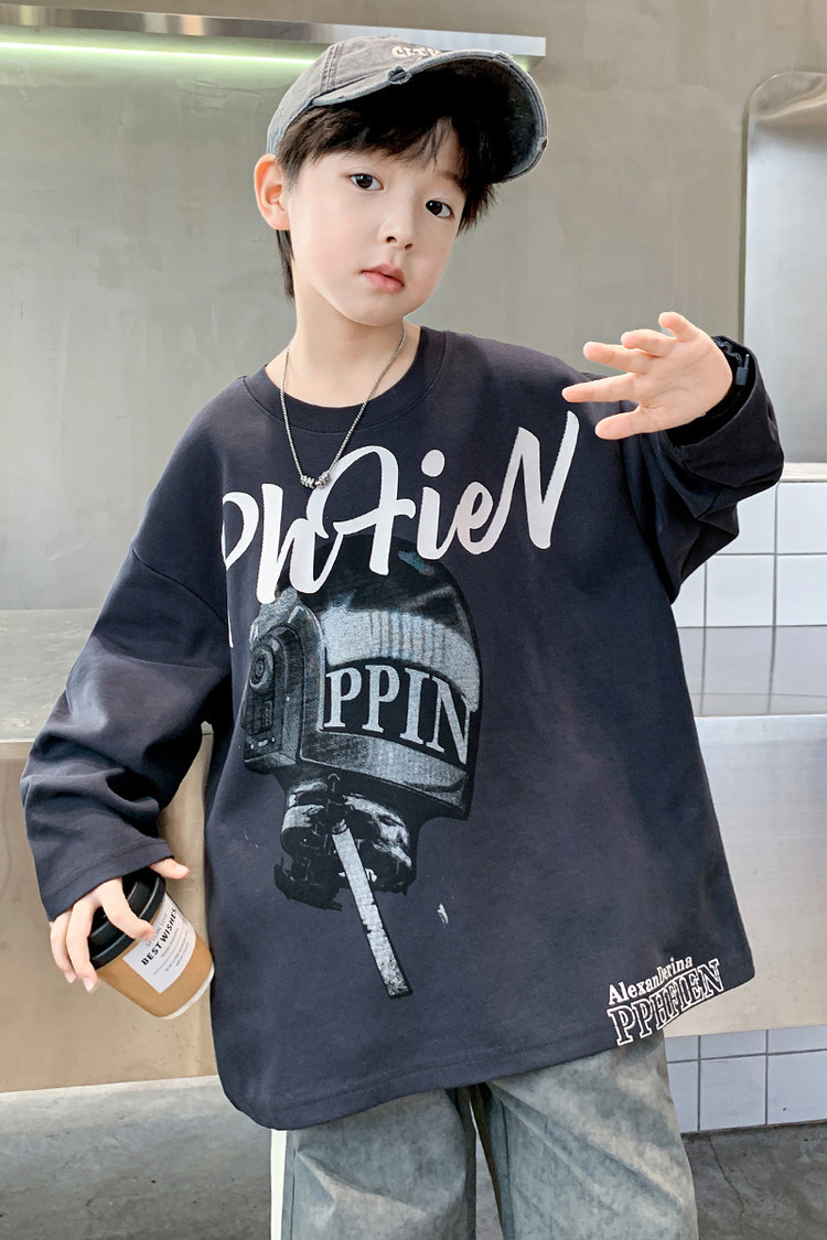 한국 트렌디 한 어린이 티셔츠 유행 봄과 가을 소년의 둥근 목 긴팔 독특한 힙합 스포츠 느슨한 올매치 탑스토어 가기