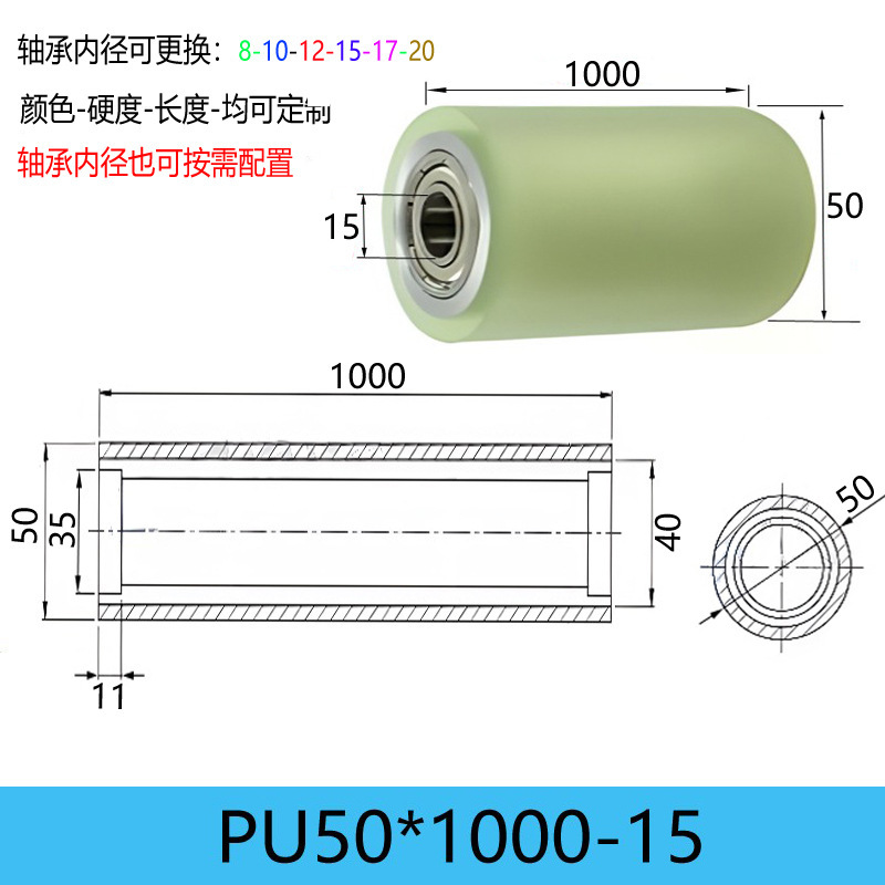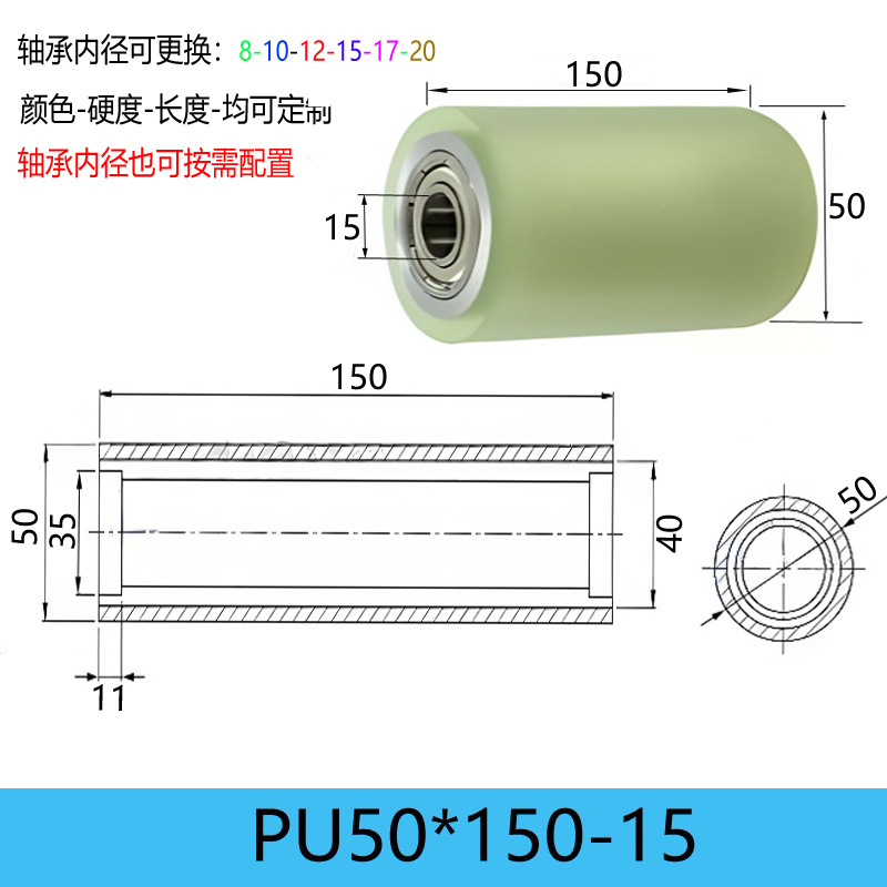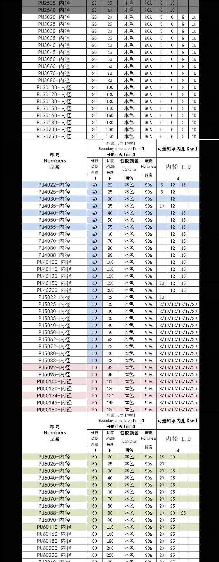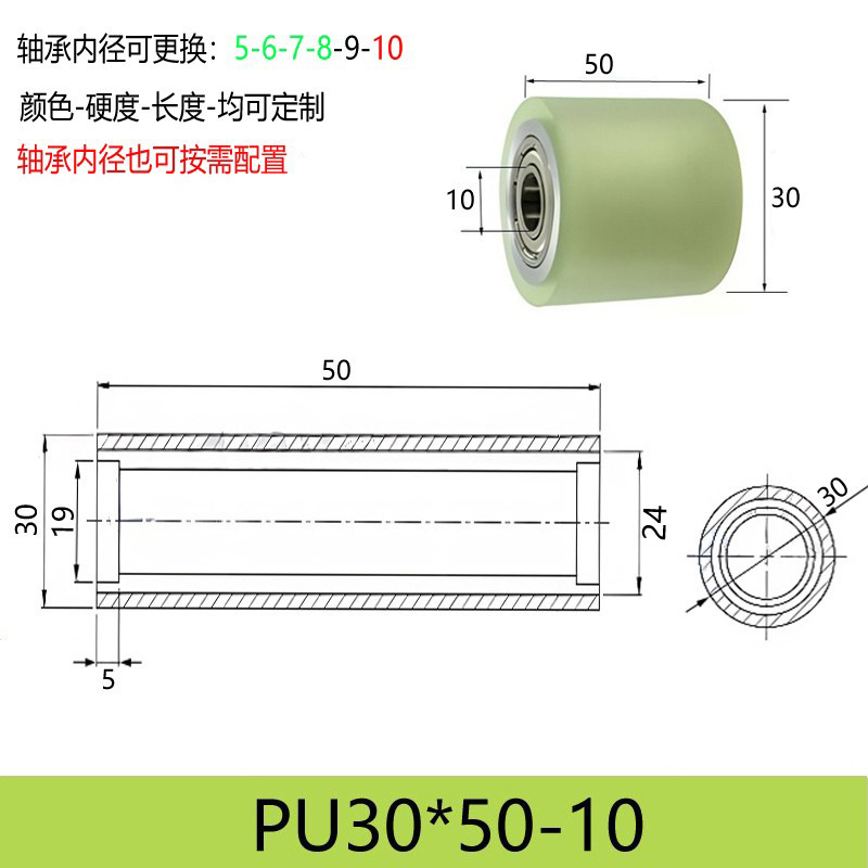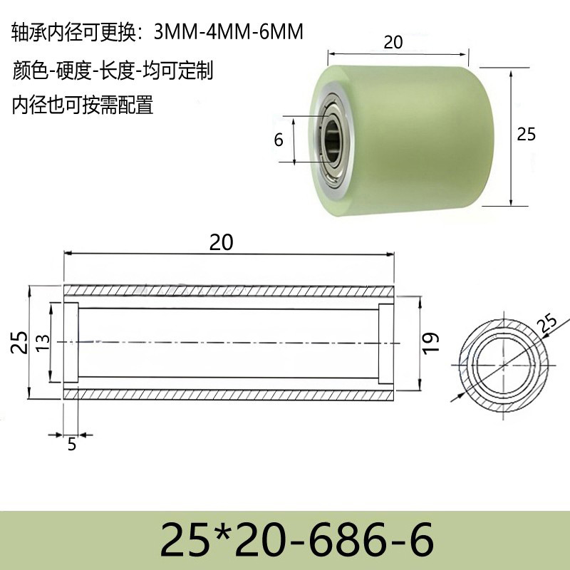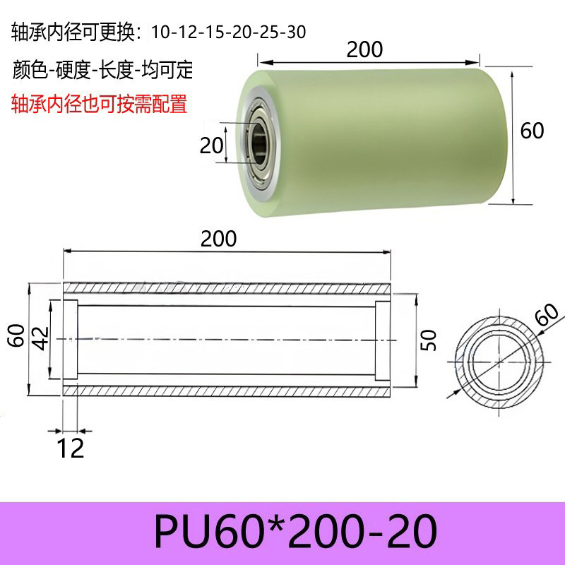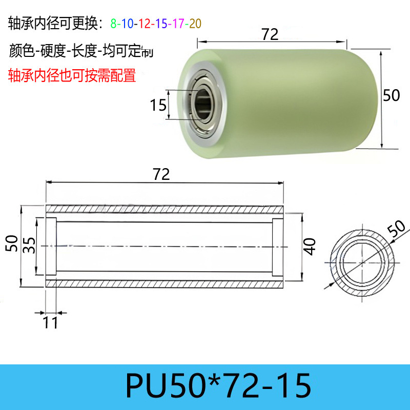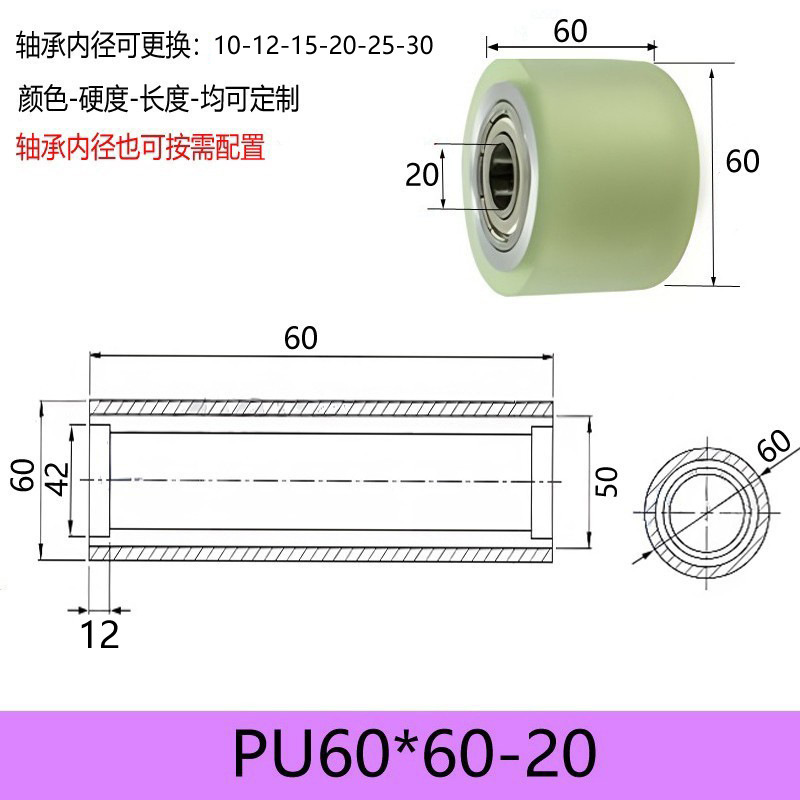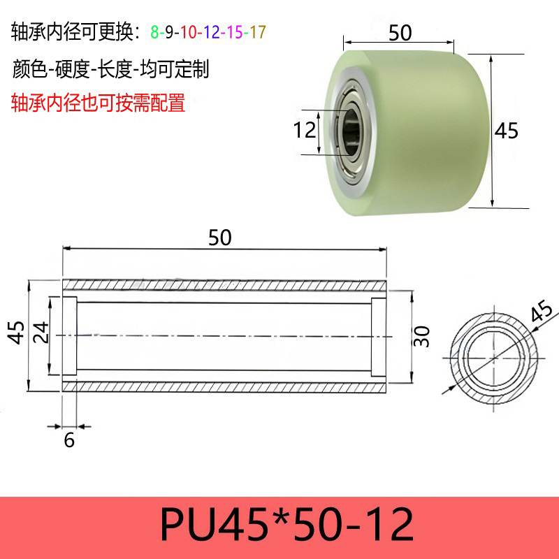 재고 폴리우레탄 고무 코팅 롤러 이중 베어링 내마모성 고무 무동력 롤러 실리콘 휠 컨베이어 벨트 PU 고무 롤러