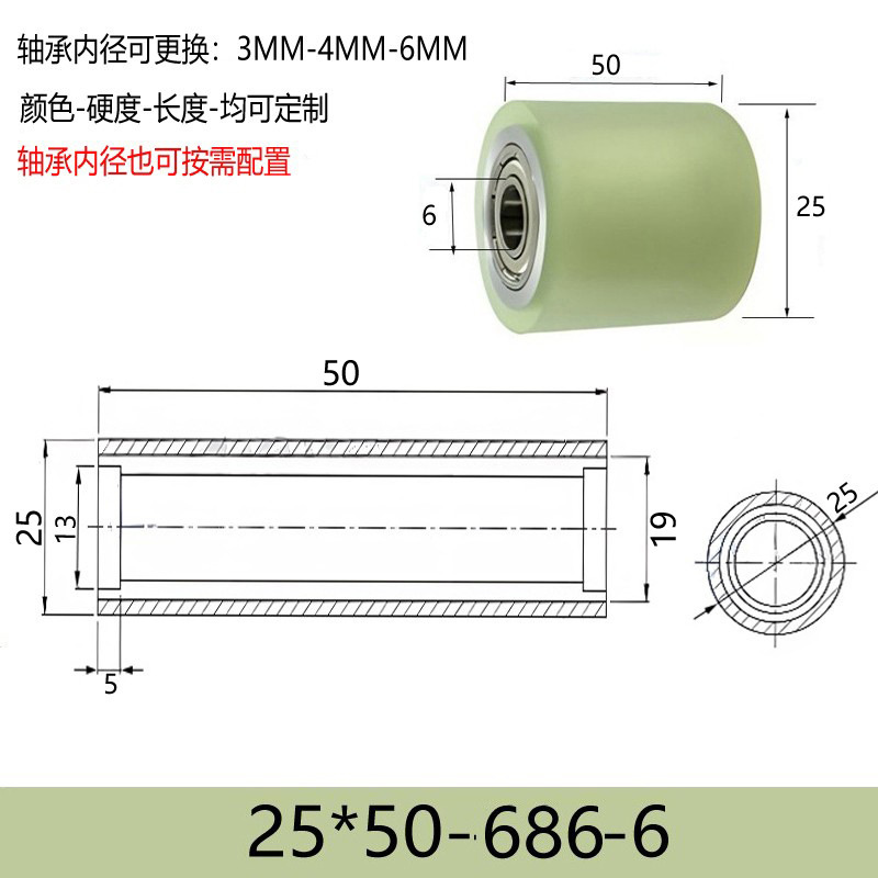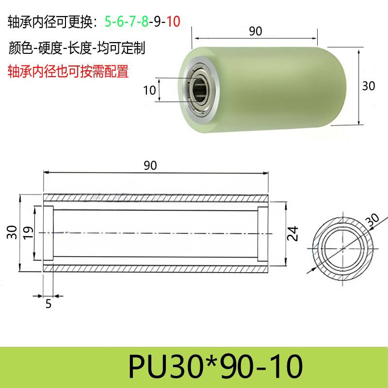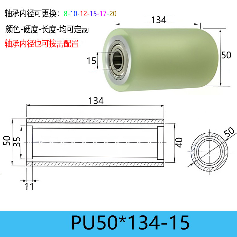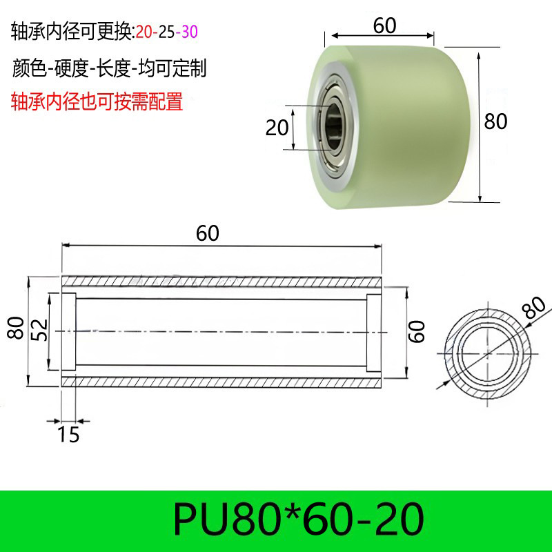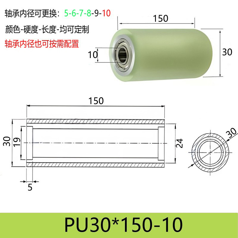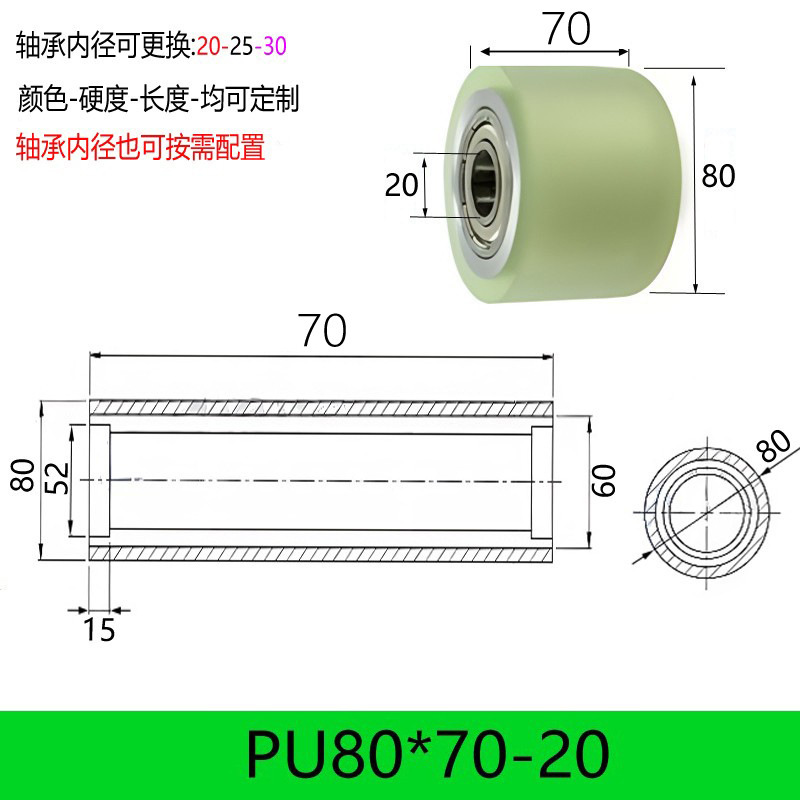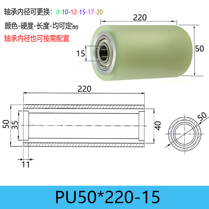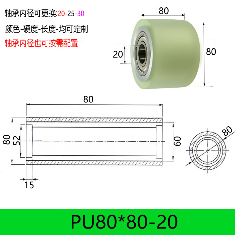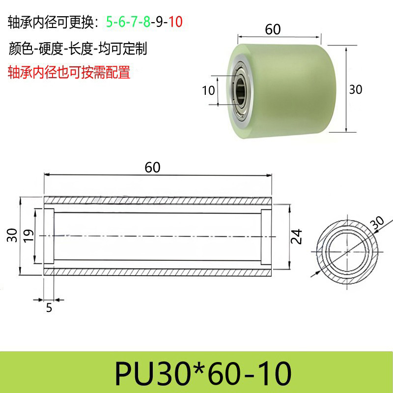 재고 폴리우레탄 고무 코팅 롤러 이중 베어링 내마모성 고무 무동력 롤러 실리콘 휠 컨베이어 벨트 PU 고무 롤러