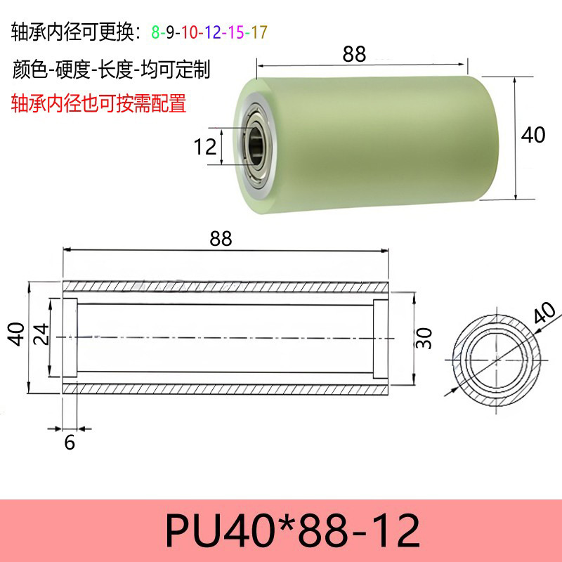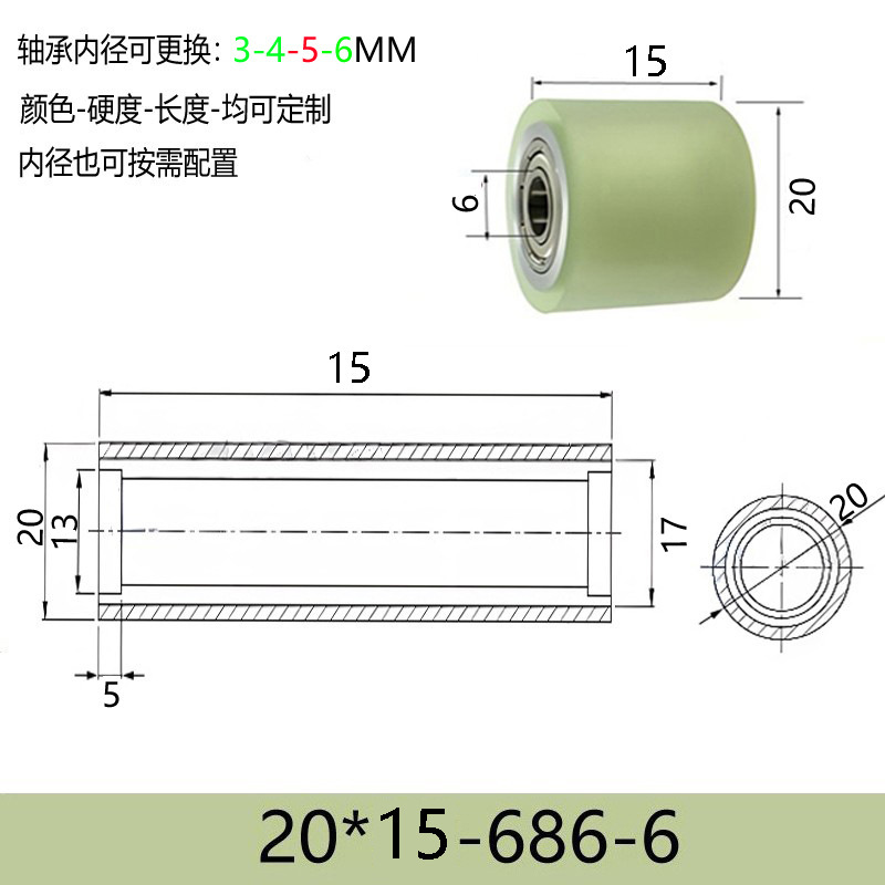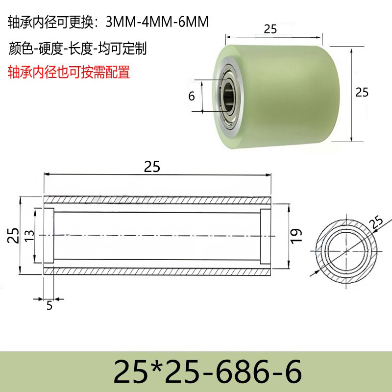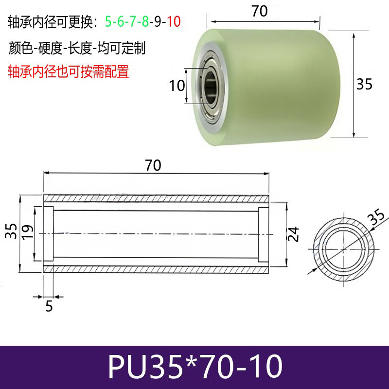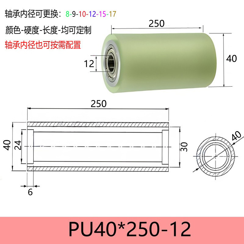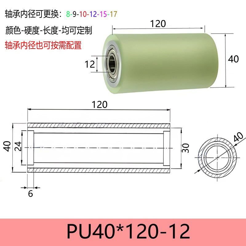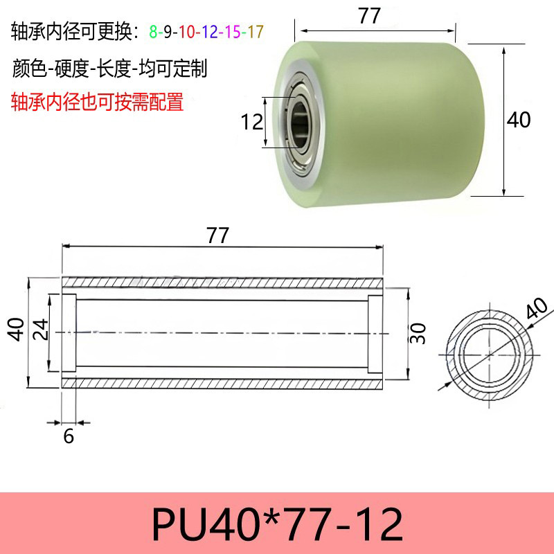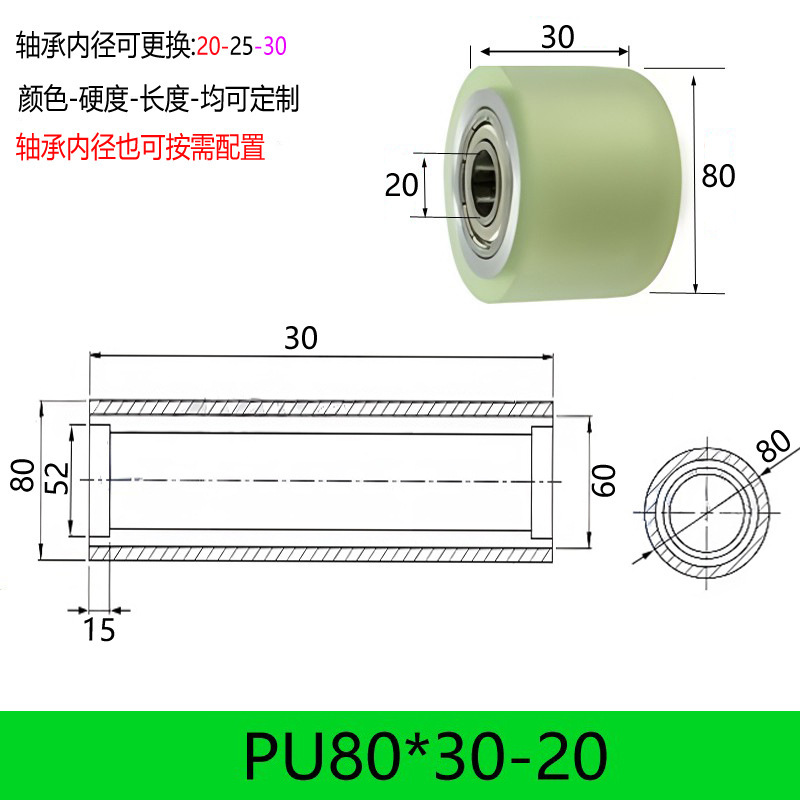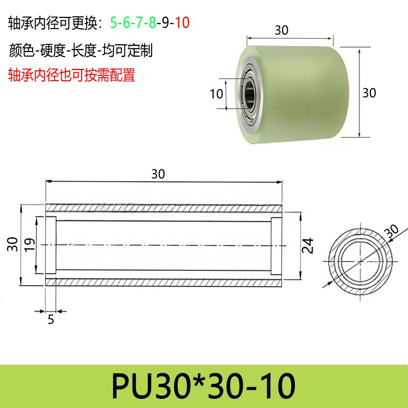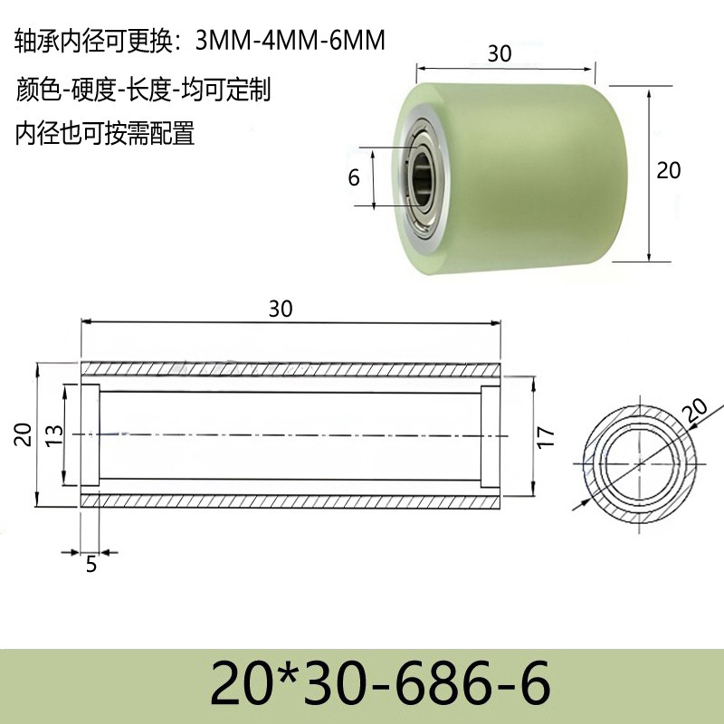 재고 폴리우레탄 고무 코팅 롤러 이중 베어링 내마모성 고무 무동력 롤러 실리콘 휠 컨베이어 벨트 PU 고무 롤러