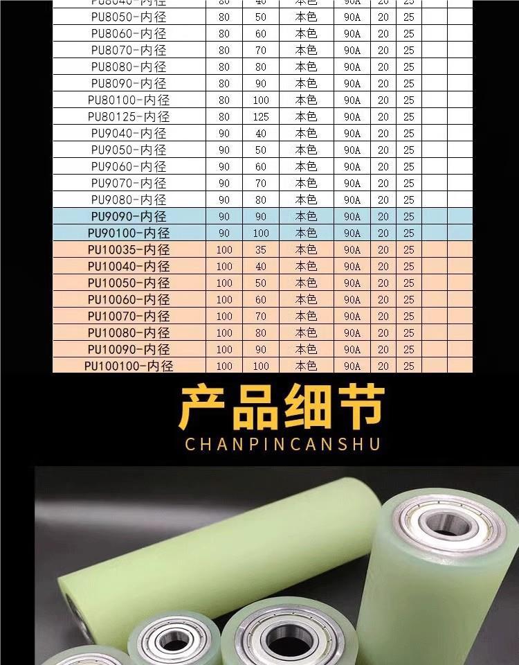 재고 폴리우레탄 고무 코팅 롤러 이중 베어링 내마모성 고무 무동력 롤러 실리콘 휠 컨베이어 벨트 PU 고무 롤러스토어 가기