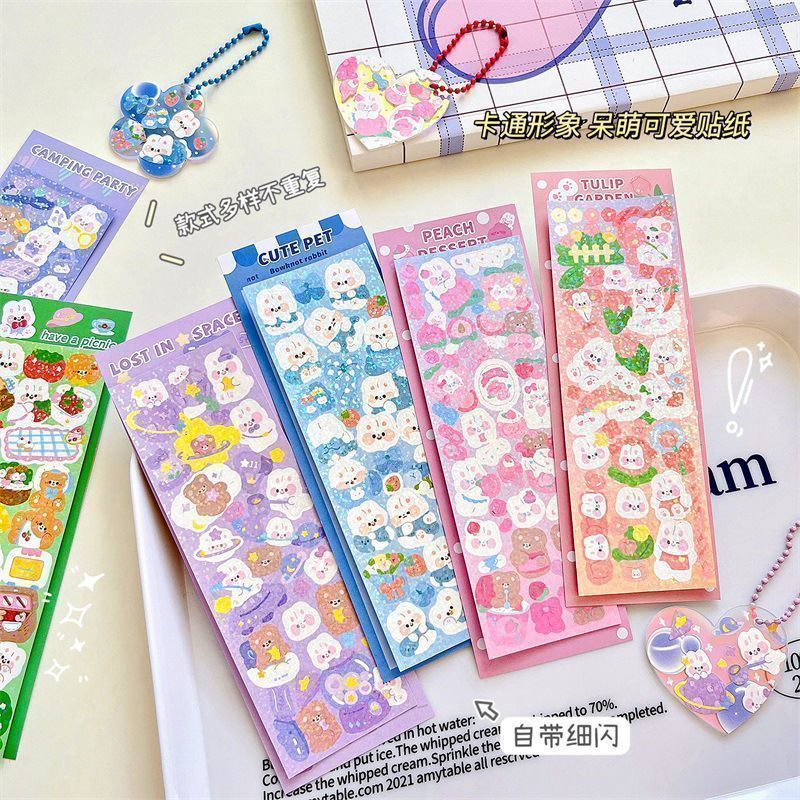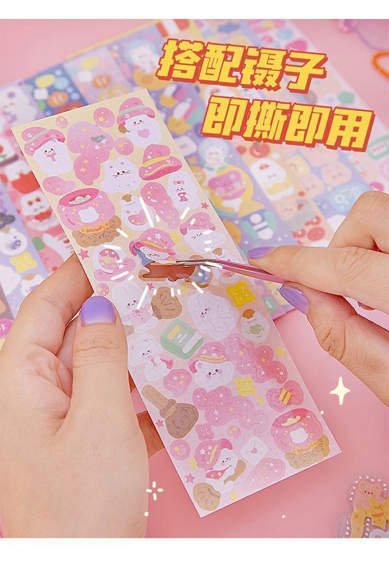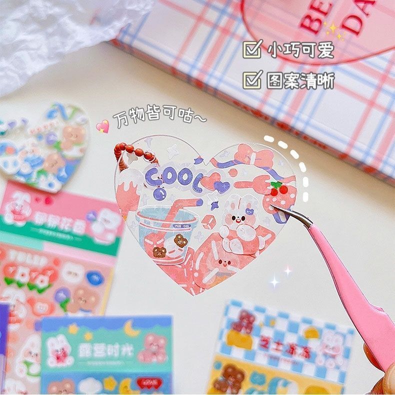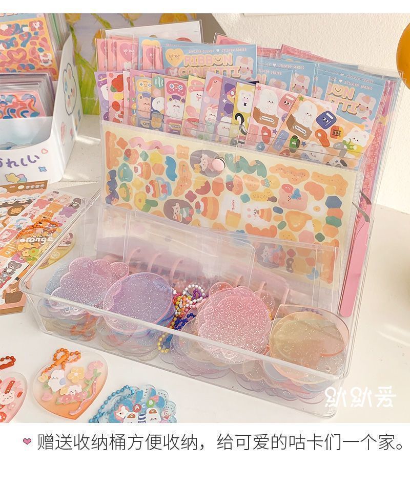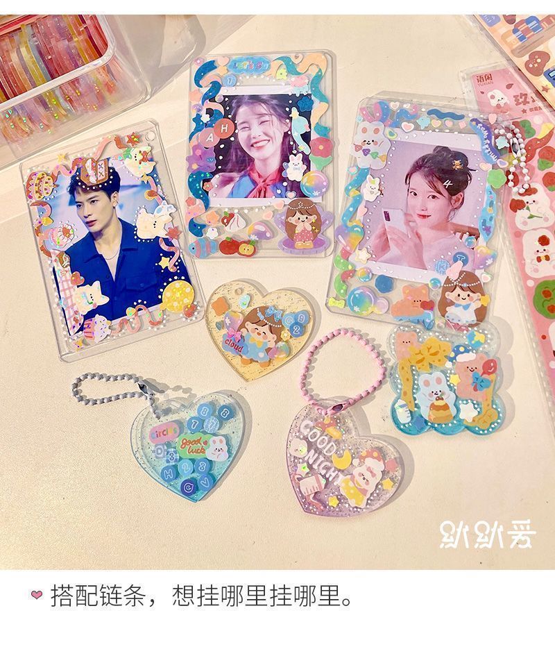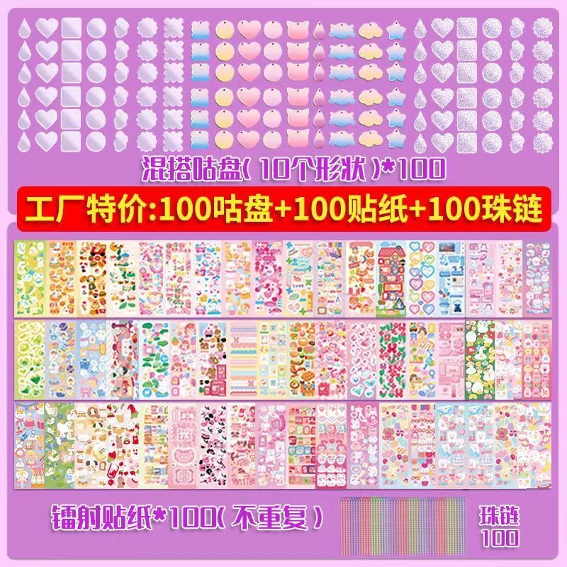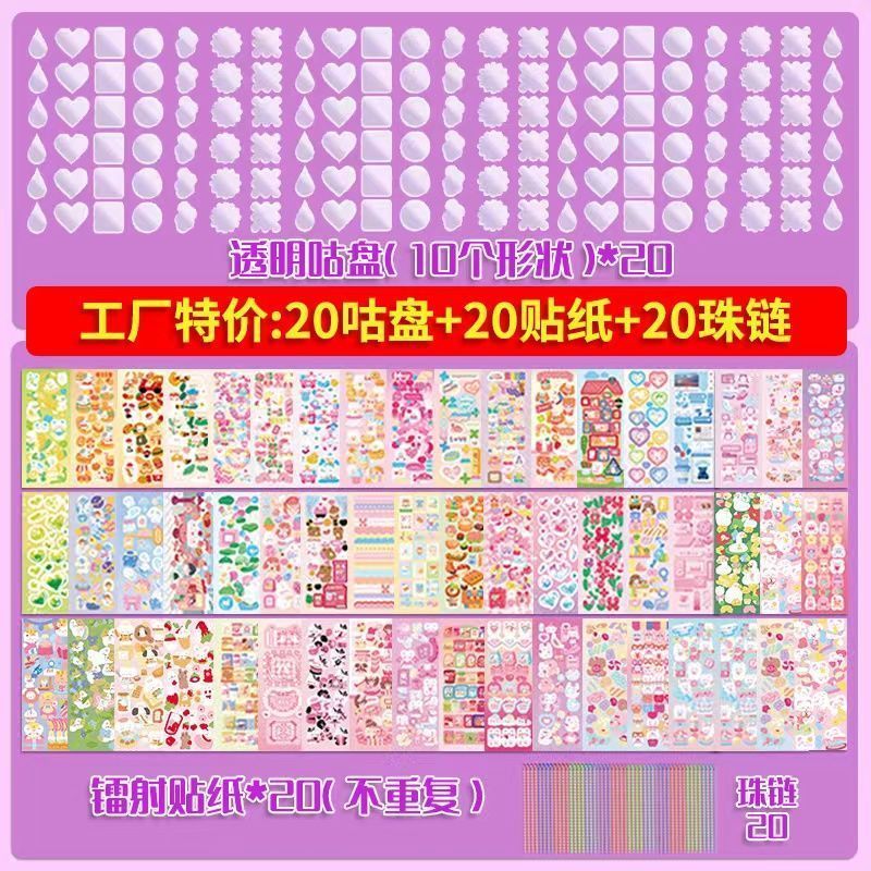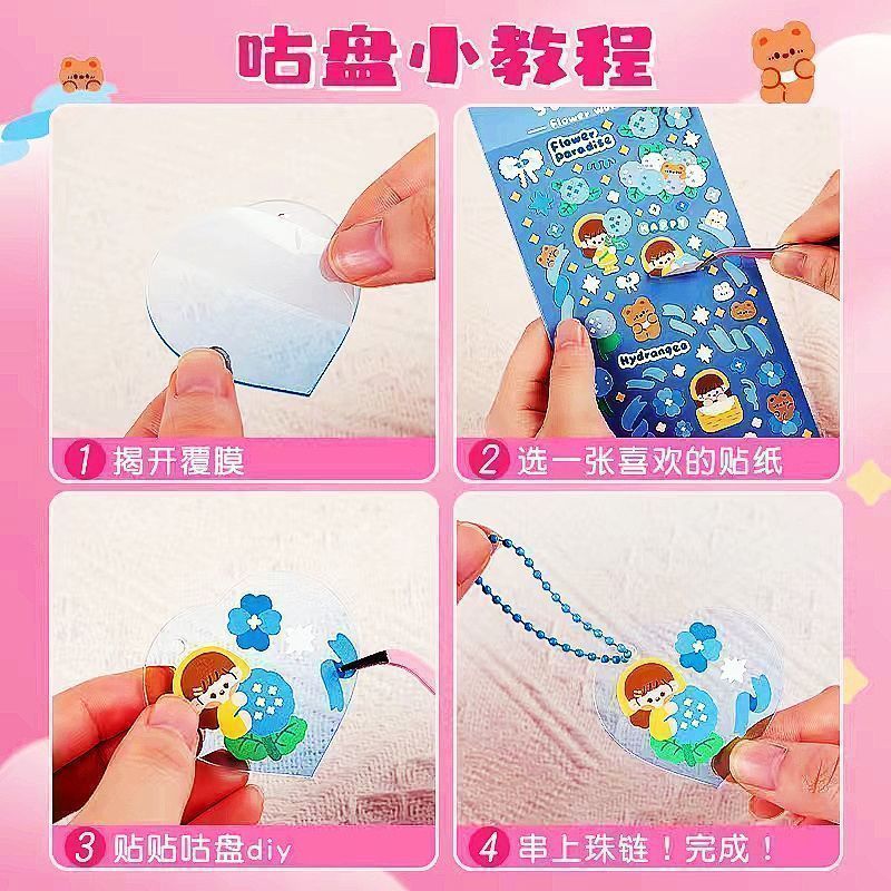 구척 50 100 스티커 세트 아크릴 손 계정 작은 디스크 그라디언트 투명 밝은 파우더 DIY 키 체인
