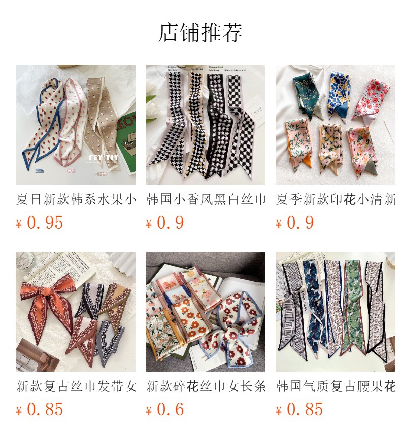 한국 새로운 실크 스카프 Ins 캐슈 플라워 리본 여성 올 매치 장식 스카프 넥타이 및 랩 헤어 긴 양면 스카프스토어 가기