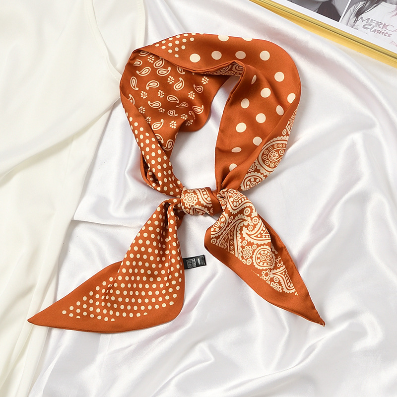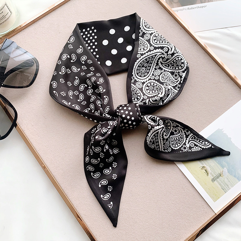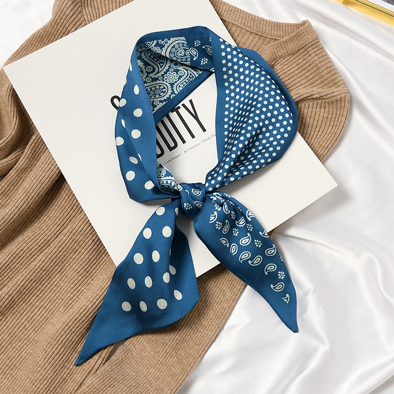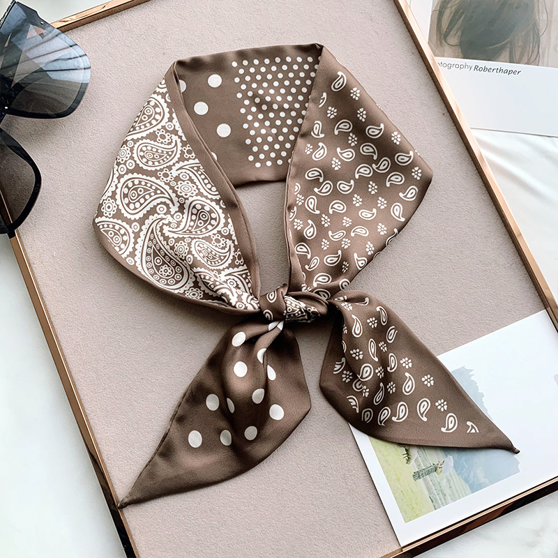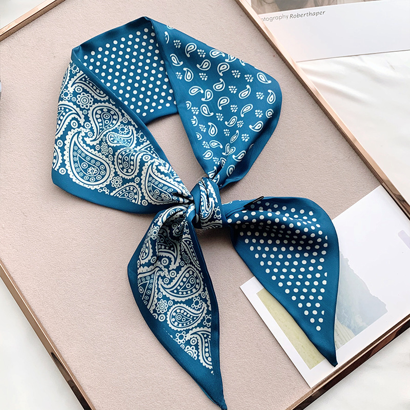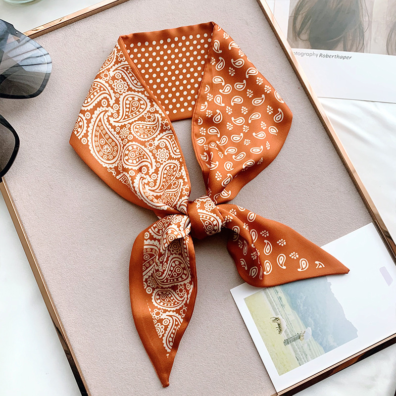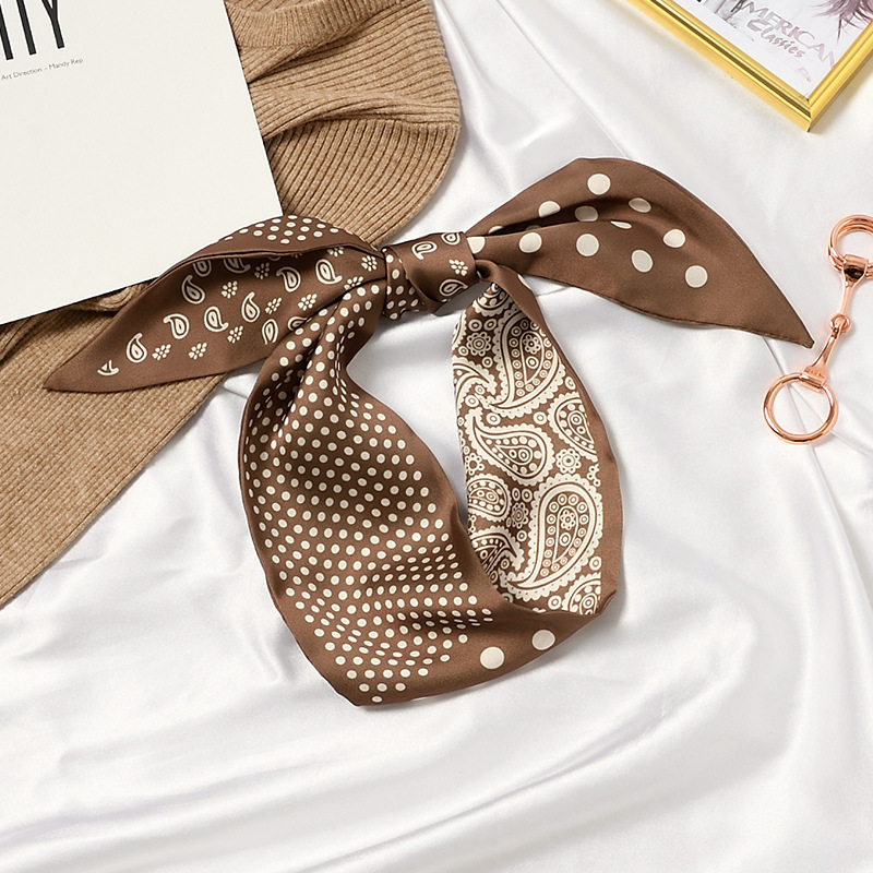 한국 새로운 실크 스카프 Ins 캐슈 플라워 리본 여성 올 매치 장식 스카프 넥타이 및 랩 헤어 긴 양면 스카프