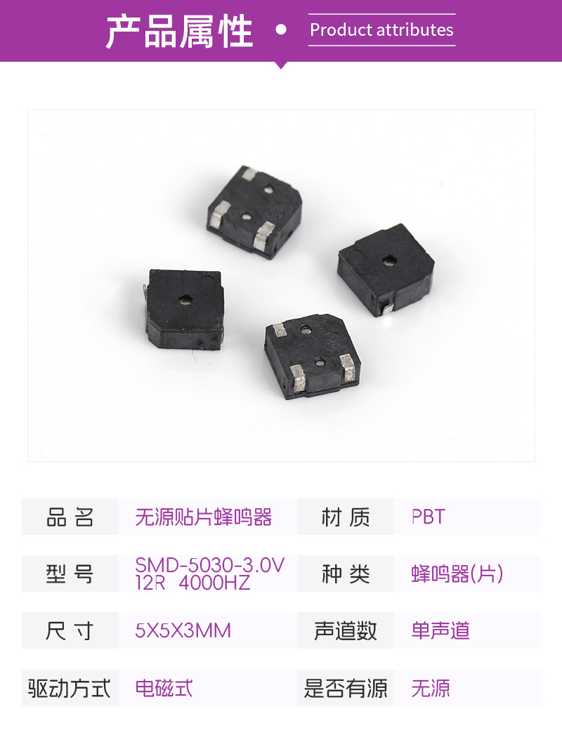 공장 도매 SMD5030 수동 전자기 12 옴 패치 버저 3V 4000HZ