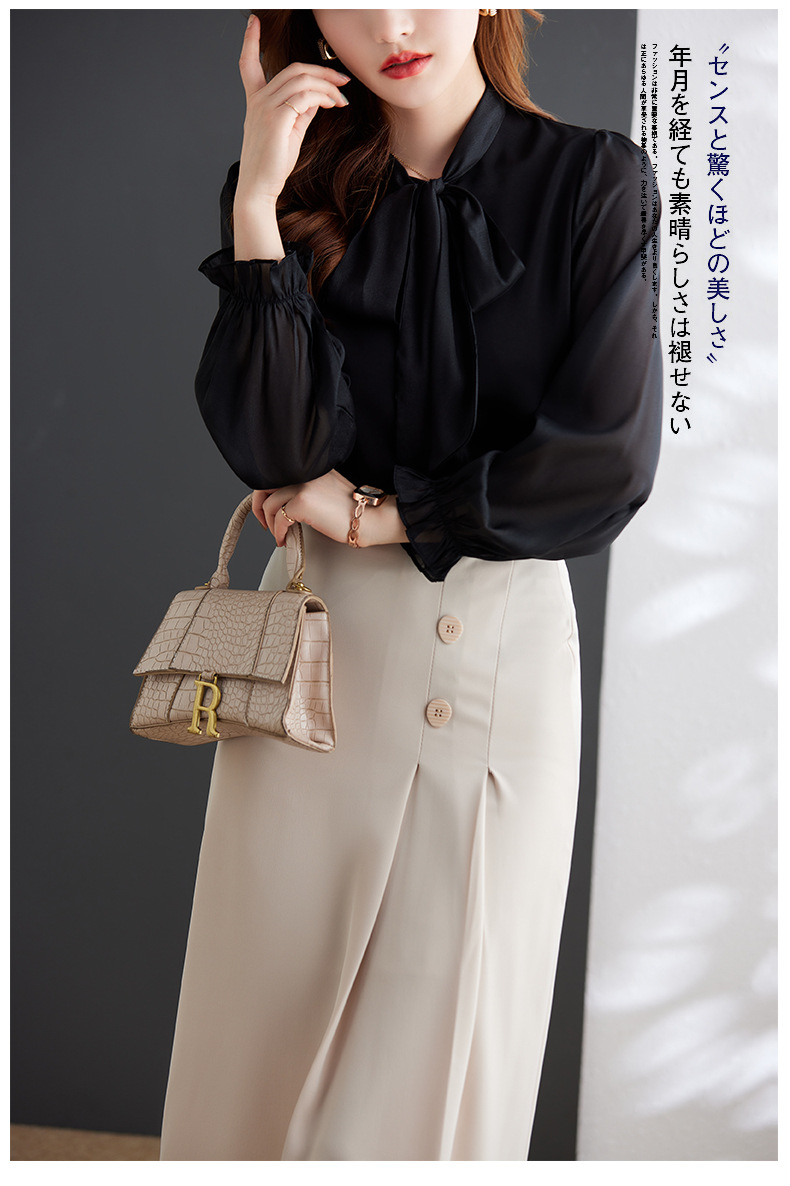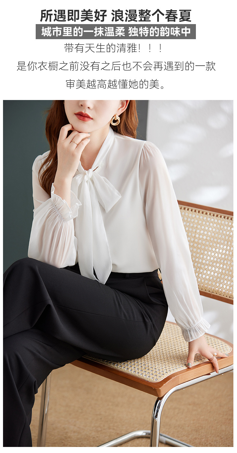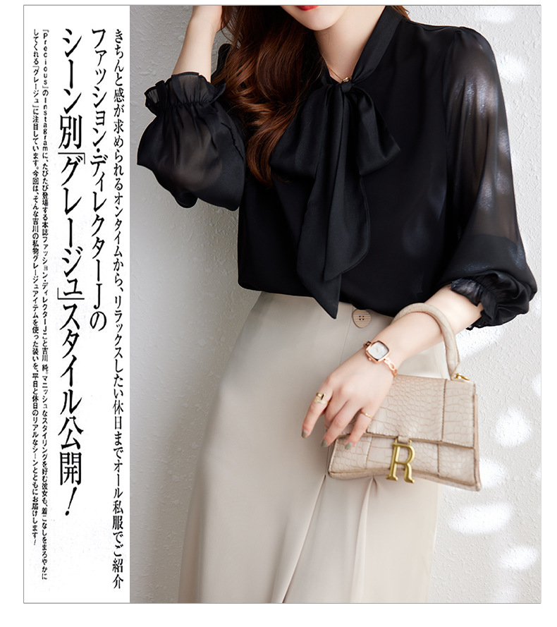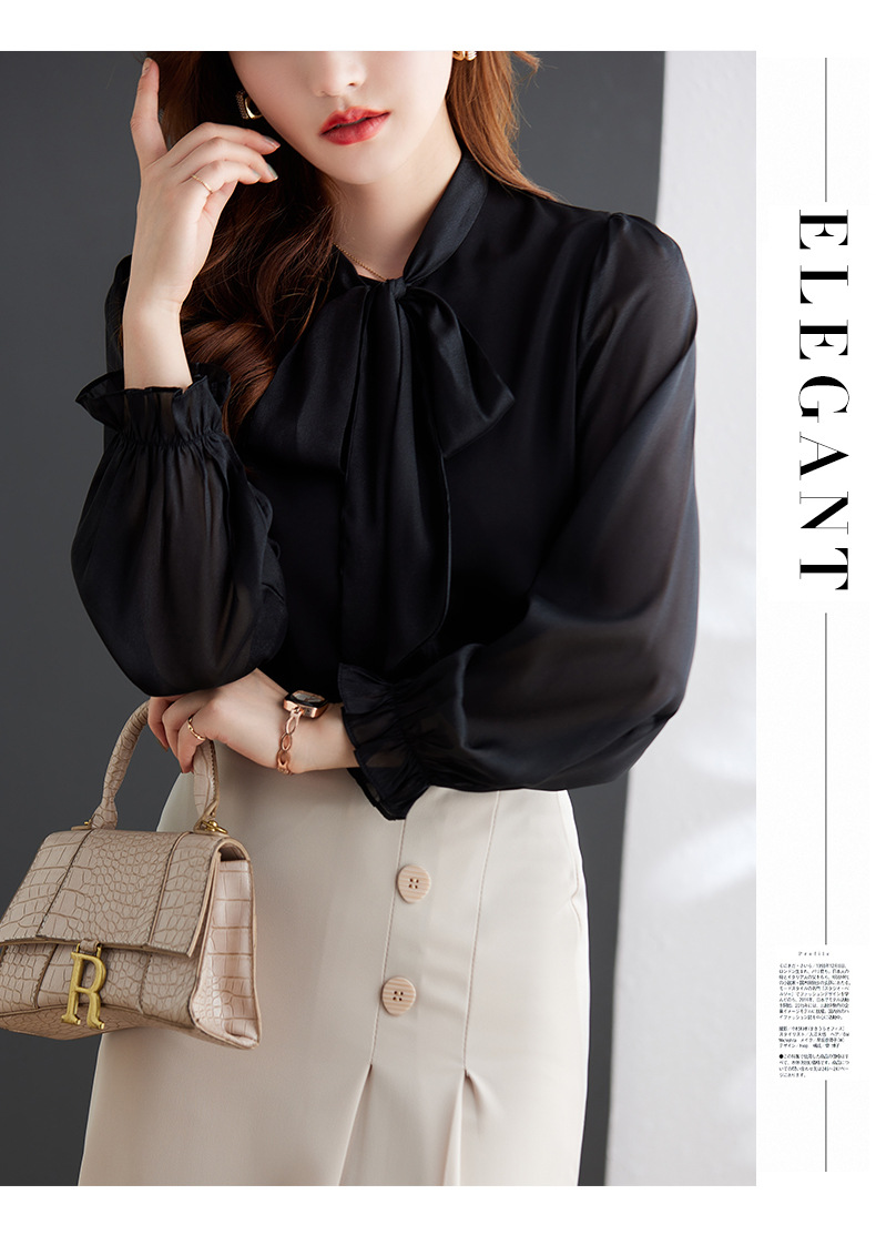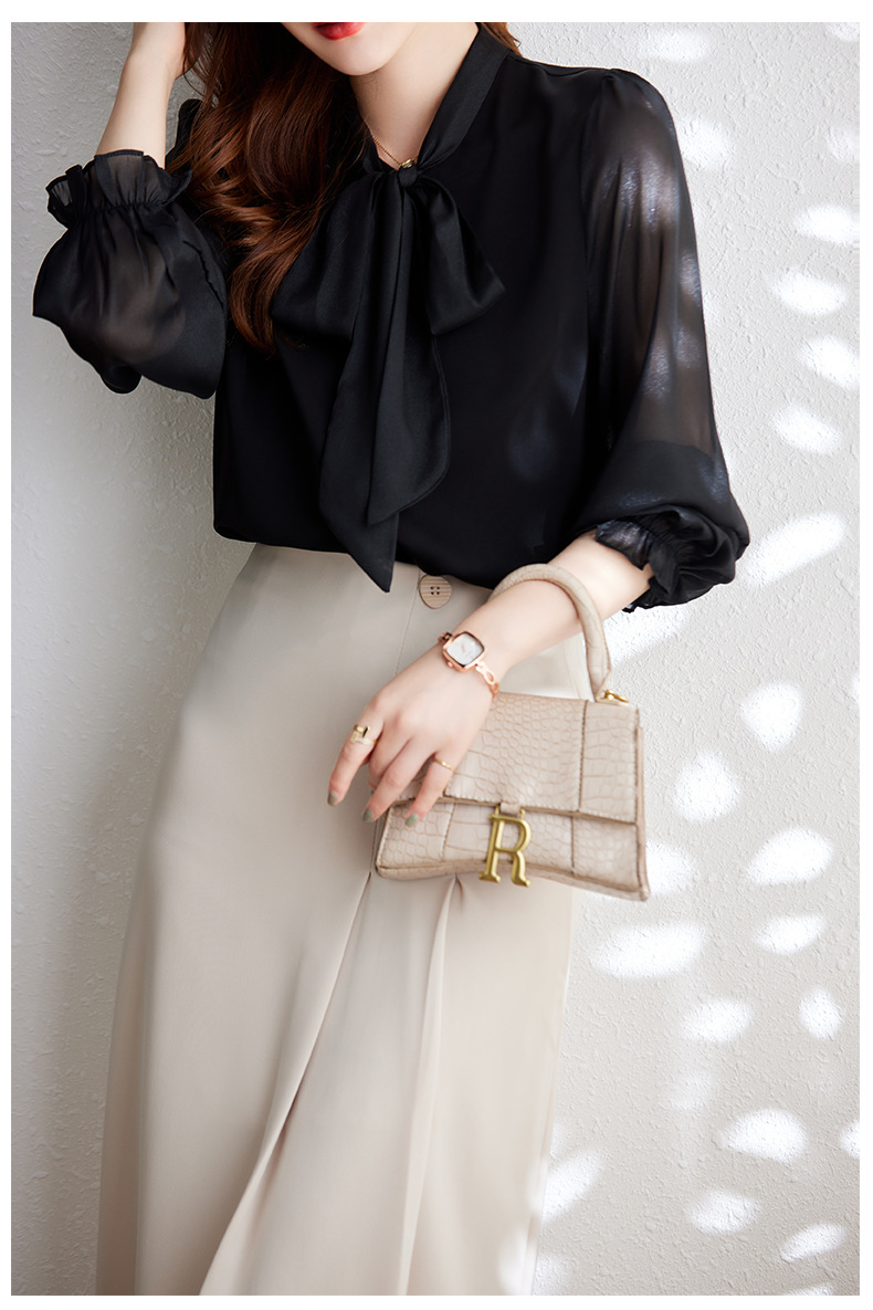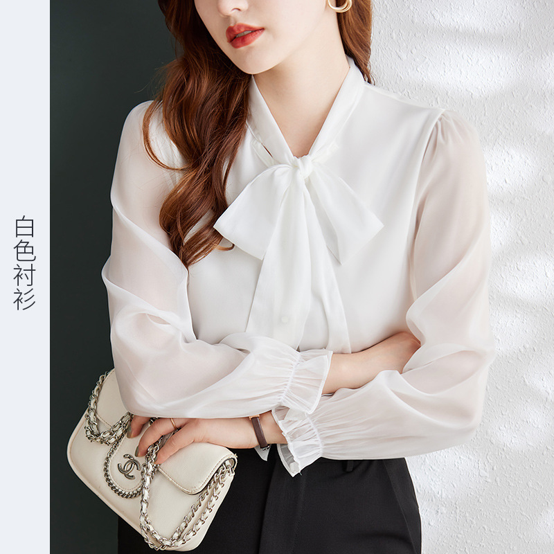 2025 봄과 가을 하이 엔드 셔츠 여성 디자인 센스 보우 쉬폰 셔츠 세련된 패션 전문 통근 탑