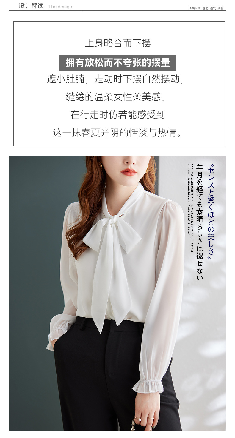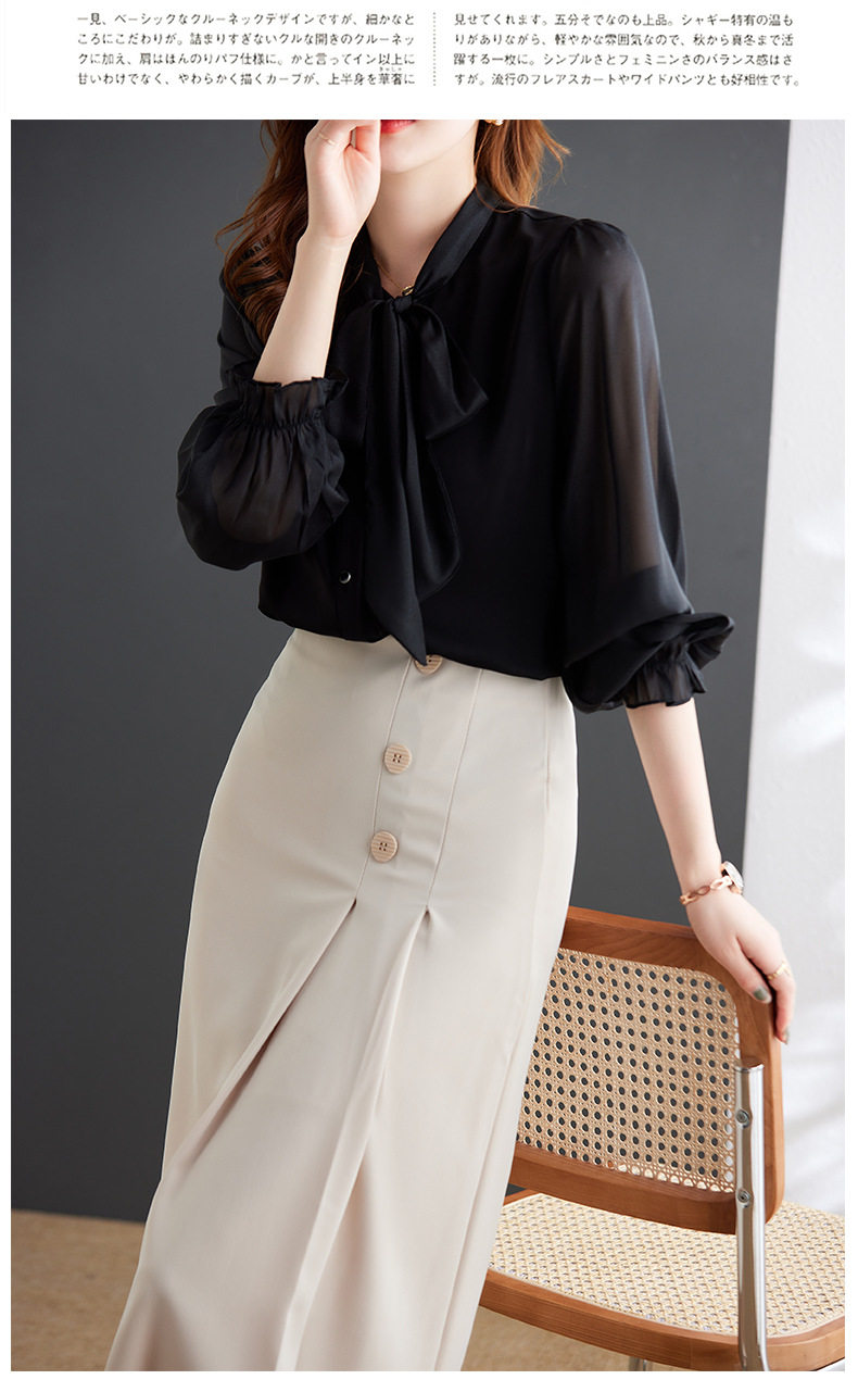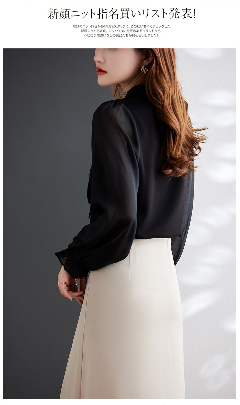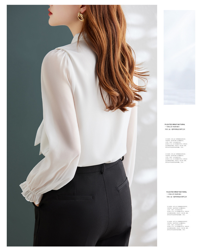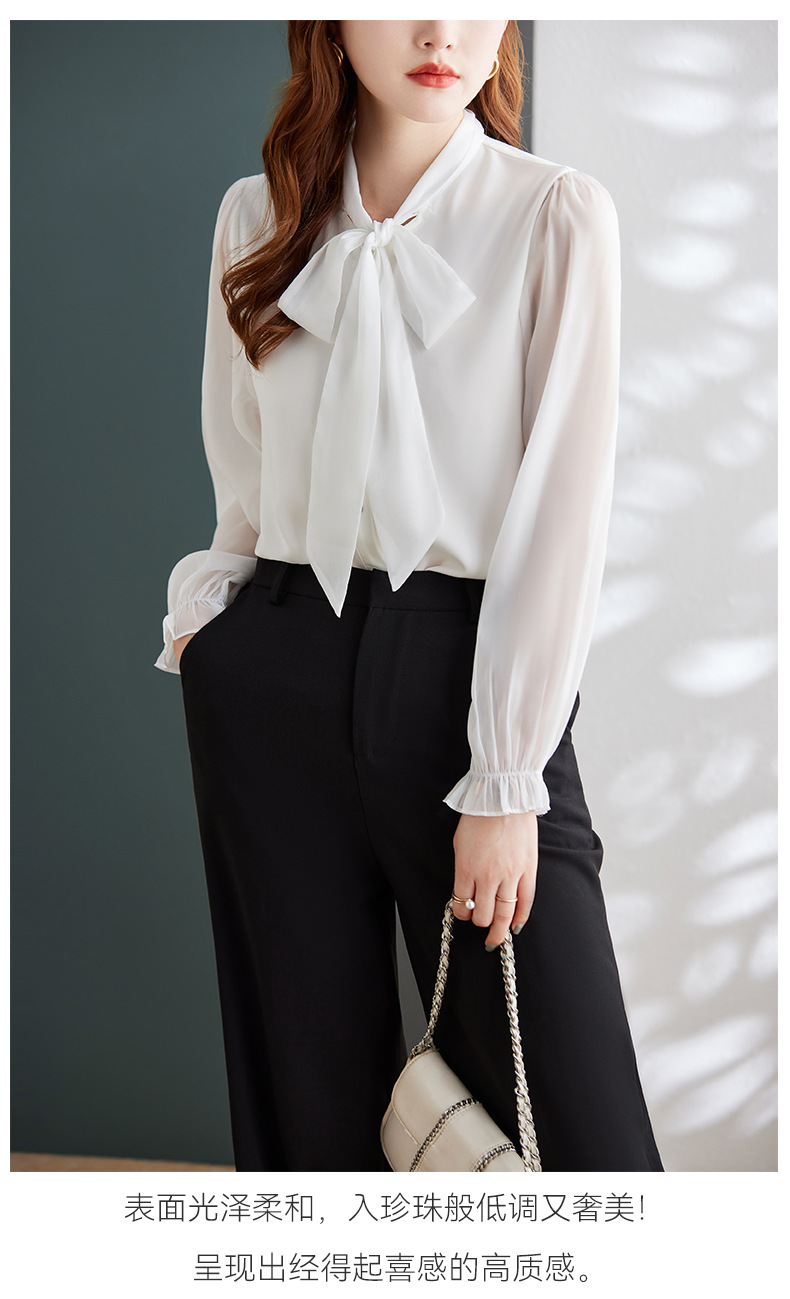 2025 봄과 가을 하이 엔드 셔츠 여성 디자인 센스 보우 쉬폰 셔츠 세련된 패션 전문 통근 탑