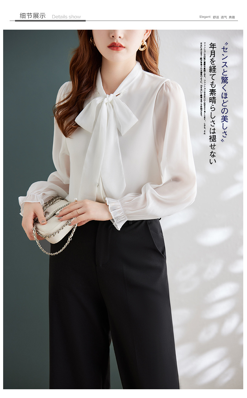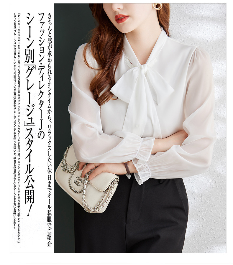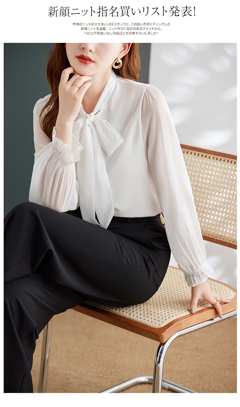 2025 봄과 가을 하이 엔드 셔츠 여성 디자인 센스 보우 쉬폰 셔츠 세련된 패션 전문 통근 탑스토어 가기