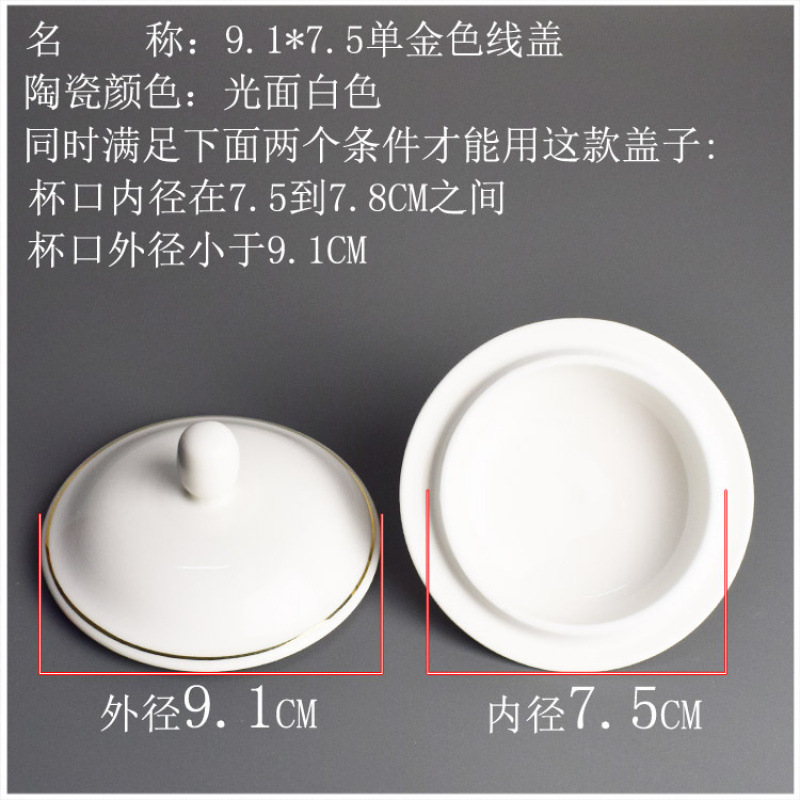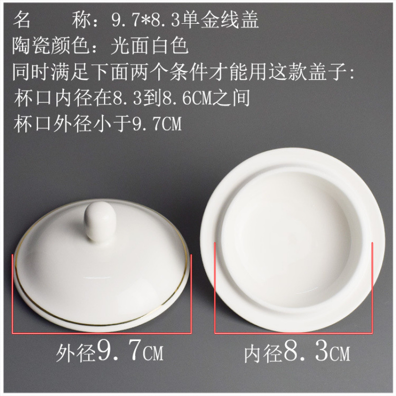 프놈펜 티컵 뚜껑 세라믹 라운드 순수 화이트 방진 회의실 클래식 워터 컵 뚜껑 핸들