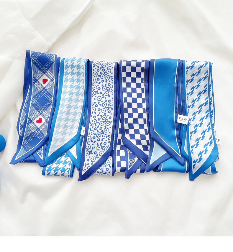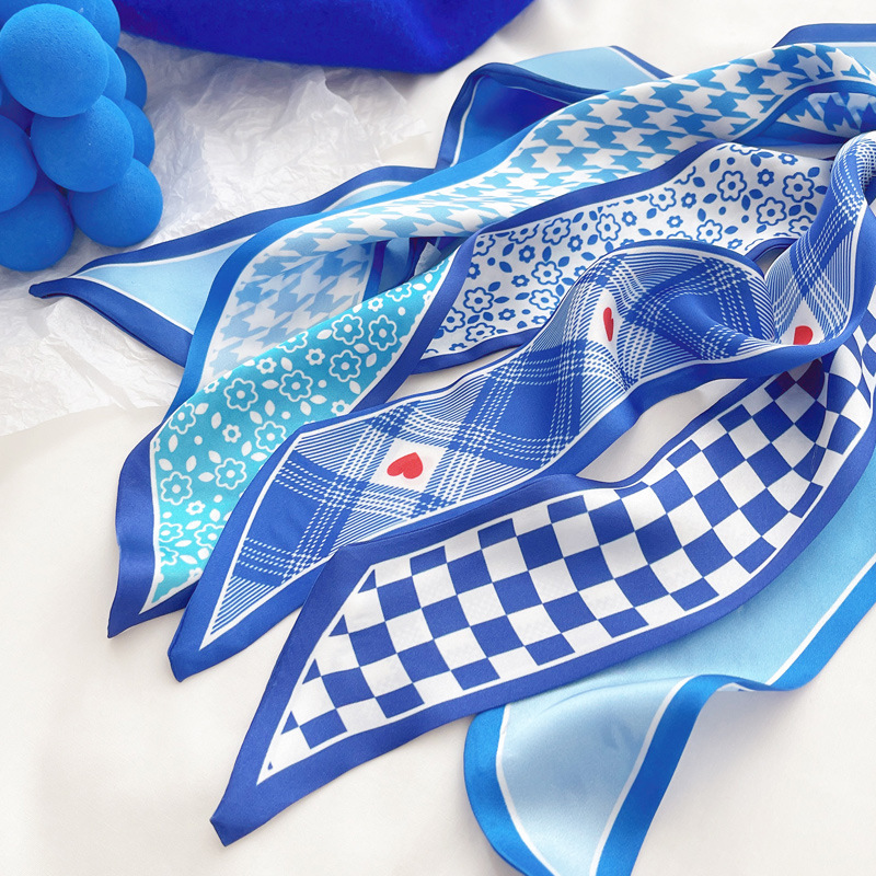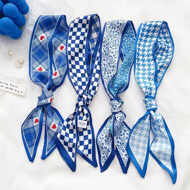 클라인 블루 스카프 작은 스카프 봄과 여름 새로운 도착 체커 보드 헤어 밴드 리본 스카프 가을 장식 여성 헤어 타이스토어 가기